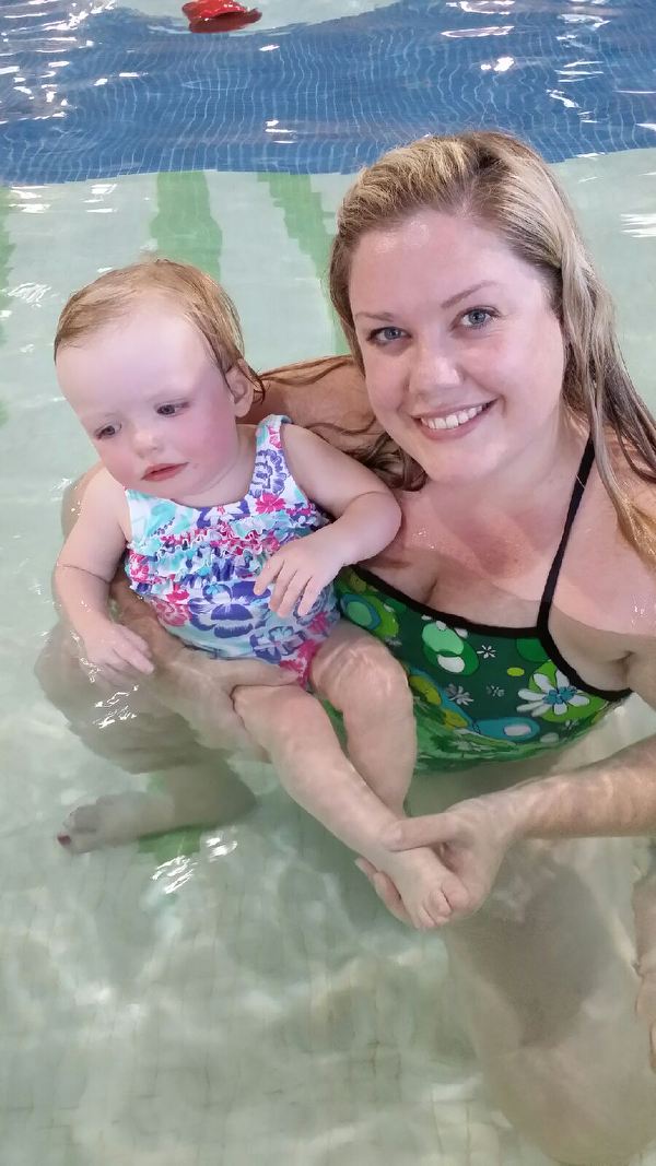 This picture was taken after her lesson when Ryan left to work with his next person. As you can see from the look on Madison’s face it did not go so well. I didn’t start in the water with them. The first half of the lesson Madison and Ryan just swam together. Madison cried the whole time and got so worked up she puked in the pool. They scooped it out in time so that they didn’t have to shut the pool down. Thank god she wasn’t responsible for a pool closure on her first lesson. After she puked we decided I should get in the water with them. She calmed down a bit but still cried the entire 30 minute lesson. Ryan was such a trooper and assured me it would get better and we are going to try again next week. I was shocked at how upset she was. She sees so many people with all her therapies and doctors Appointments that she warms up to people and is comfortable pretty quickly. I’m hoping each week will get better as the pool will be an important place for her in her life to be able to stretch out, relax, activate her muscles and to compete in a sport that she already loves to do. Stay tuned for how next weeks lesson goes.