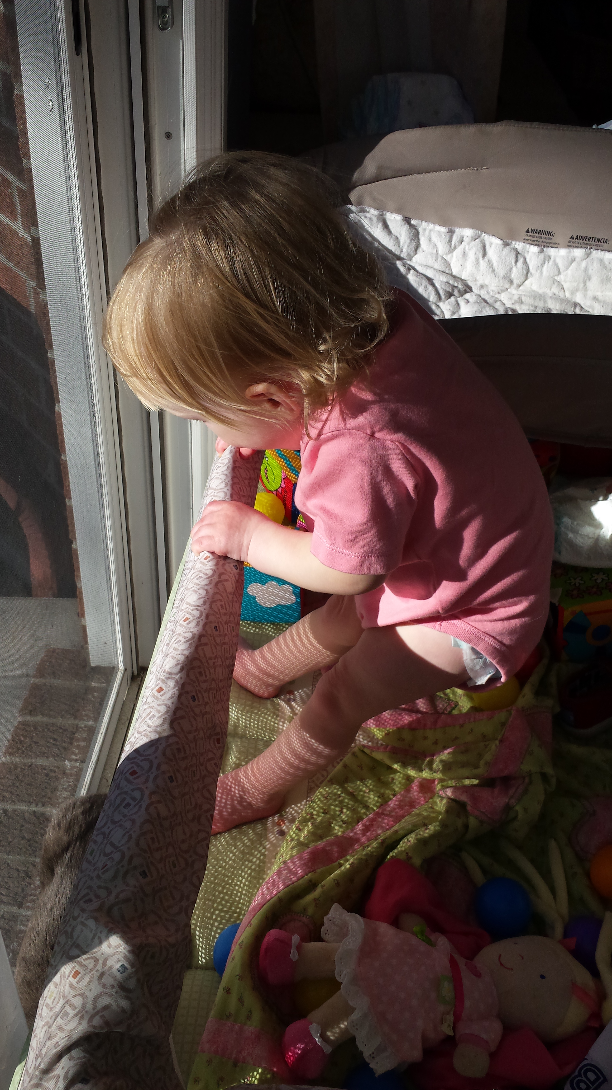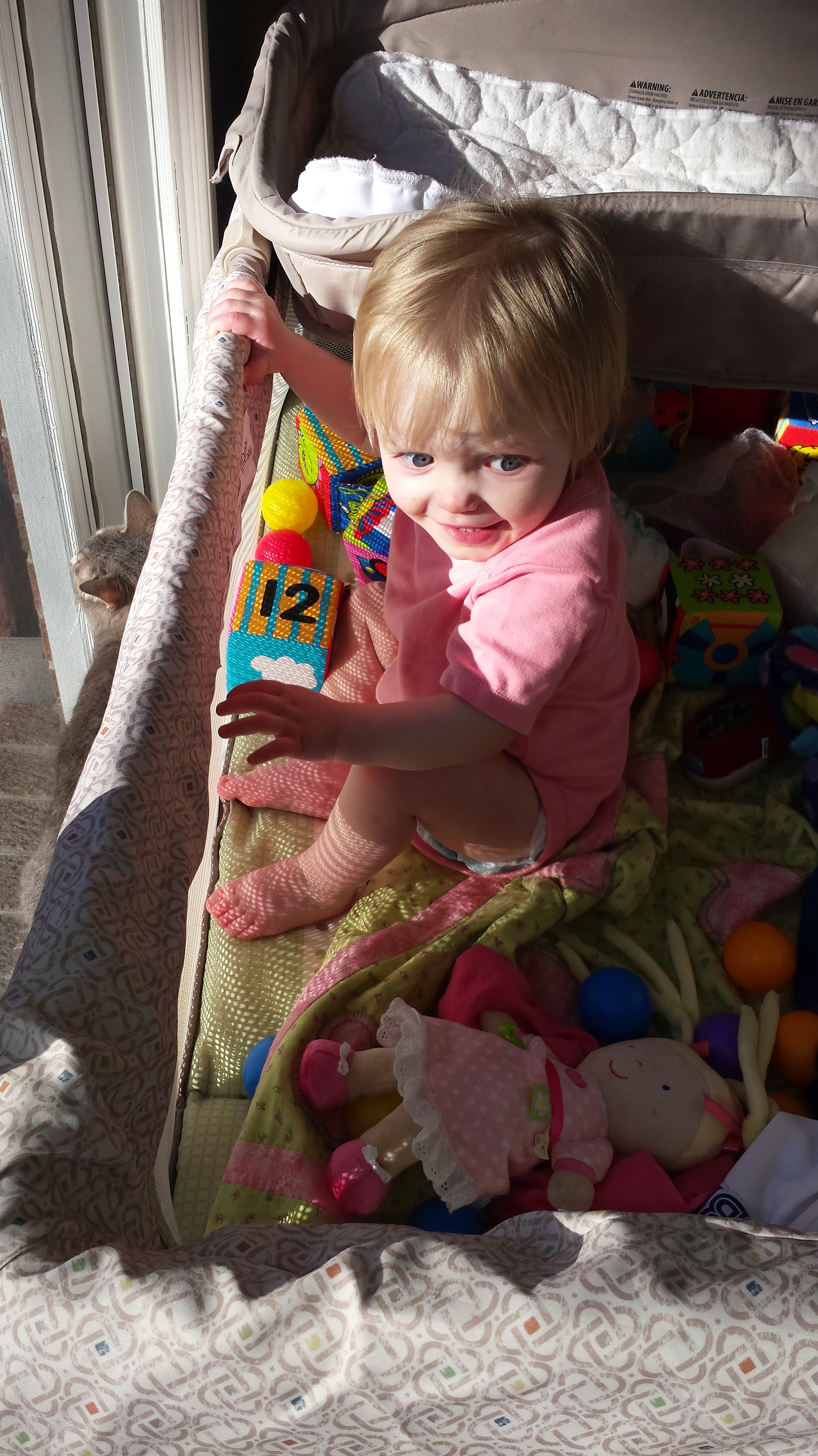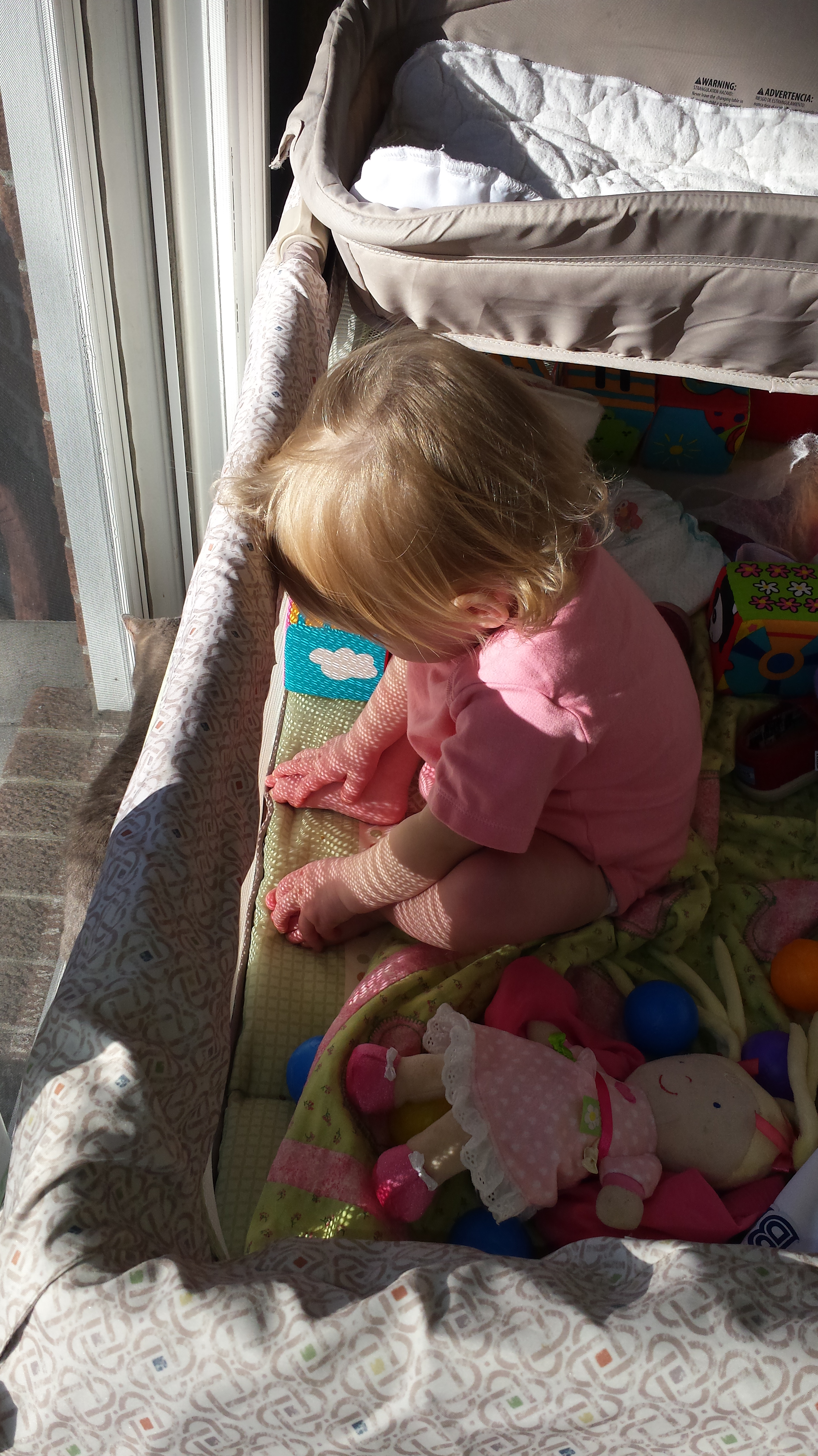 Madi and I tapped out and spent the day under the covers trying to get healthy. Most of our day was spent sleeping, but during an energy burst Madi decided to practice the skill of pulling herself up and standing by holding the side of the pack and play. I clearly have been sleep deprived because something as small as Madi pulling herself up and being able to sit on her knees independantly brought me to blubbering tears which James had to deal with in a phone call haha! oh well…small wins.