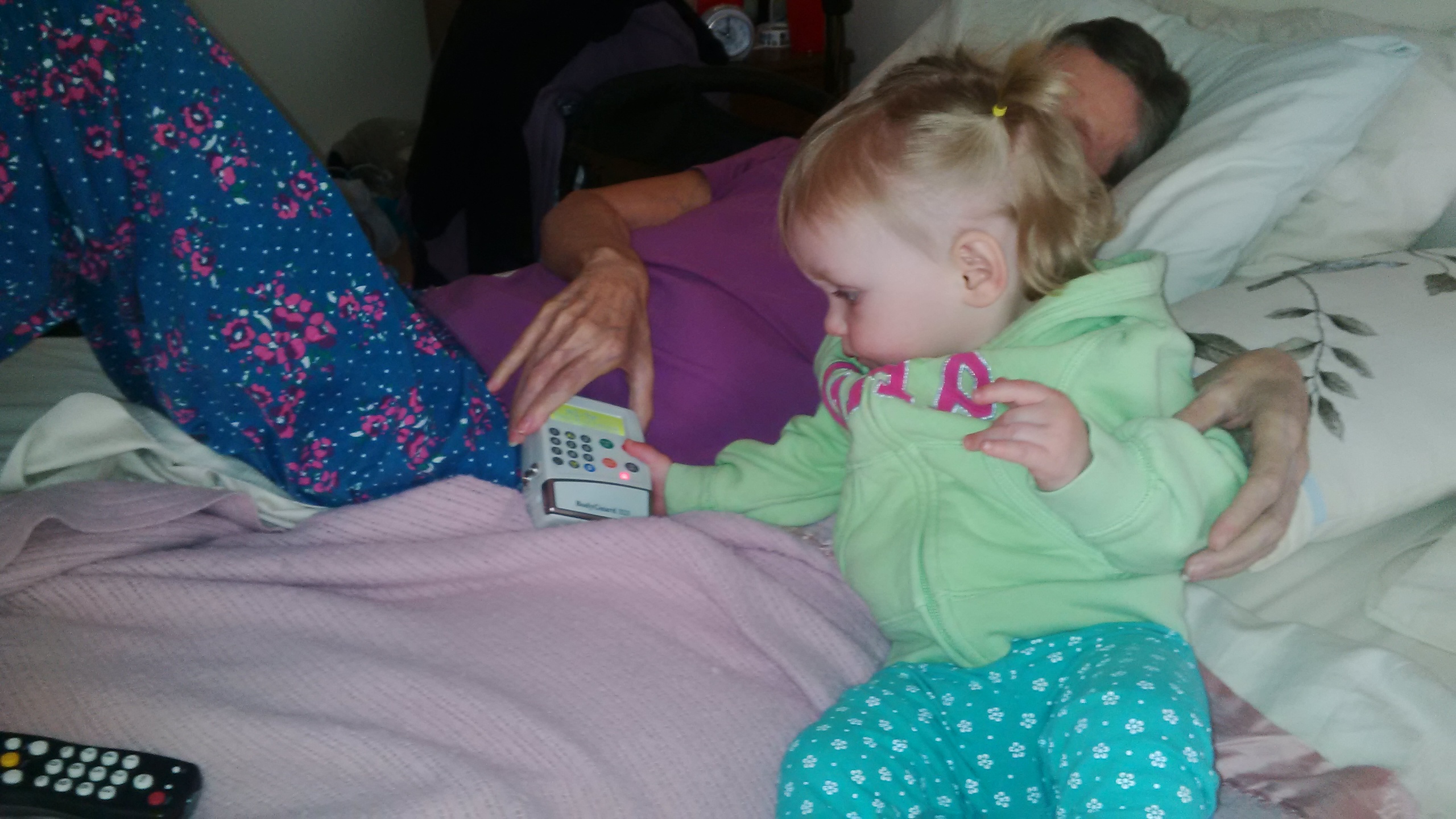“Madison was a big help today with Nana and Grampa. Madison came over early today to help Nana with her TPN. Madison held the line while Grampa changed it. She held the pump for Nana as well. Once we were all done Madison, Nana and Grampa went out for breakfast.”