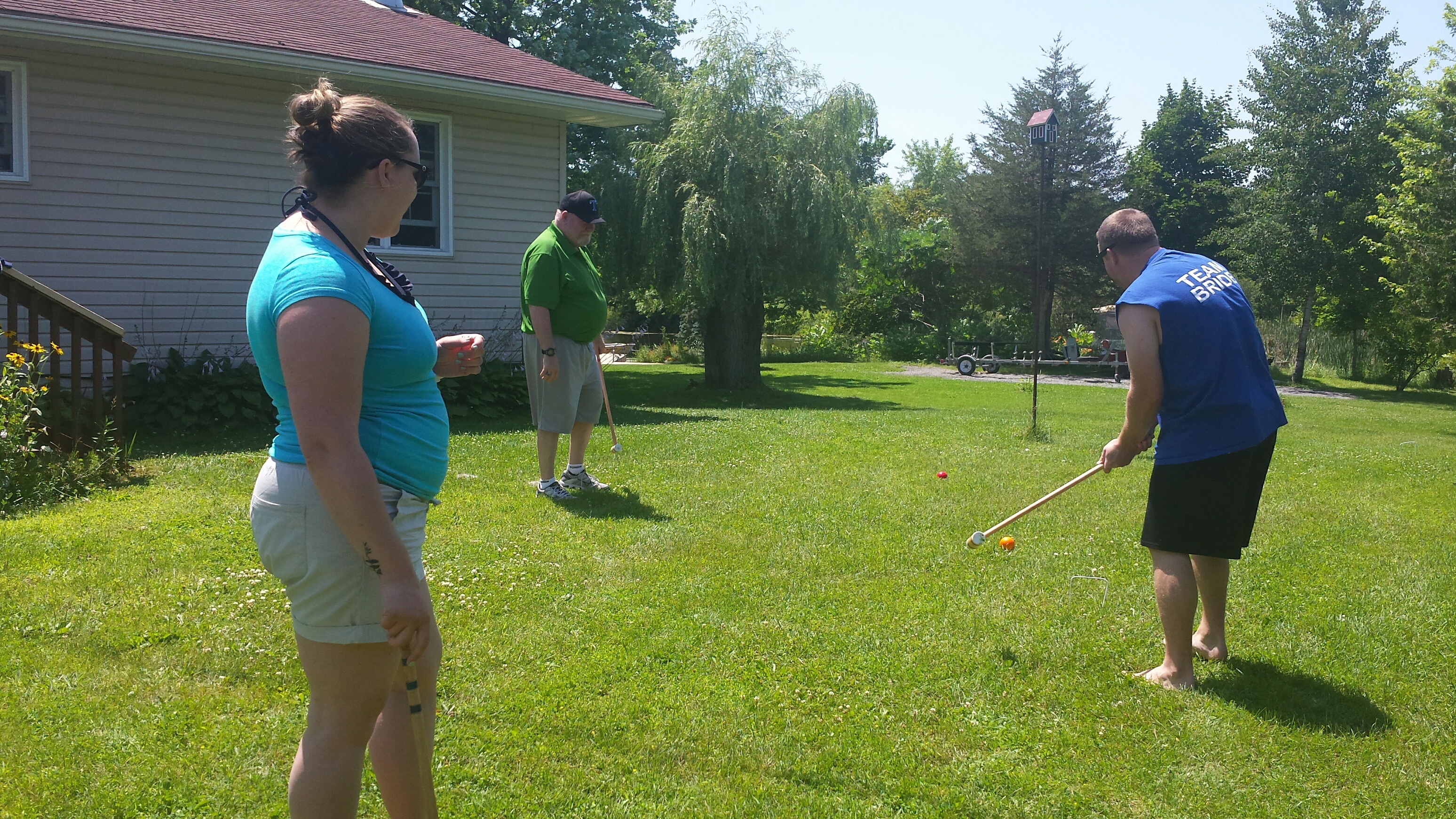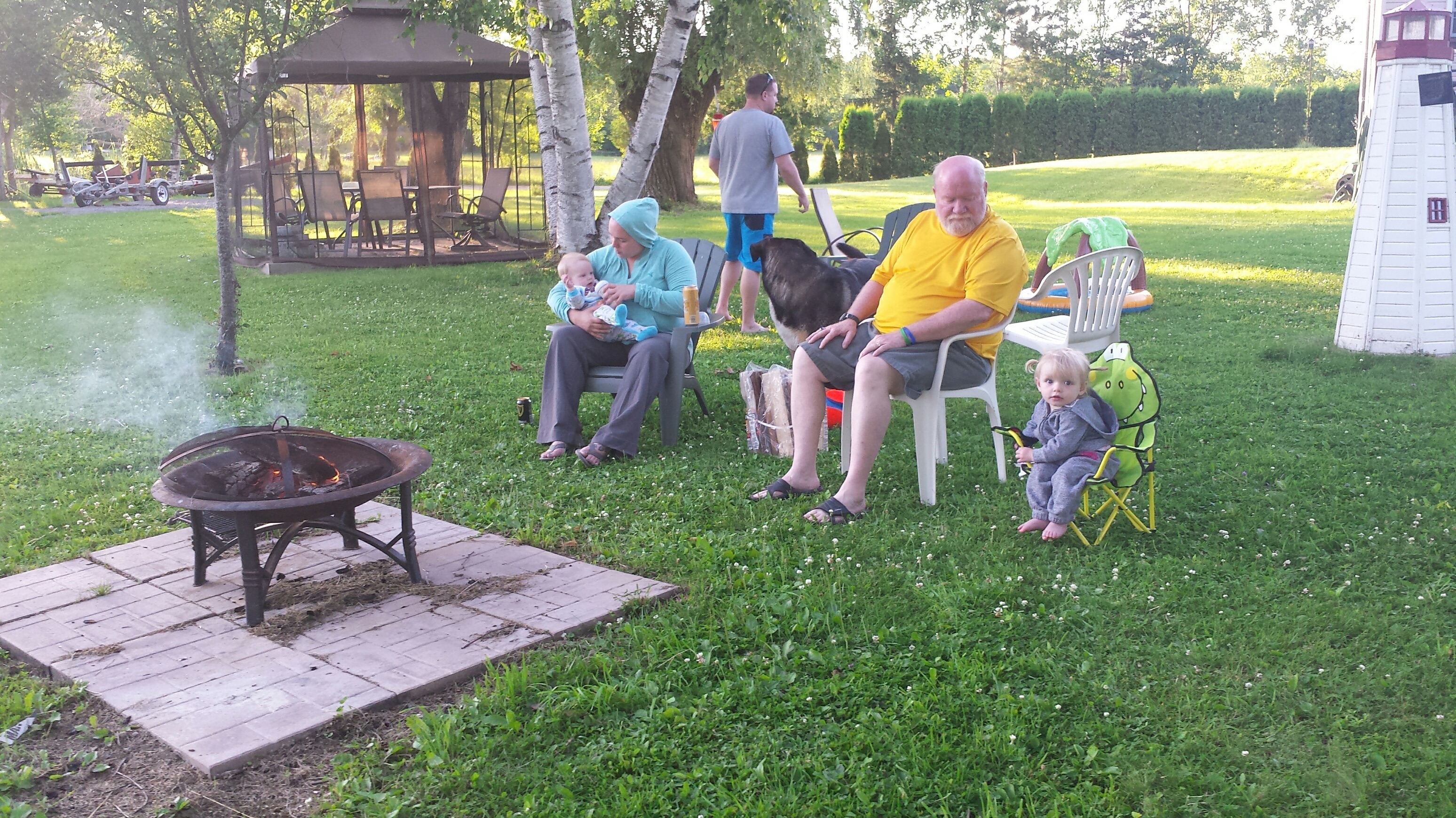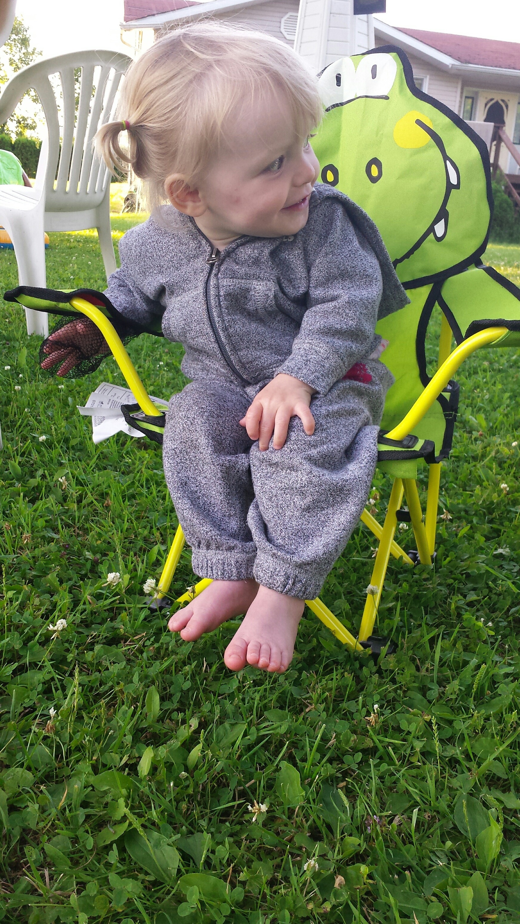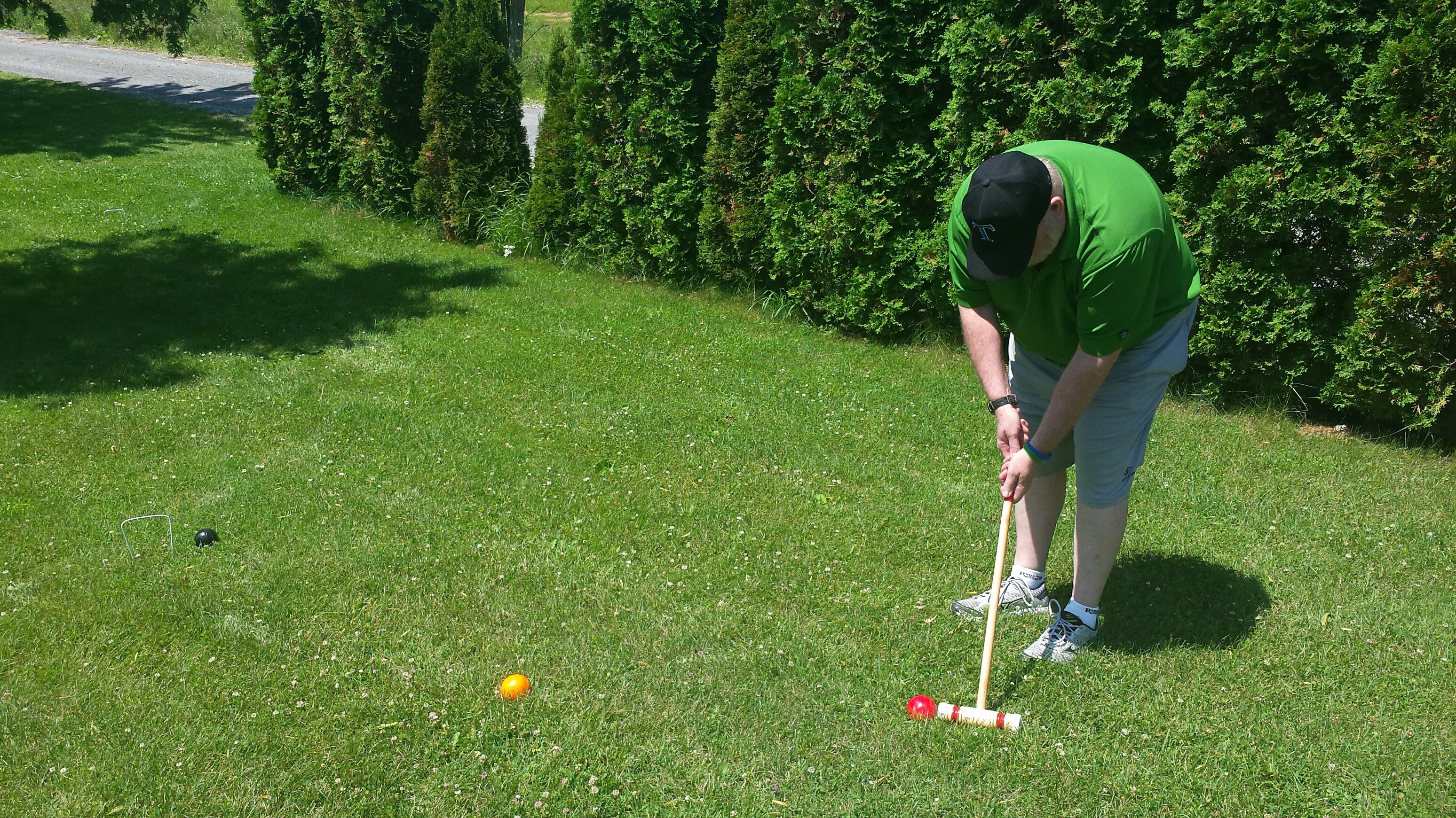 Madison had a great 5 days on vacation. We ventured to Westport which is north of Kingston to a rental cottage. It was an extra special time as this was the first vacation Nana and Grampa Gregoire had been on since Nana’s transplant. Madison and Nate had secretly planned some early morning play dates which everyone ended up being a part of. They practiced their sitting together, had many wrestling matches, swam, blew bubbles, bounced on Grampas knee, sang with Nana and tagged off on alternating naps. Madison had a bit of a break from her AFO’s and physio although we squeezed in stretching when we could and Madison fell in love with walking up and down the deck stairs. Poor Grampa and Dada’s backs will be sore for the next few days. Uncle Mark and Grampa taught Madison how to play crockette and she was so proud hitting the ball. She went to the beach, found ice cream in town, had a fire by the water, went for a boat ride and out for dinner on our last night to celebrate Auntie Nadia’s birthday. She loved watching Carter swim and chase his water toy and then run right back to shake all the water off. I think most of all she loved all the yummy food and time with everyone.