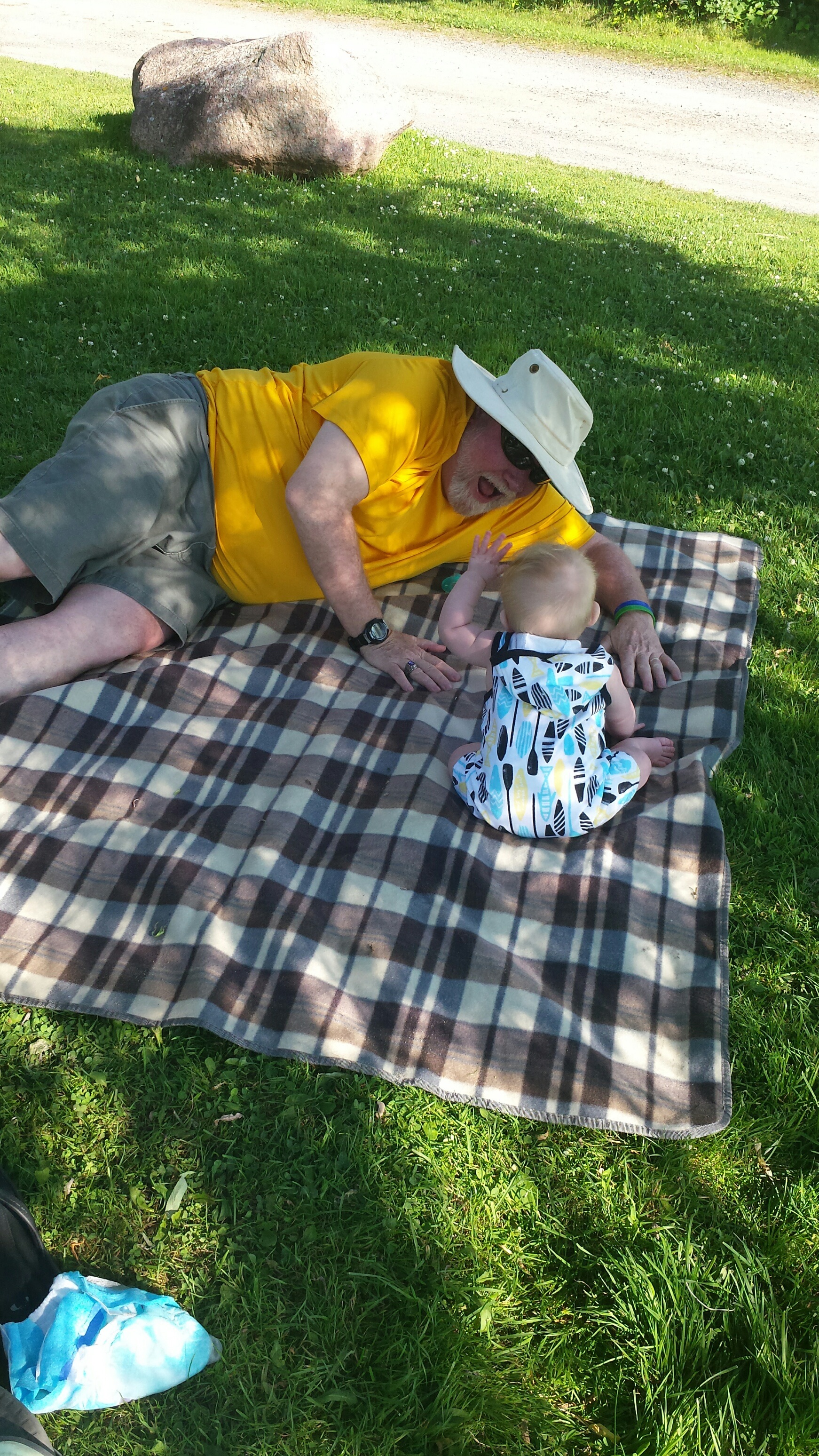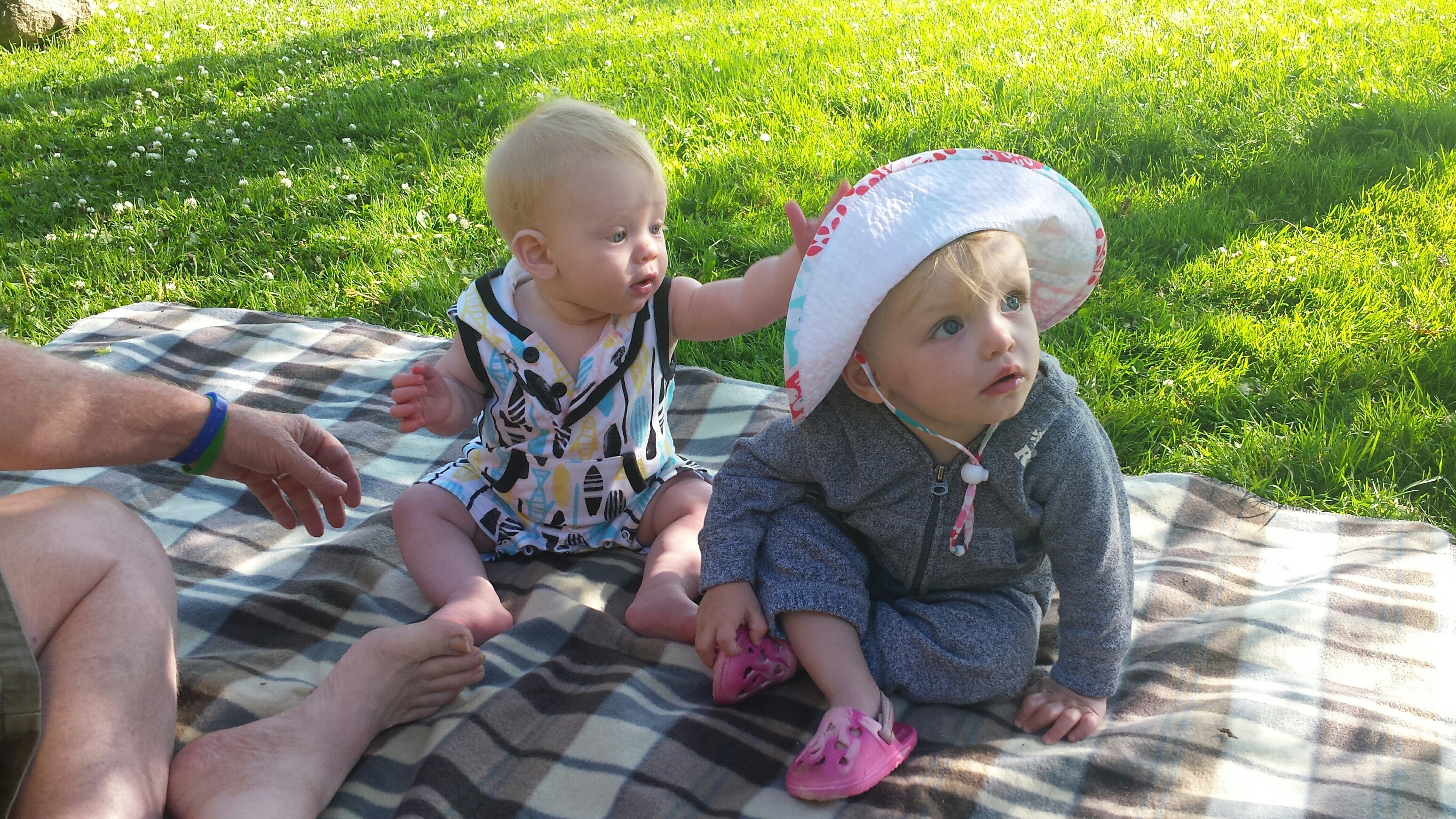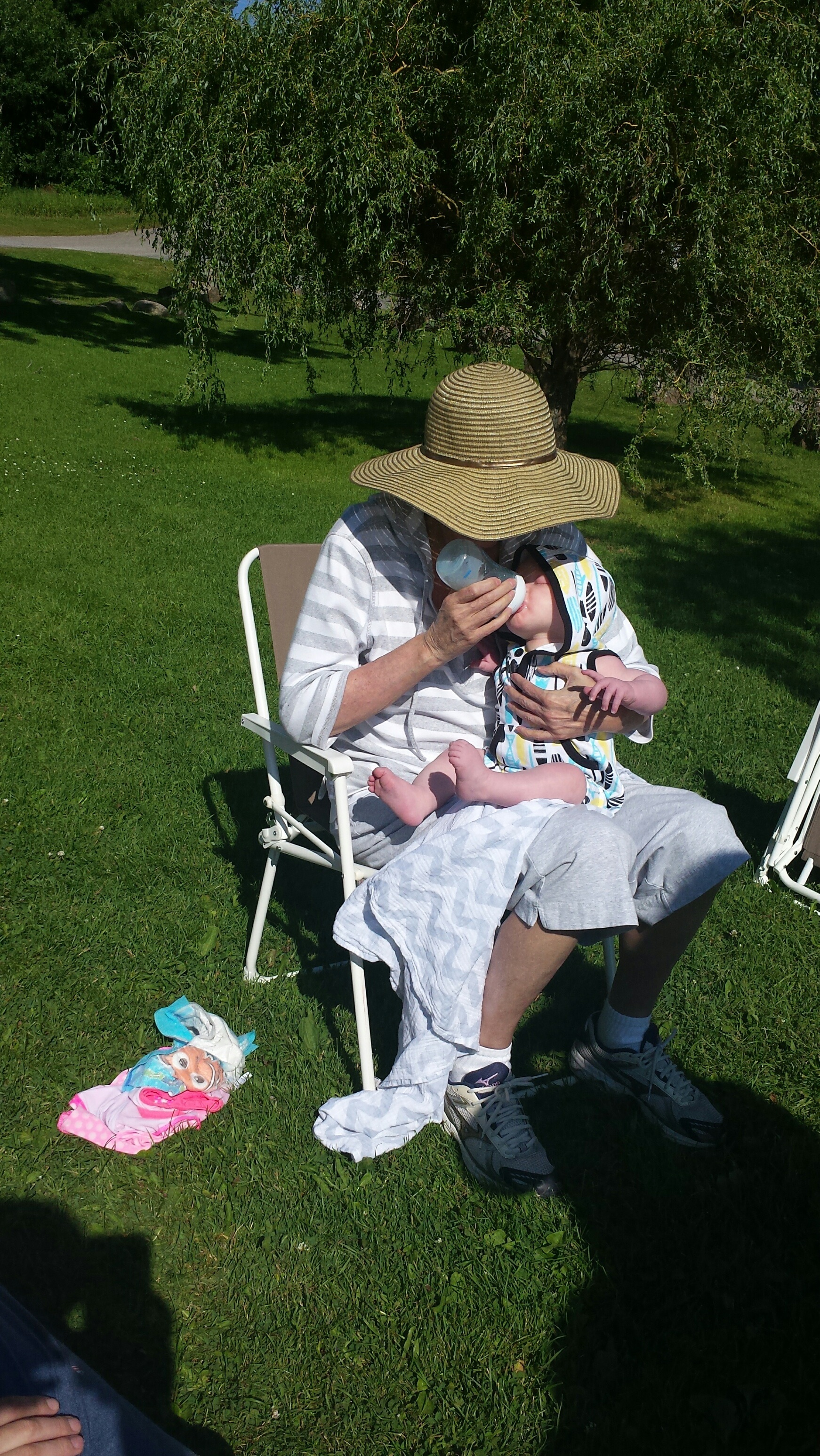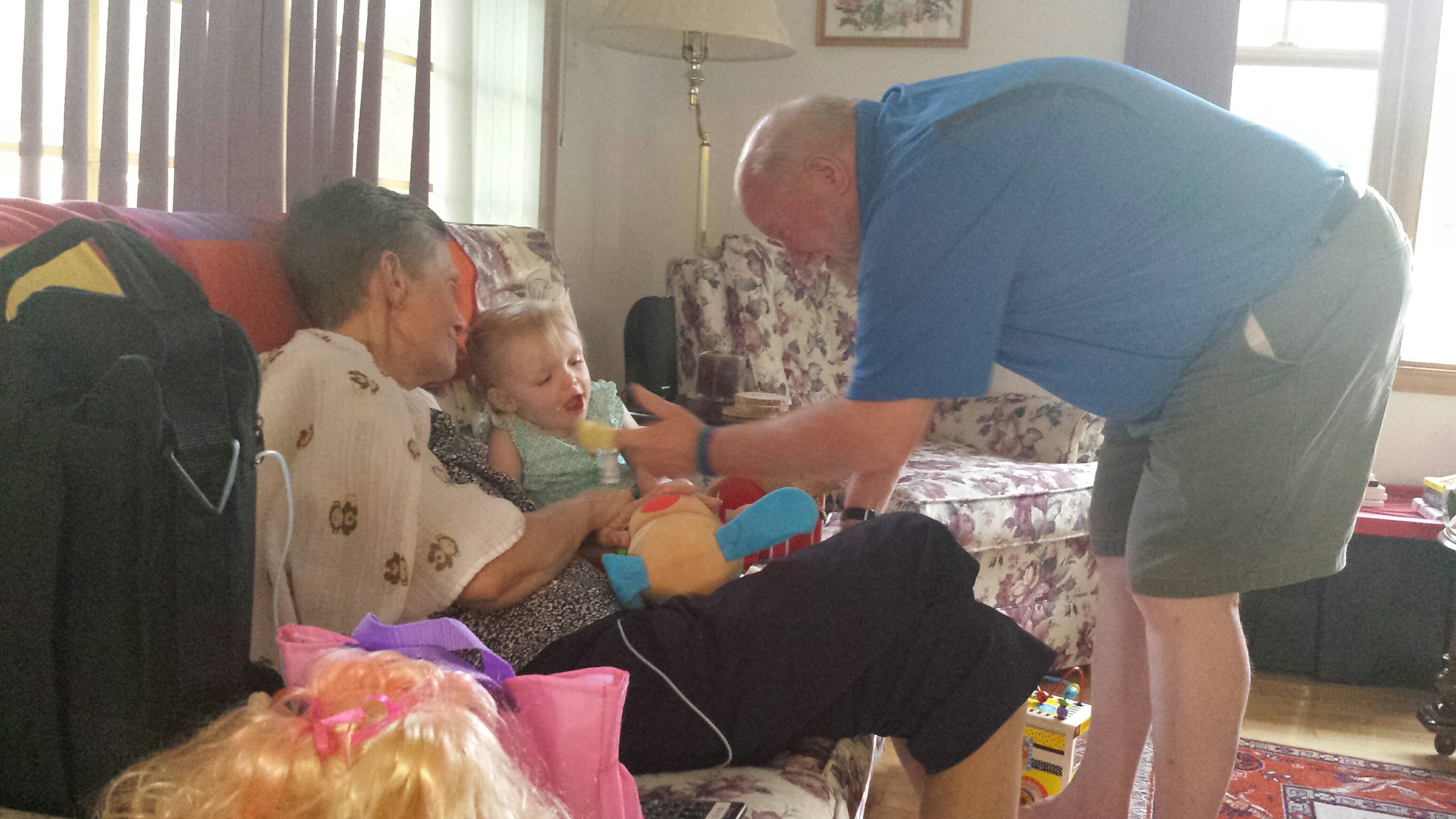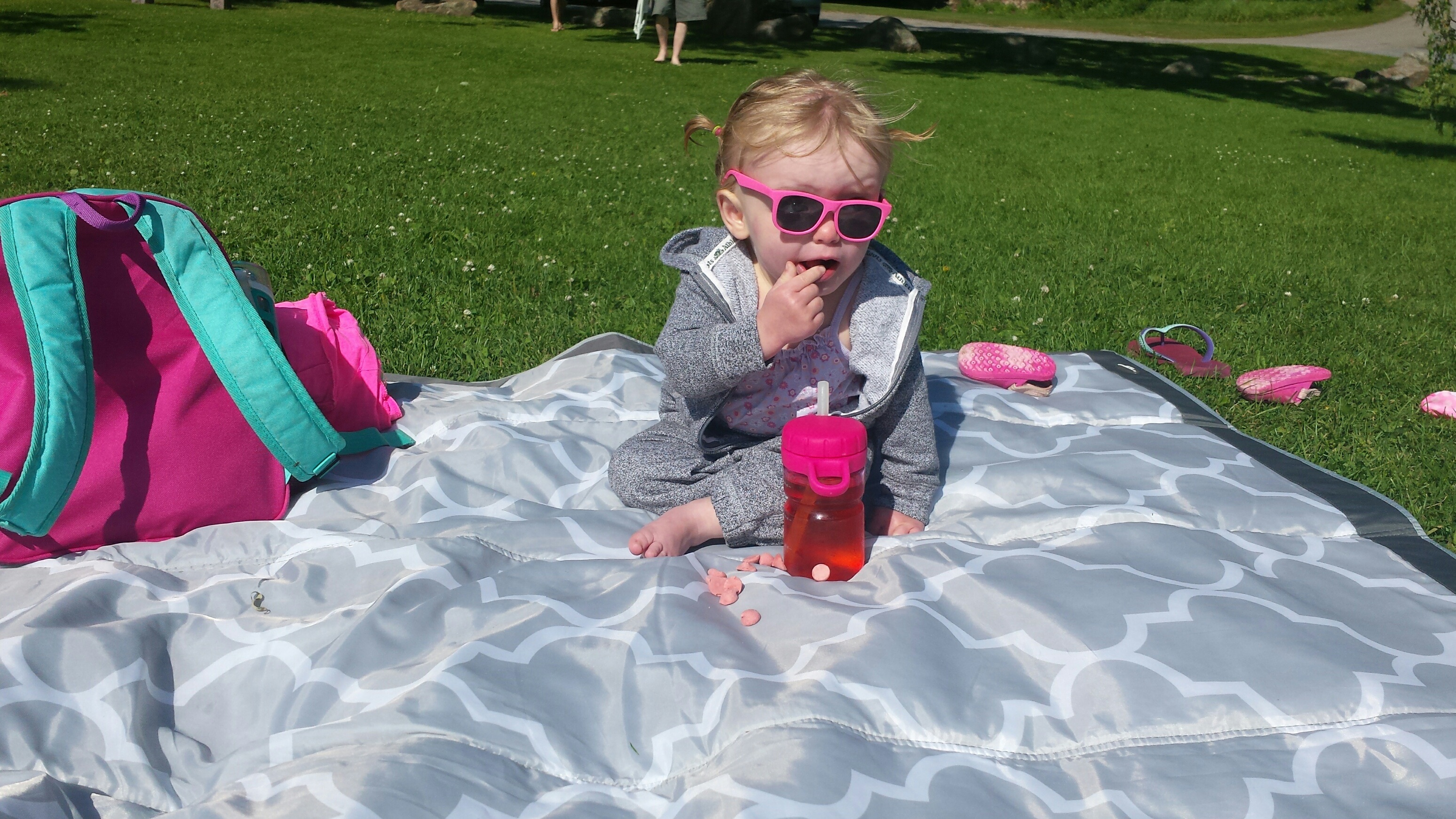 Madison had a great 5 days on vacation. We ventured to Westport which is north of Kingston to a rental cottage. It was an extra special time as this was the first vacation Nana and Grampa Gregoire had been on since Nana’s transplant. Madison and Nate had secretly planned some early morning play dates which everyone ended up being a part of. They practiced their sitting together, had many wrestling matches, swam, blew bubbles, bounced on Grampas knee, sang with Nana and tagged off on alternating naps. Madison had a bit of a break from her AFO’s and physio although we squeezed in stretching when we could and Madison fell in love with walking up and down the deck stairs. Poor Grampa and Dada’s backs will be sore for the next few days. Uncle Mark and Grampa taught Madison how to play crockette and she was so proud hitting the ball. She went to the beach, found ice cream in town, had a fire by the water, went for a boat ride and out for dinner on our last night to celebrate Auntie Nadia’s birthday. She loved watching Carter swim and chase his water toy and then run right back to shake all the water off. I think most of all she loved all the yummy food and time with everyone.