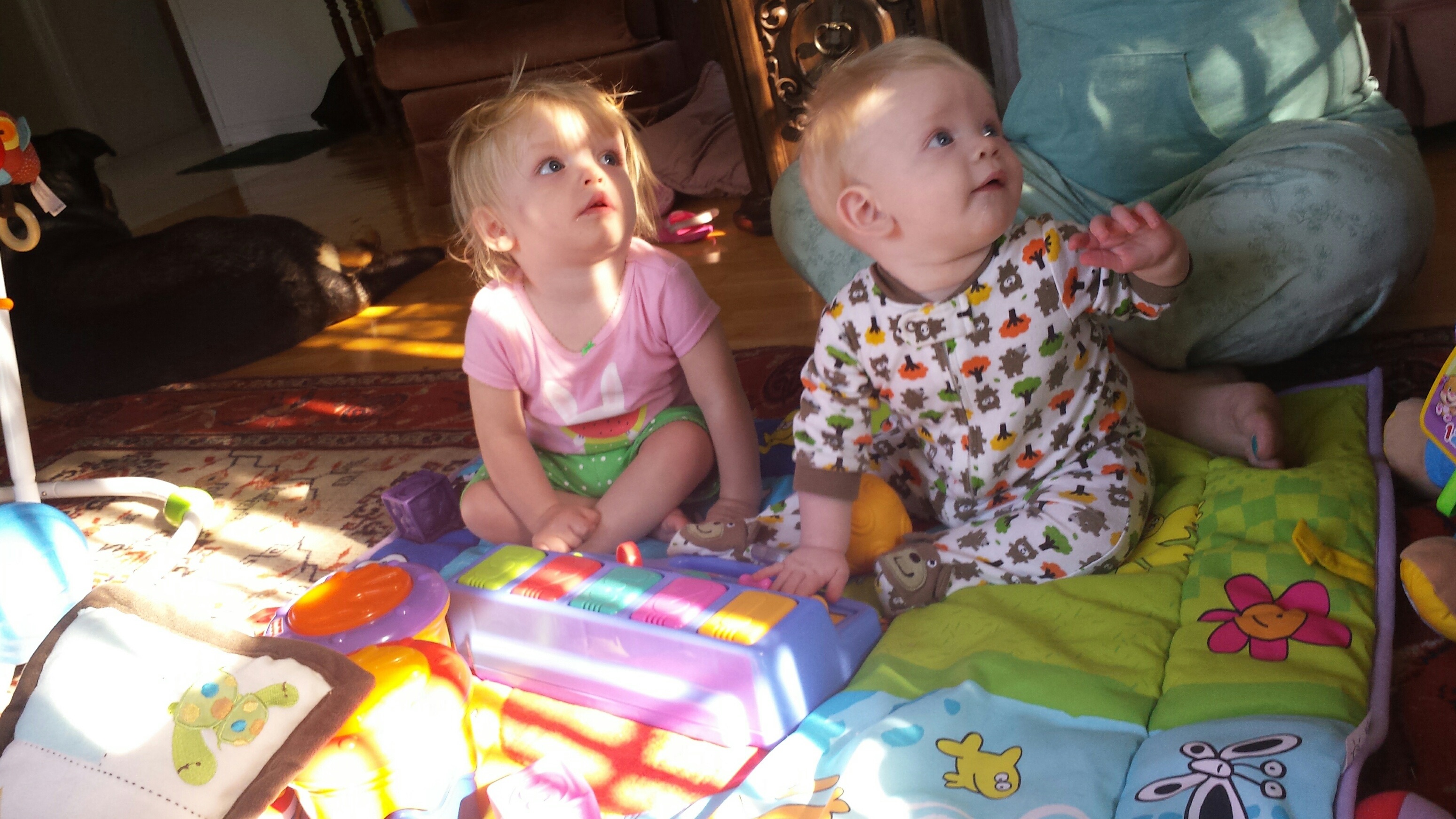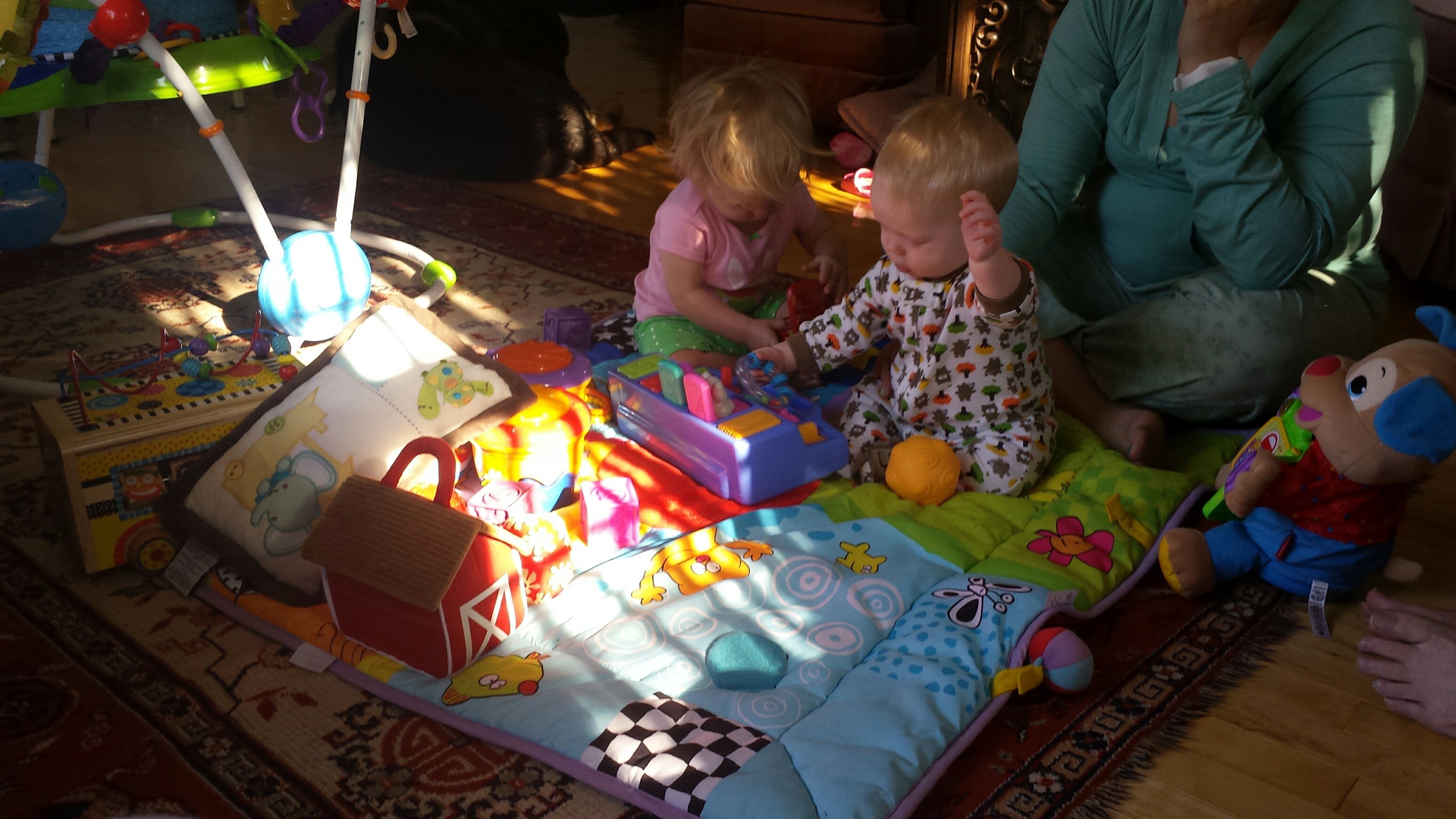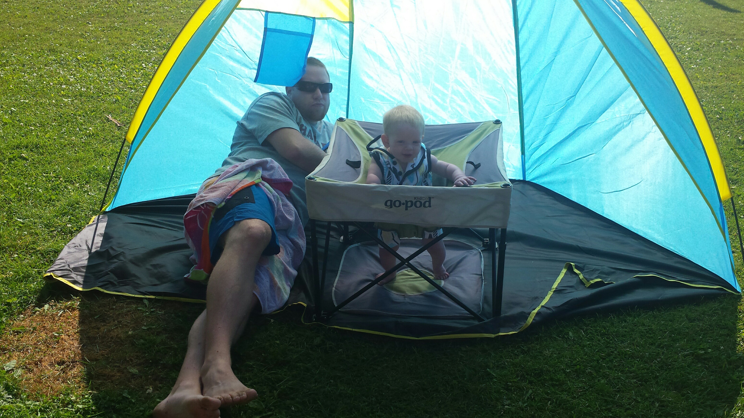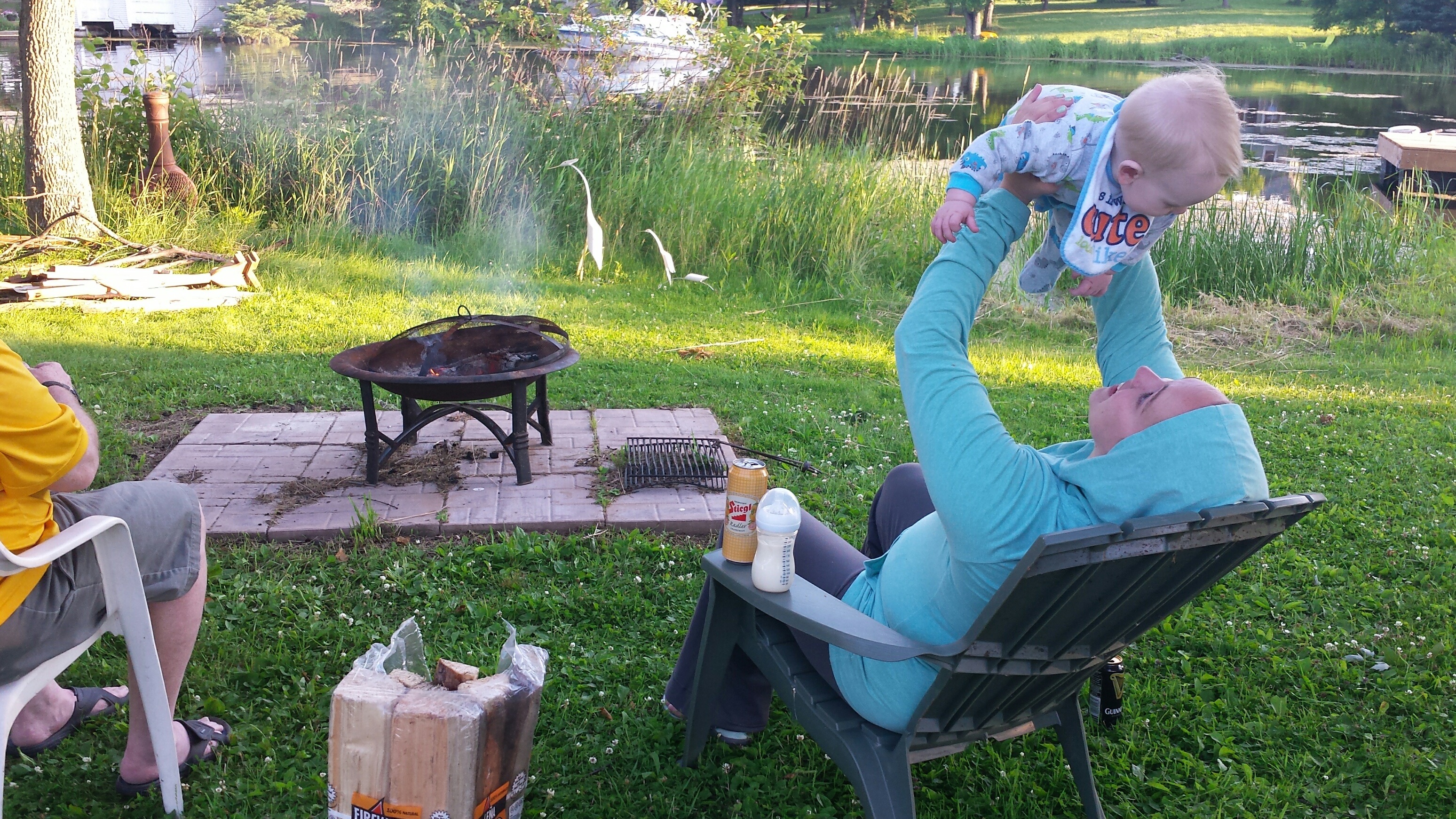 Madison had a great 5 days on vacation. We ventured to Westport which is north of Kingston to a rental cottage. It was an extra special time as this was the first vacation Nana and Grampa Gregoire had been on since Nana’s transplant. Madison and Nate had secretly planned some early morning play dates which everyone ended up being a part of. They practiced their sitting together, had many wrestling matches, swam, blew bubbles, bounced on Grampas knee, sang with Nana and tagged off on alternating naps. Madison had a bit of a break from her AFO’s and physio although we squeezed in stretching when we could and Madison fell in love with walking up and down the deck stairs. Poor Grampa and Dada’s backs will be sore for the next few days. Uncle Mark and Grampa taught Madison how to play crockette and she was so proud hitting the ball. She went to the beach, found ice cream in town, had a fire by the water, went for a boat ride and out for dinner on our last night to celebrate Auntie Nadia’s birthday. She loved watching Carter swim and chase his water toy and then run right back to shake all the water off. I think most of all she loved all the yummy food and time with everyone.