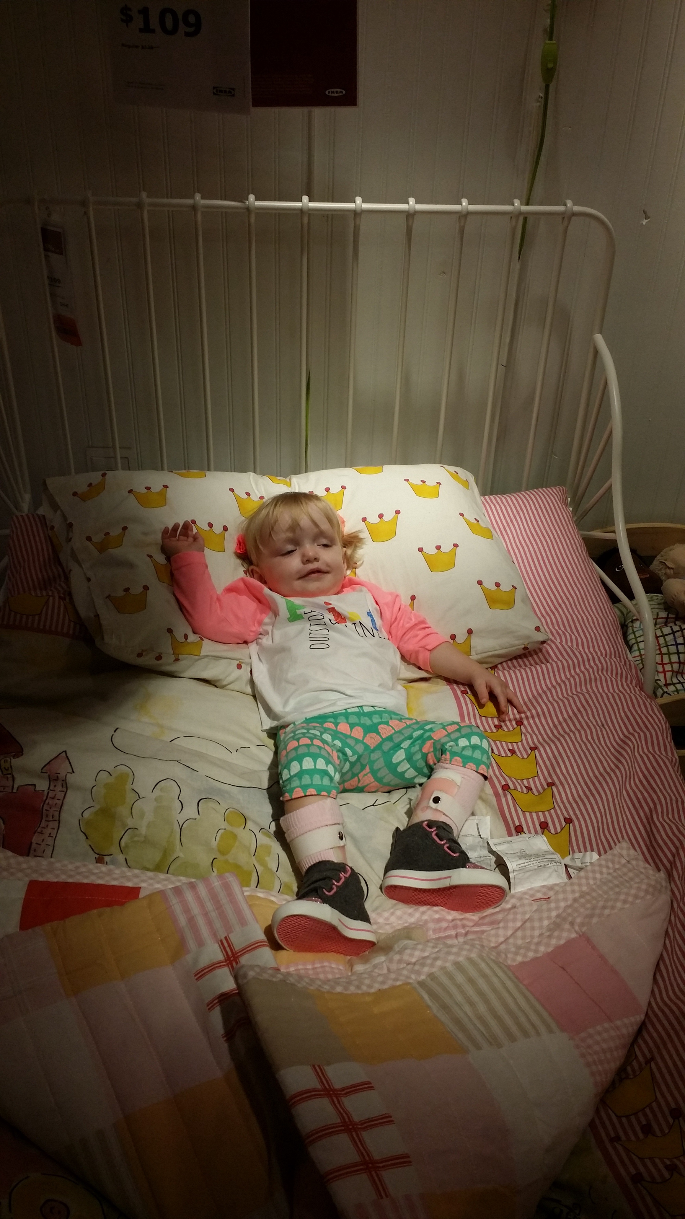 After her photos were done we were on our way home and noticed an IKEA in the same parking lot! Perfect as we have been trying to find time to go and get Madi her new bed and the bed sale ends tomorrow. We chose a bed that is low to the ground, is adjustable in length as she grows, has a low but firm mattress and has bars for her to hold onto to help herself get in and out of bed.