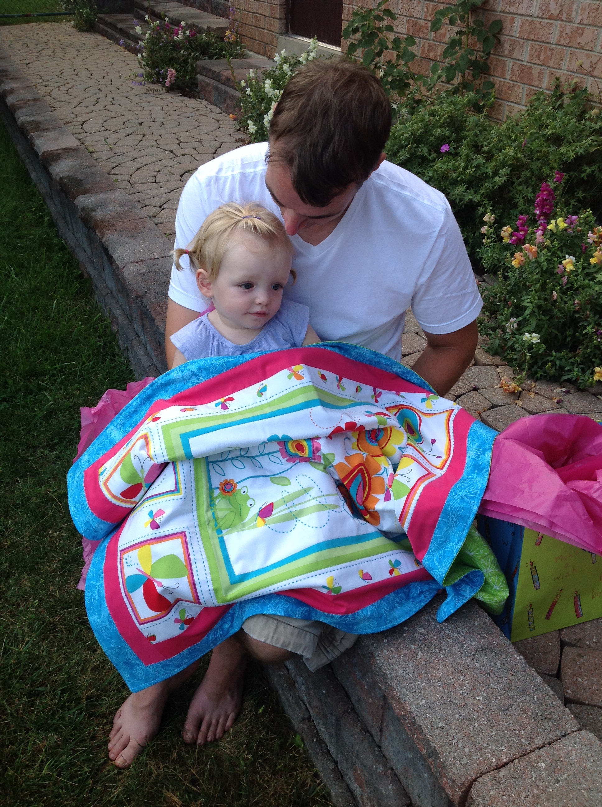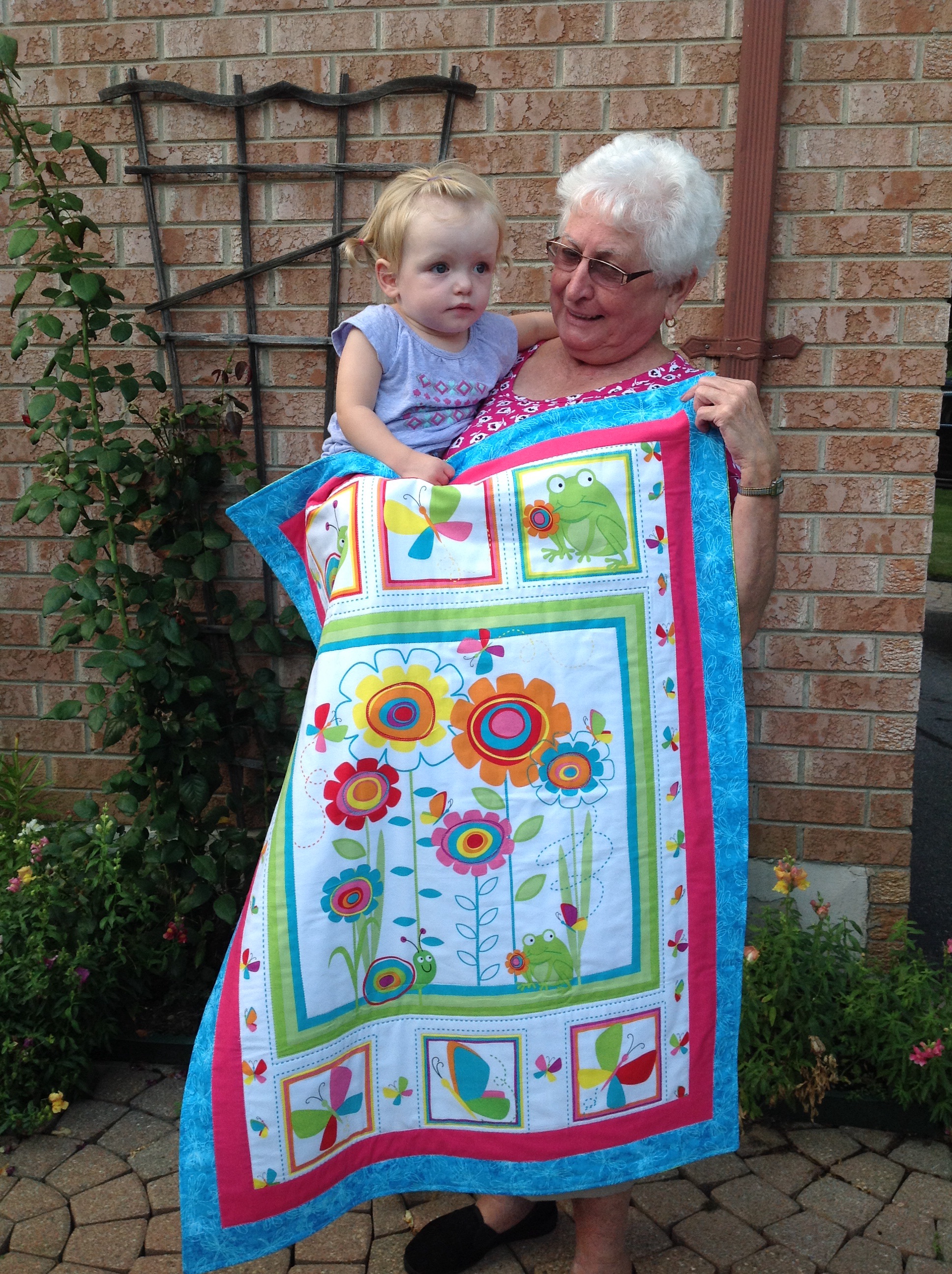 When we got home Madison had a nice visit with out neighbour Pam who gave Madison an early birthday present. She wanted Madison to have her gift before Pre-School starts. She made Madison a beautiful blanket that Madison can take with her for all her early morning car rides downtown to snuggle with and keep warm in the car once the weather starts to change. Madison loves the blanket!! Thank you so much Pam!