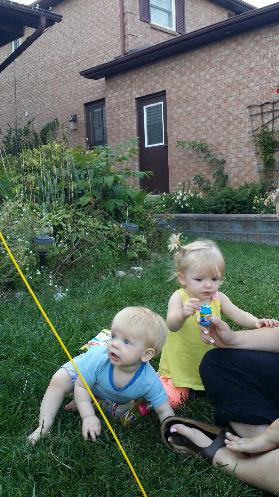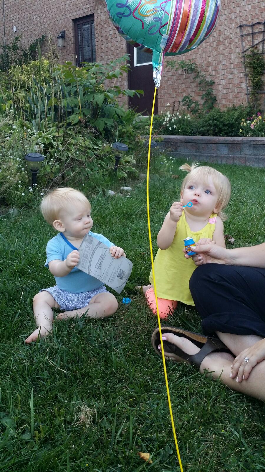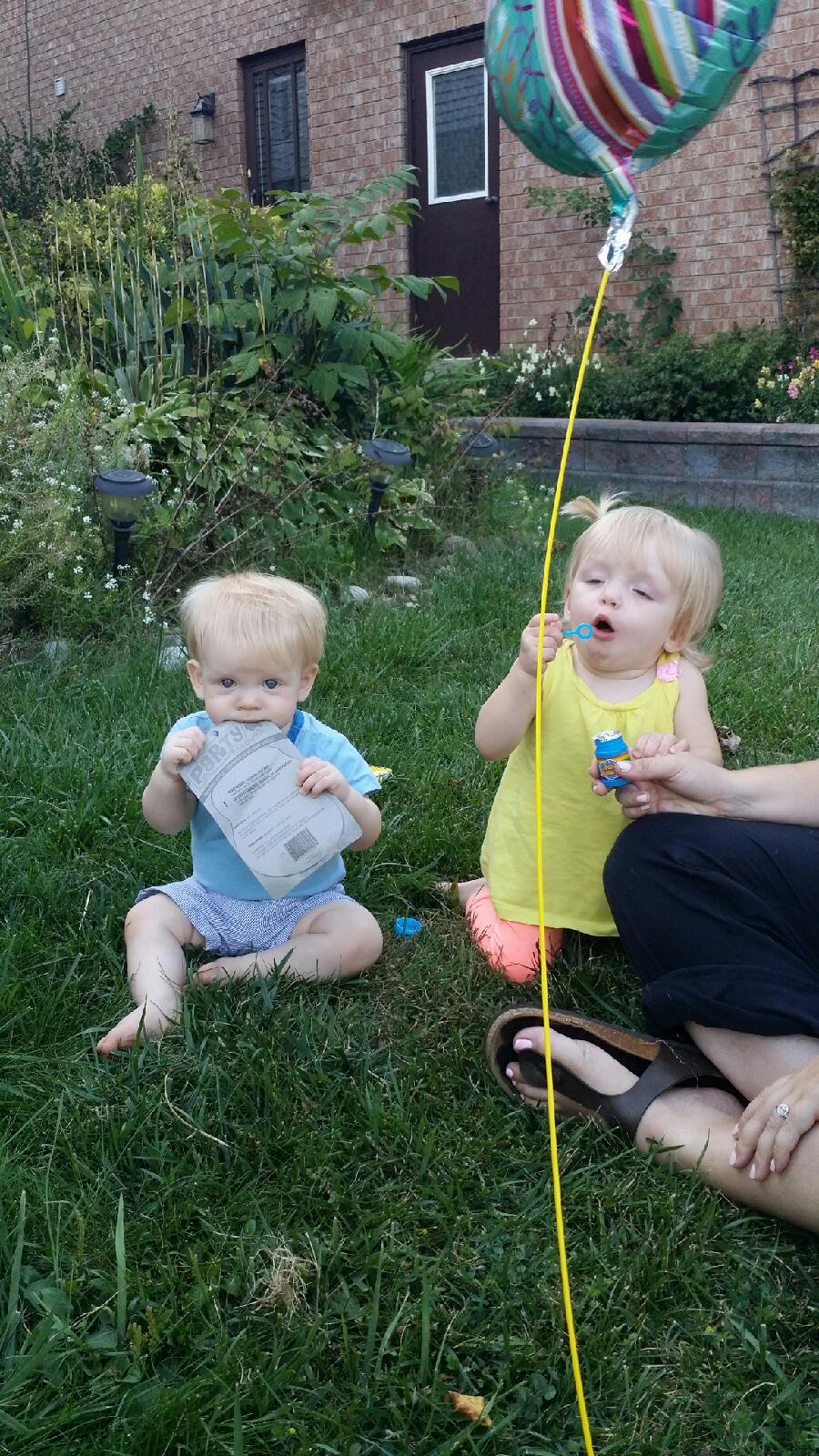 Madison also had a nice visit with her cousin Nate, Aunt Nadia and Uncle Mark who brought her a birthday balloon and some gifts that her and Nate explored on the front lawn. Madison had a great day!