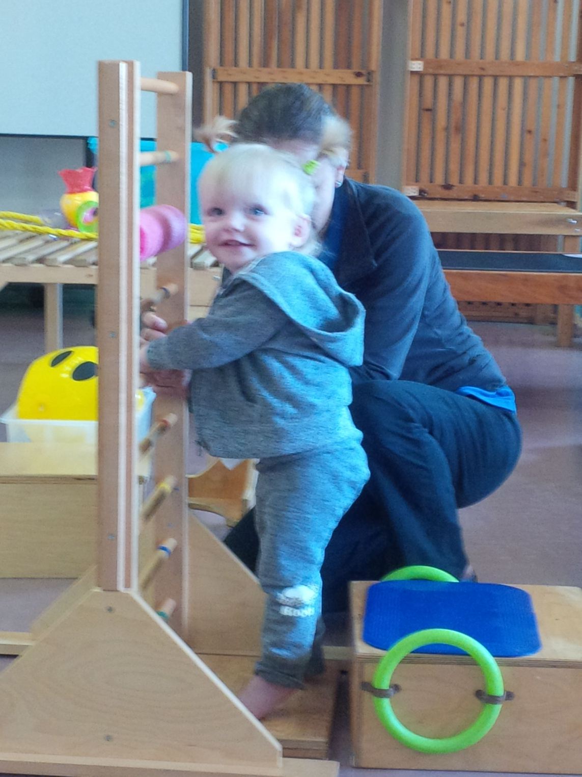 Madison had a great afternoon with her Aunts Suzanne and Janine. She had a big nap, ate some grilled cheese and went to March of Dimes for her new Conductive Ed class. She worked really hard with Monika doing free standing reaching for objects, walking with ropes and walking using chairs. We are thrilled Madison will be going for classes every Wednesday until mid December!