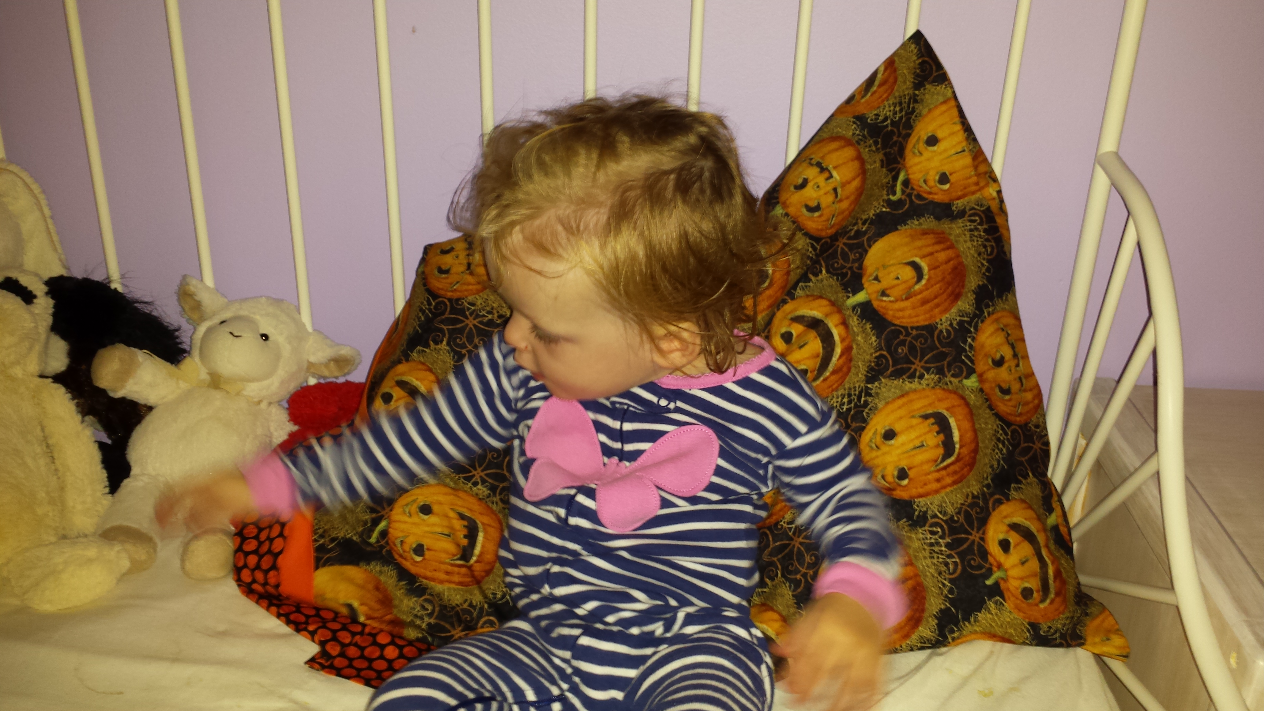 Madison arrived home from school today to a Halloween gift from Pam and Medford. She loved ripping the paper out of the gift bag. Pam made Madison a Halloween pillowcase for her new bed. It’s beautiful and so fun! Madison pulled it around with her for most of the afternoon and is currently sleeping with it. Thanks Pam!