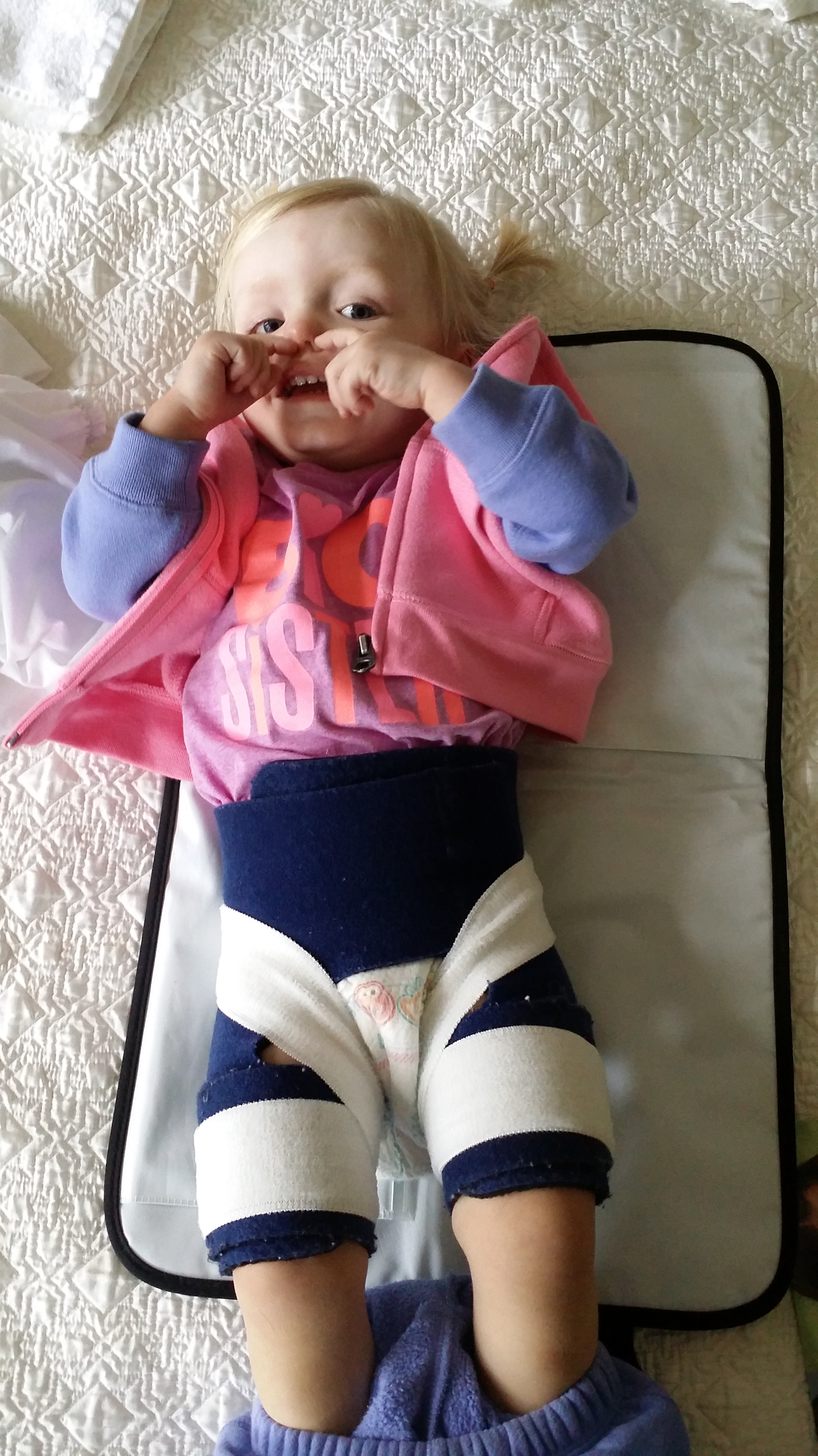 Right now Madison uses her walker and braces to try and walk independently, but it is our hope that with continued support through her therapies that she will one day be able to walk unassisted. In fact one of her therapists believes she will be able to take 2 independent steps by the end of October.