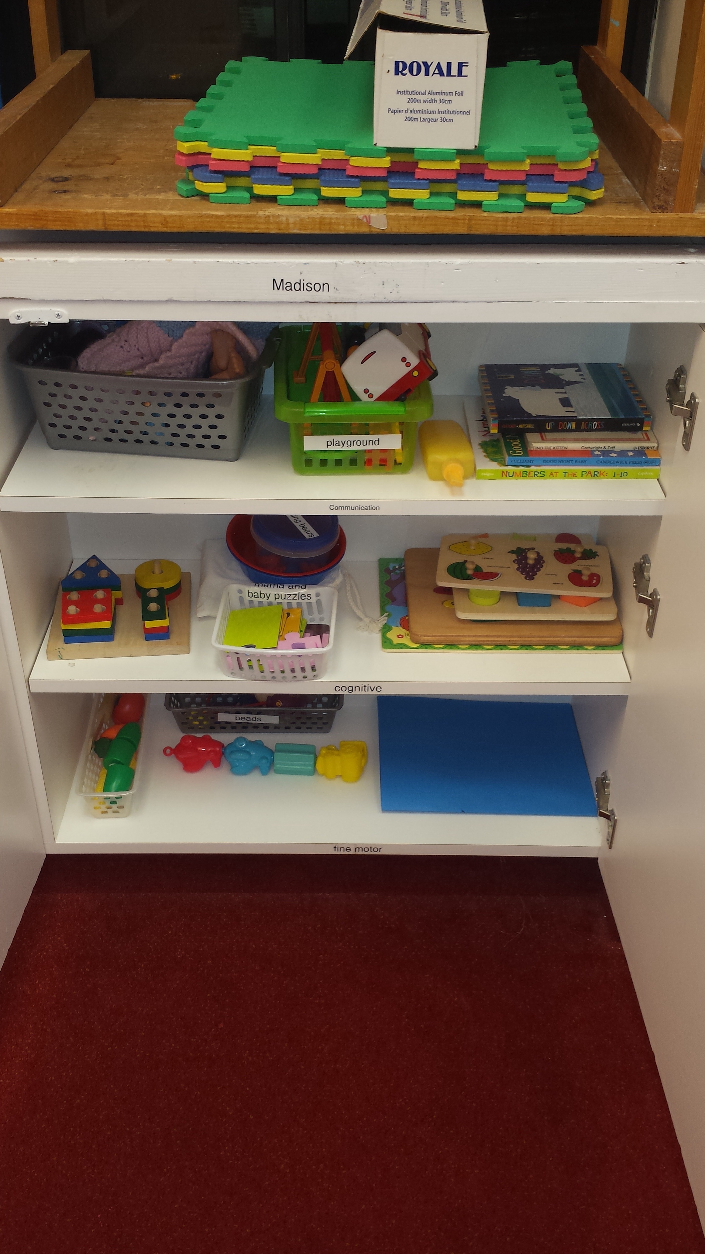 Tonight was Madison’s first parent night at school. Mommy and Daddy met some other parents, explored the classroom and were able to sit with Madi’s teacher to discuss goals, next steps and get a feel for how she is doing and how the transition has been. Her assessment report had specific goals that focused on areas such as gross and fine motor skills designed by her PT and OT at school, cognitive goals, social goals, language goals, transition and independence goals and using the potty. The items outlined in the report are directed from the lead teacher and then shared to each of Madison’s volunteers each day to help implement and monitor. Her teachers also spoke of next steps for next year and applying to places for specialty kindergarten programs (like Bloorview) and to start thinking about things that need to be lined up by this time next year. Mommy and Daddy were given a report to bring home with lots more artwork and a beautifully laminated placemat for home that has all of her classmates pictures with names and her teachers pictures with names to help facilitate conversation about school at home. Lots of great information was learned and it was a nice field trip out of the house for Mommy.