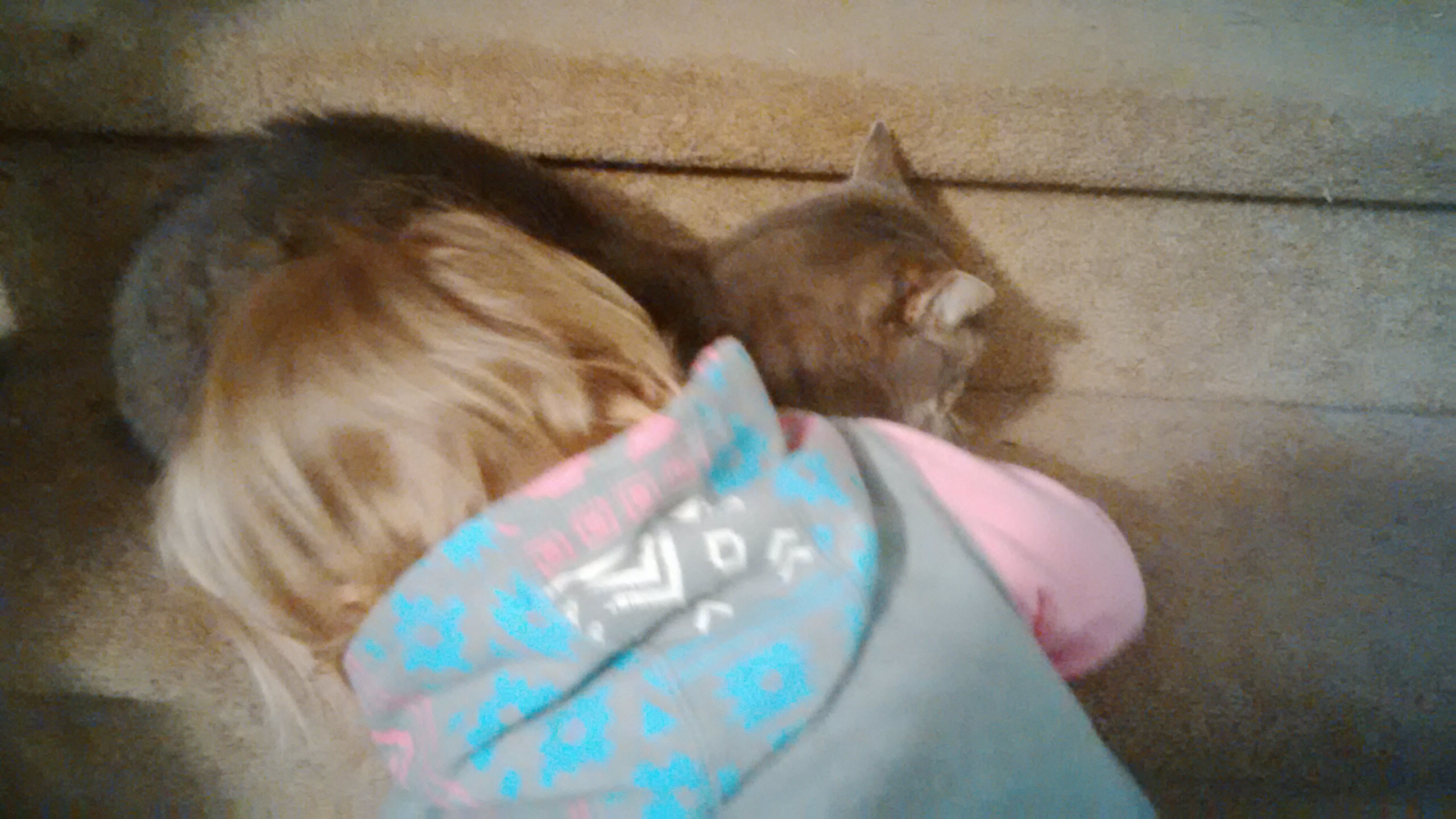Madison stopping on the stairs on her way up to bed to snuggle with Stitch…