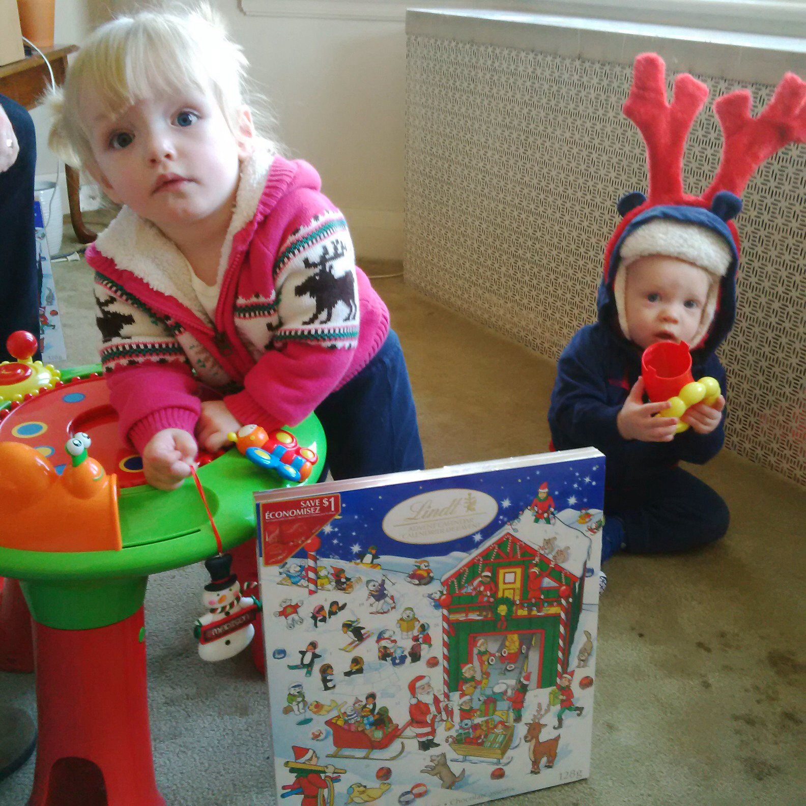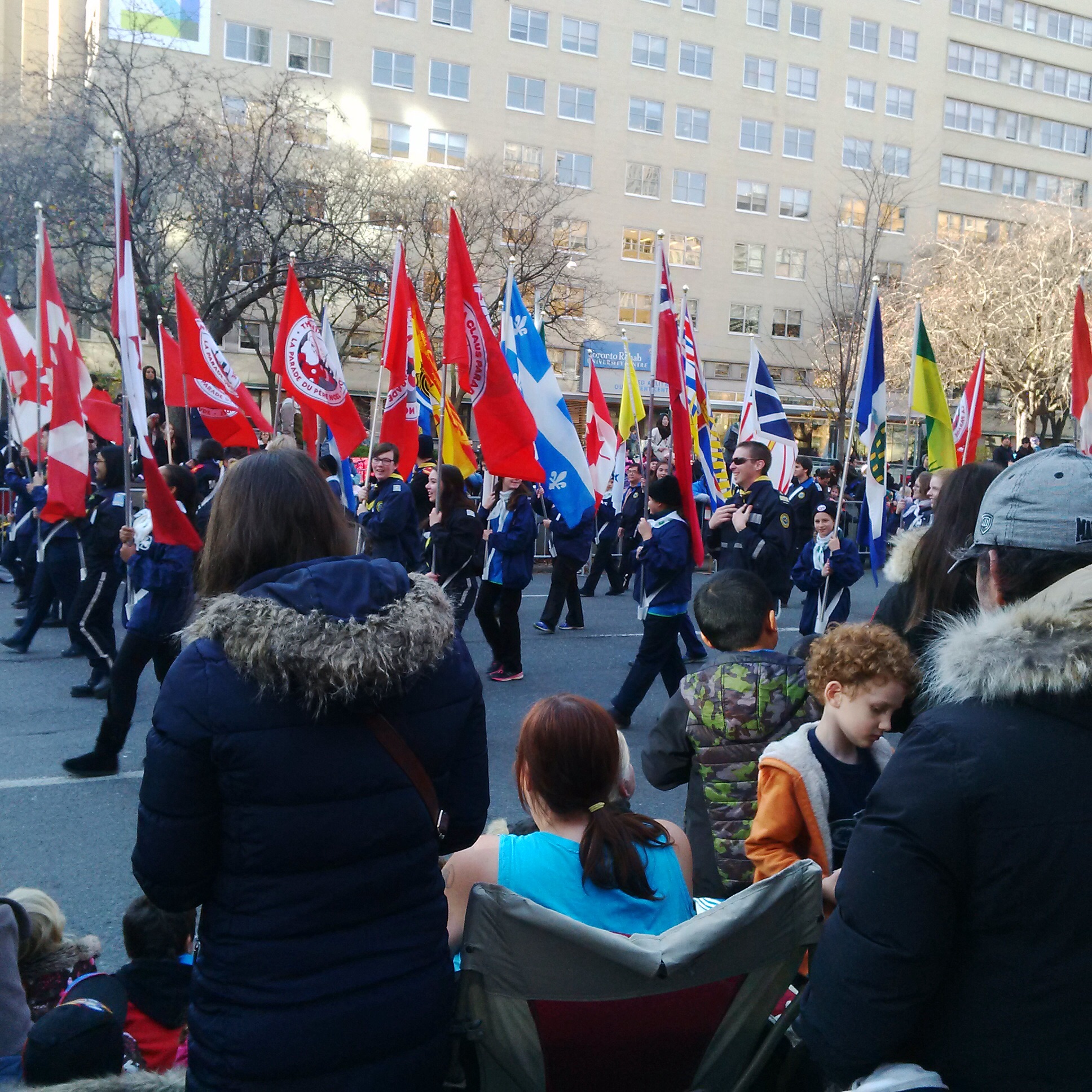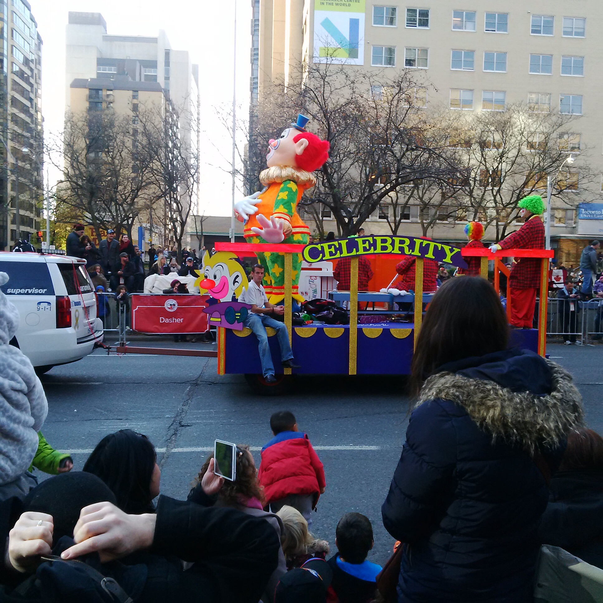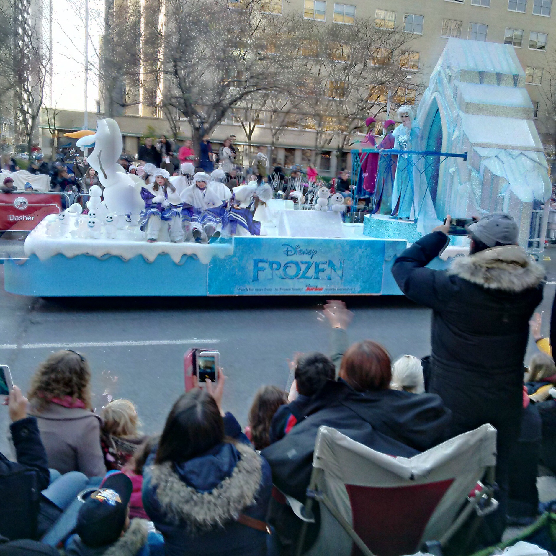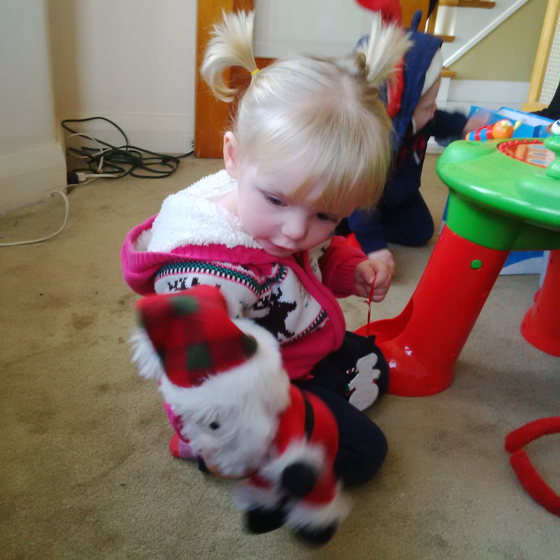 Today Madison spent her day with Nana, Papa, Uncle Mark & Nate and went to the Santa Claus Parade for the first time! It was a beautiful day! The day started with a visit at Nana & Papa’s house and gifts! Madison and Nate were given an advent calendar, reindeer antlers, a Christmas ornament and a Santa stuffy to snuggle with during the parade. They then made their way down to the parade and watched out front of Sick Kids Hospital. They had great seats! They watched all the floats go by, waved hi and had lots of yummy snacks and lunch – Madison loved her frosty cookies. The music from all the bands was great – Mark and Nate danced to the Western University marching band. Madison’s favourite floats were Mother Goose, The Blue Jays, Treehouse and of course Santa! Madison gave her Santa letter to one of his elves who was collecting and then they saw Santa! They waved hi and said ho ho ho! It was a fun day and a great way to kick off the holiday season. As soon as the parade was ended Madison fell asleep in her stroller and made her way back to Pickering. Thanks Nana & Papa for a great Sunday! She loved telling Mommy and Daddy about all the things she saw and watched the parade again on tv before dinner. Madison is ready for the holidays to start!