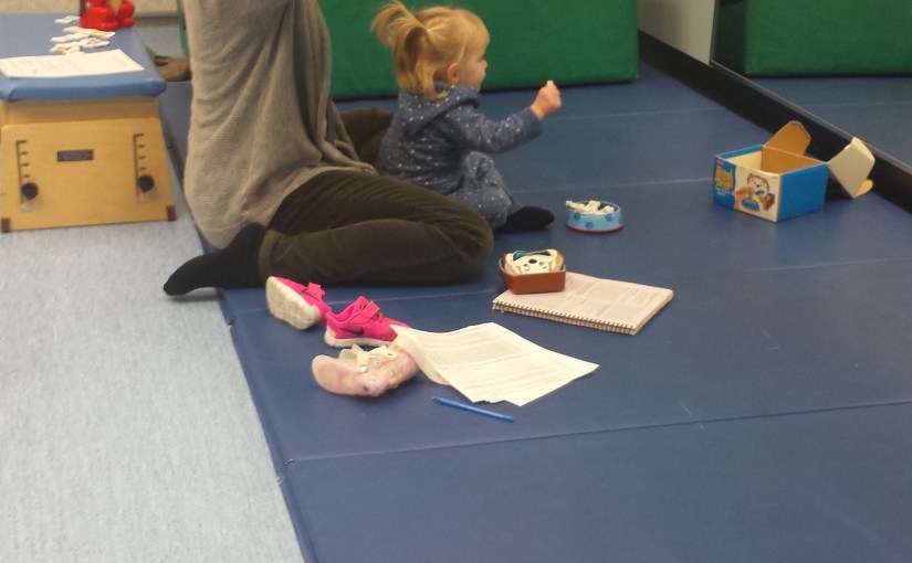 Today Madison had her last session in her Grandview block of therapy with Kate. Madison will now have a break until mid to late March. For her last session Kate did the Gross Motor Function Classification System test with Madison. It took the full hour and Madison did a great job following instructions. Kate will then do this test again right before Madison starts JK and then again before she turns 5. Kate will plug the points and comments into a computer program that will give her results that we will see in a few weeks.