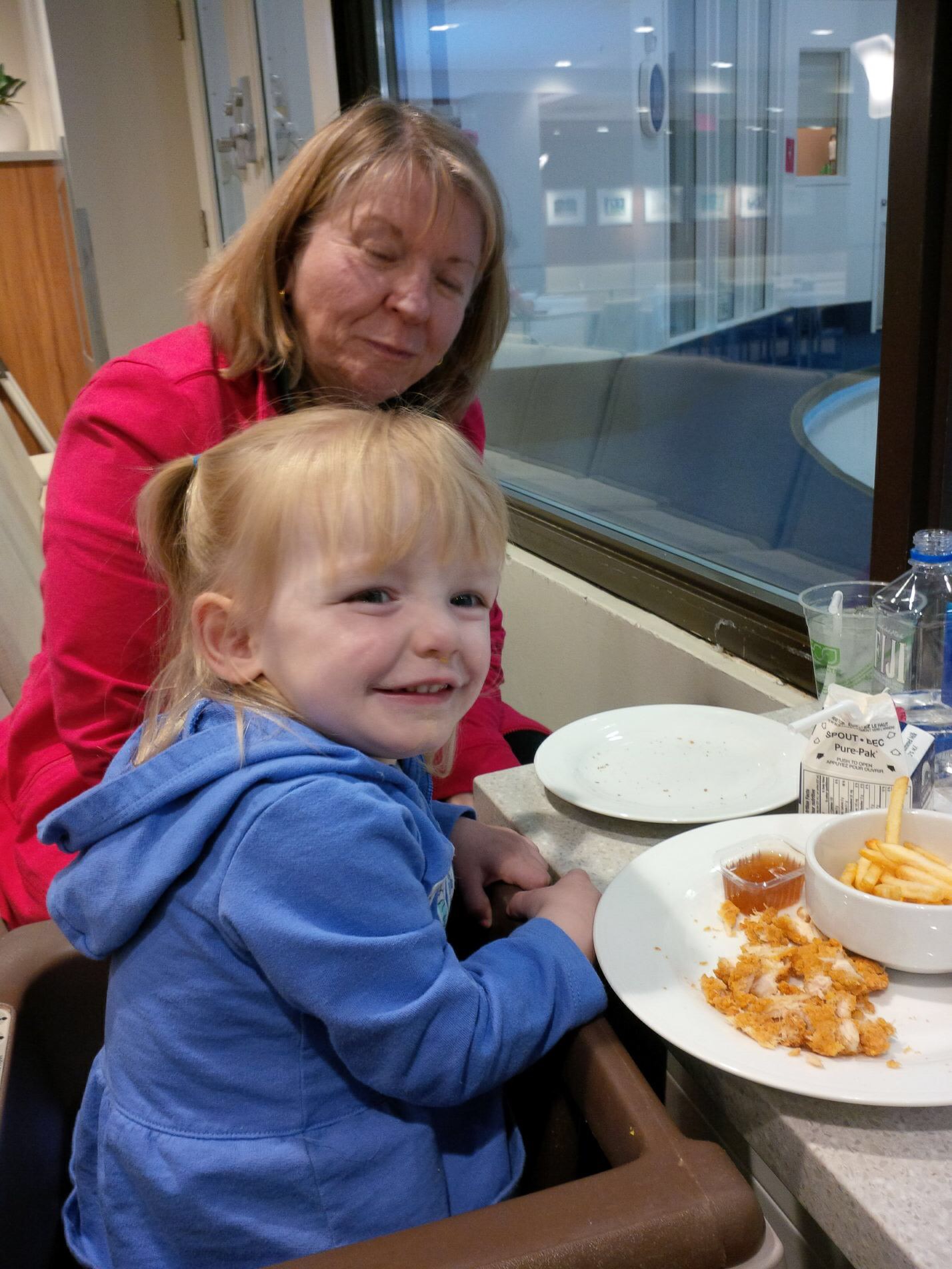 Madison had a fantastic afternoon with Suzanne and Janine. She had a nap after school and then went to the Granite Club for lunch. She had her favourite, chicken fingers and fries and watched the figure skaters while she ate. She loved watching the zamboni clean the ice afterwards.