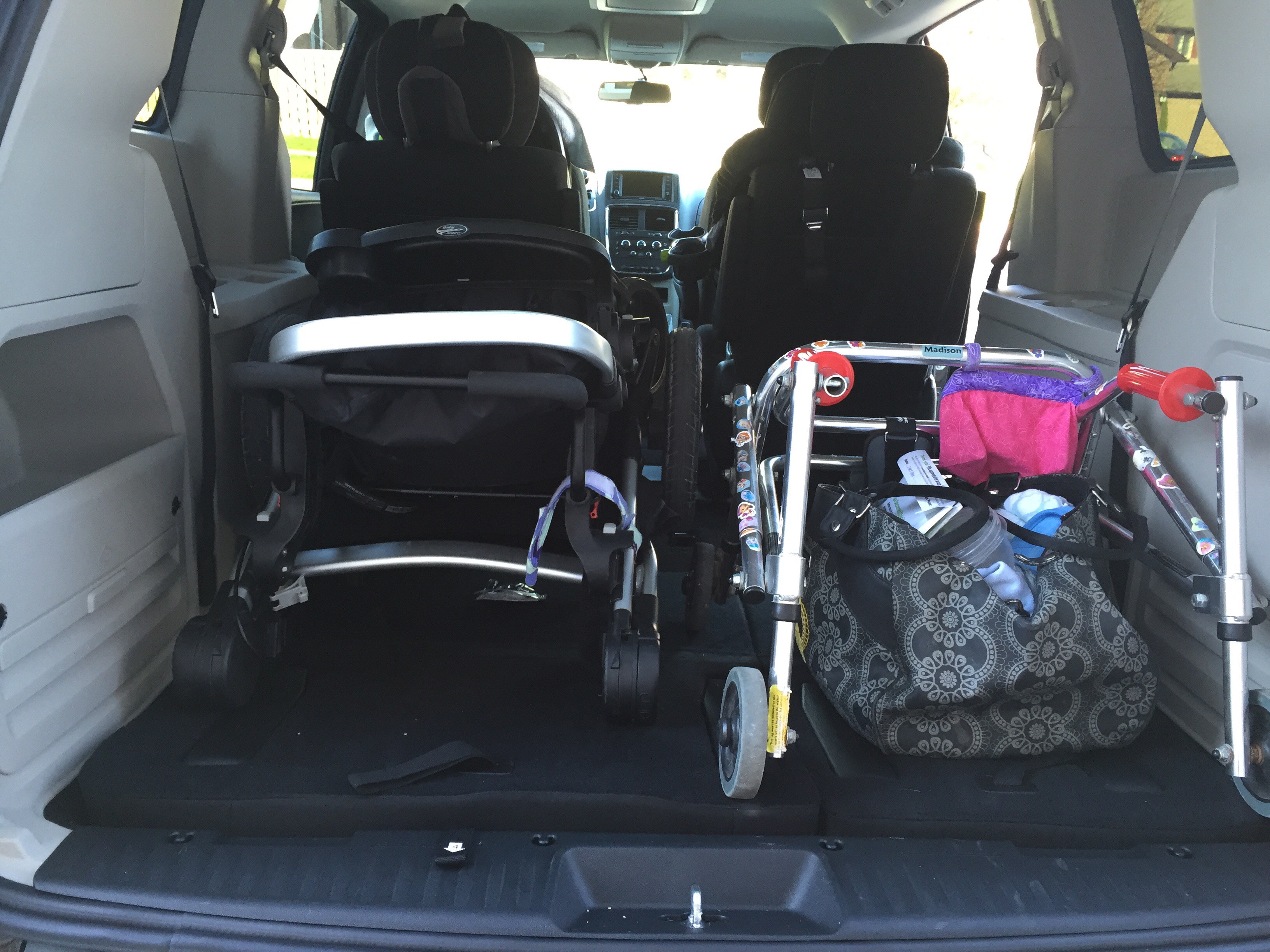 Mommy and Daddy brought home the new family van this morning. The van will provide endless possibilities not only for the family, but for Madison and whatever her needs will be. There is plenty of room to safely and securely fit both her walkers, her canes and the stroller. There is room for other passengers as well as the two car seats. The door is lower on the sides where Madison can enter. With a step stool she will be able to enter and exit independently. There are also plenty of tie down hooks on the floor for any other equipment she may need in the future.