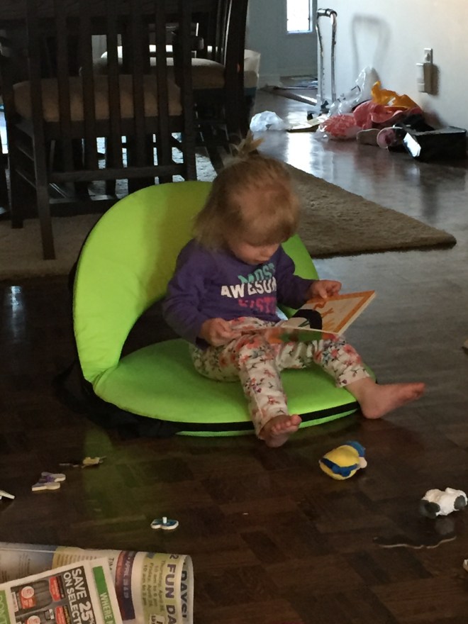 Before bed, Madison read herself some books in her new floor chair. She has been using it to sit with straight legs to get a good stretch before bed.