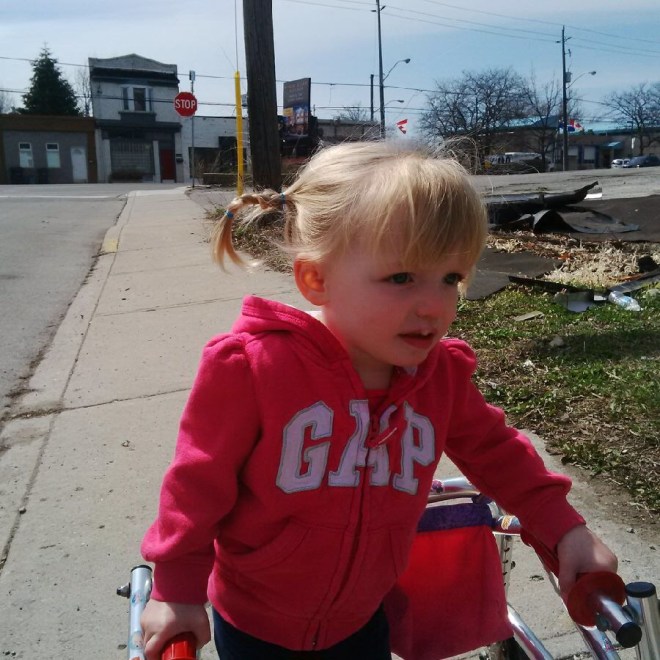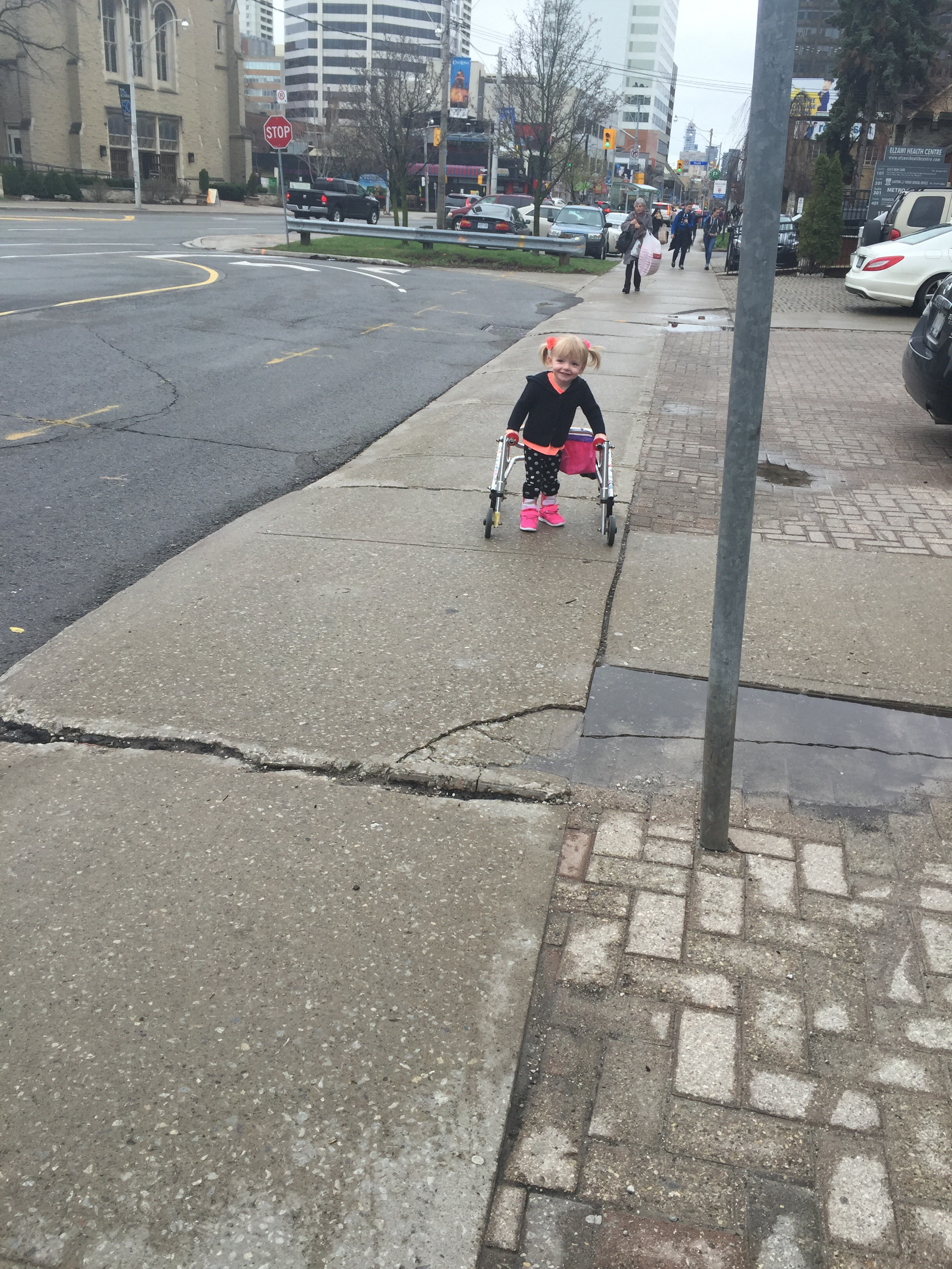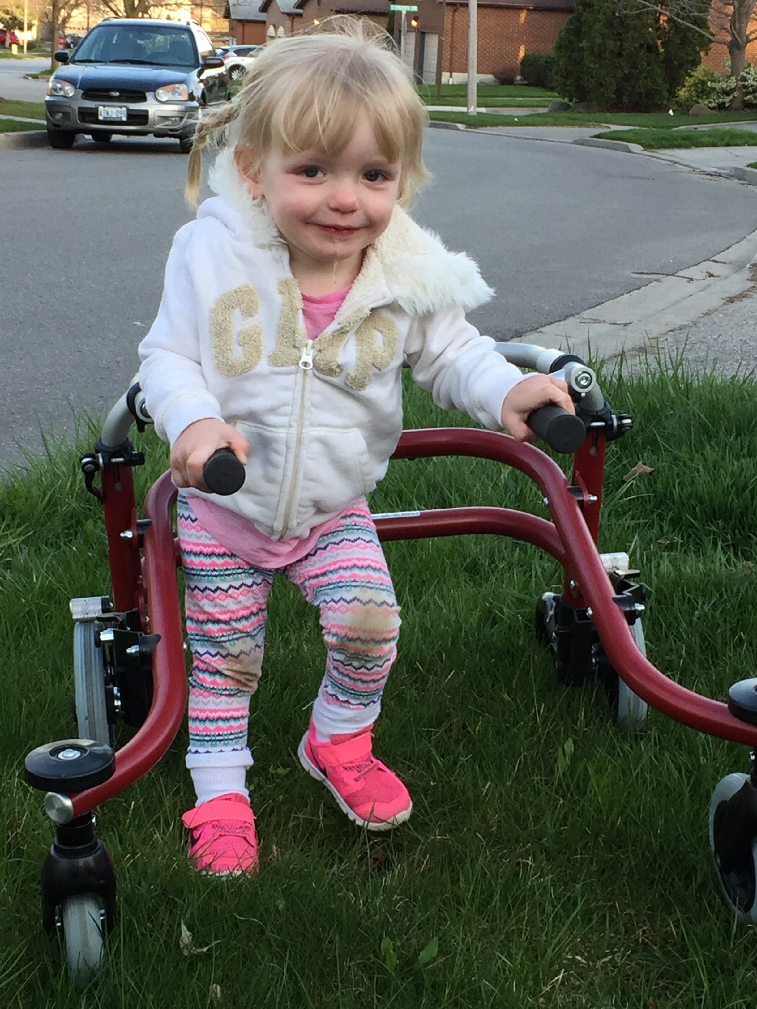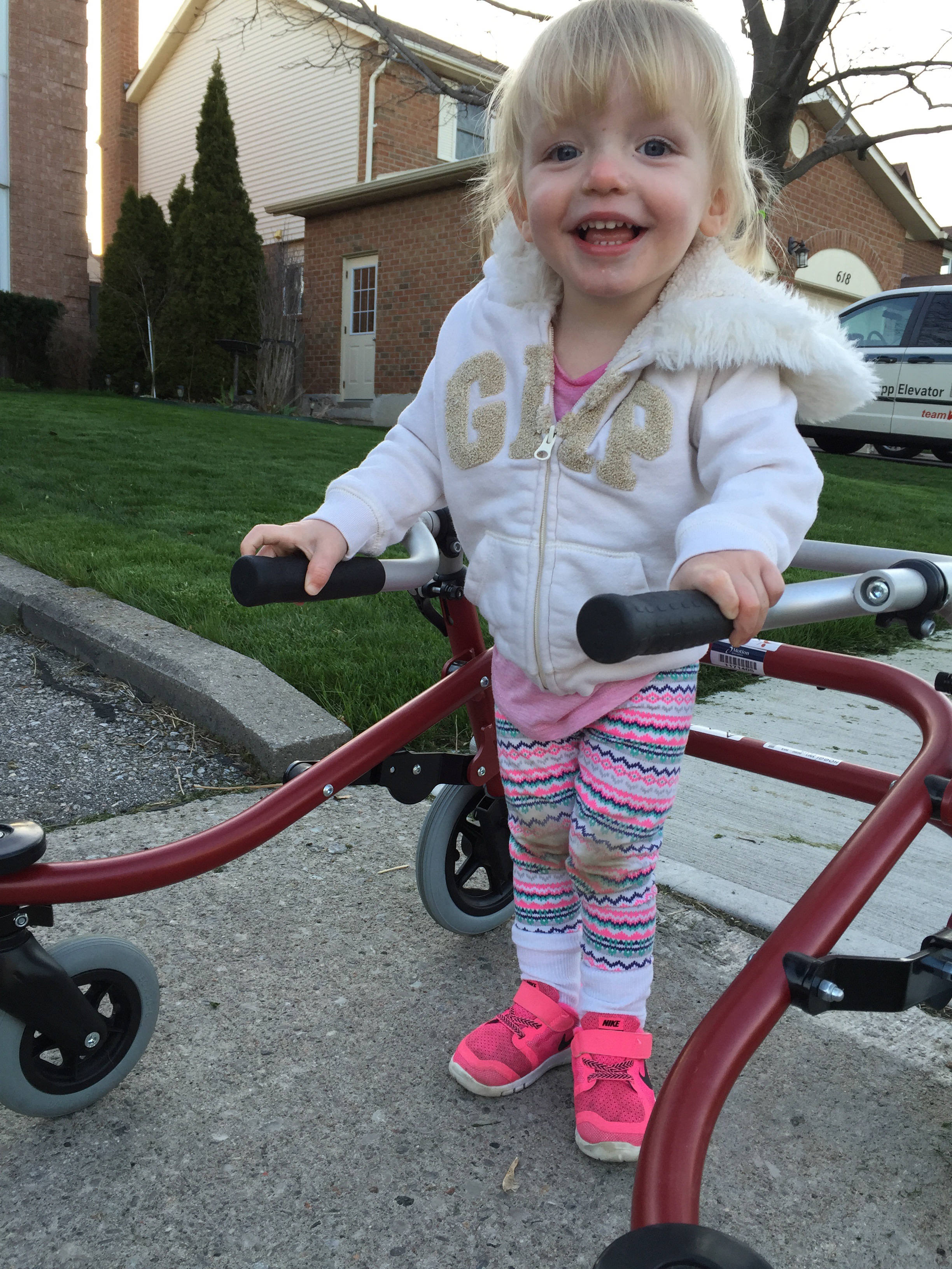 Madison did lots of walking with Nana and Papa this morning. She walked all around the house and walked all the way to Kingston road and back in her walker. Madison’s endurance has really improved in the last few weeks. Now with the nice weather she will be able to get lots of practice outdoors.