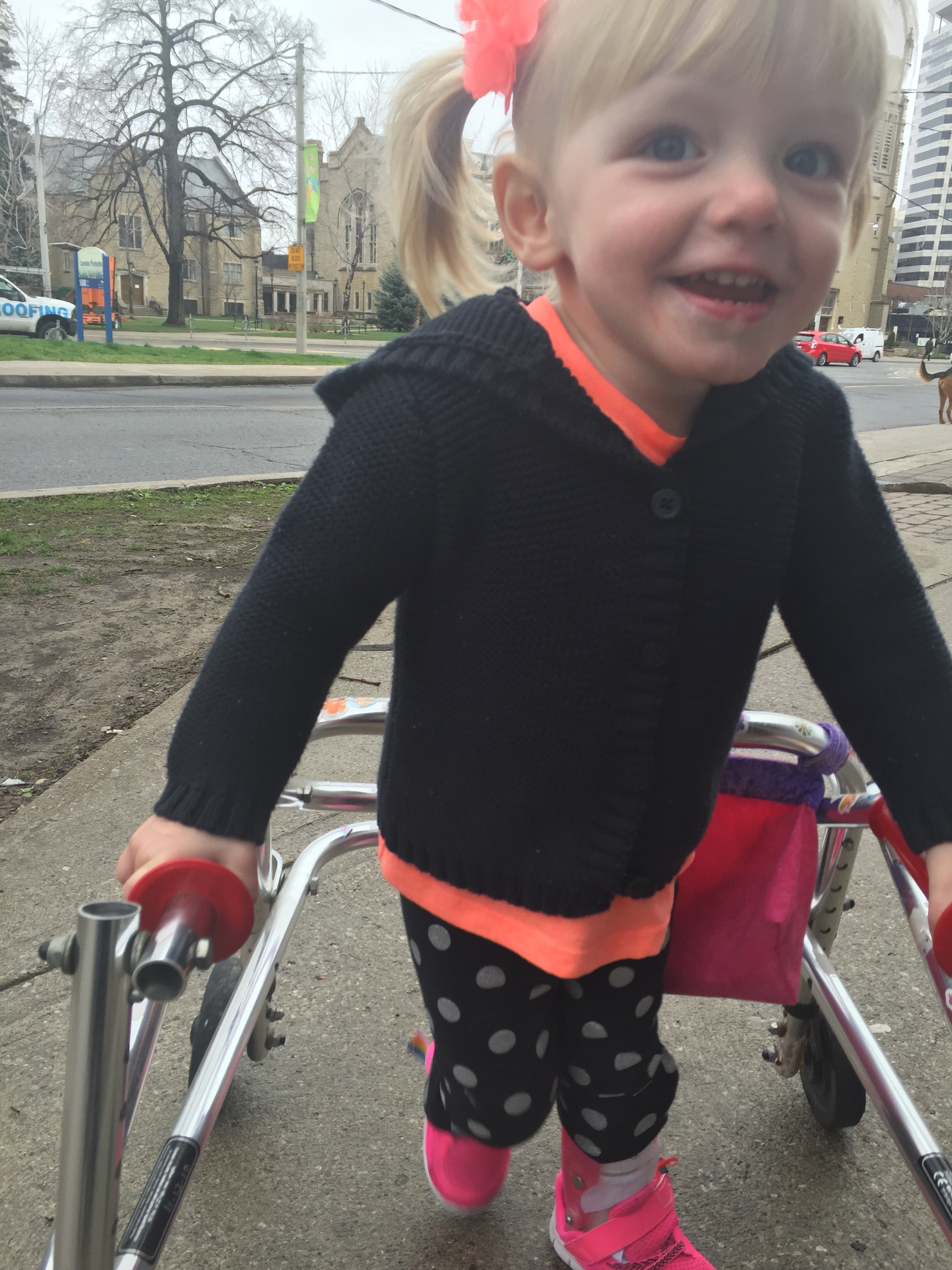 Madison walked in her walker all the way out of the building and through the parking lot to the car all by herself.
