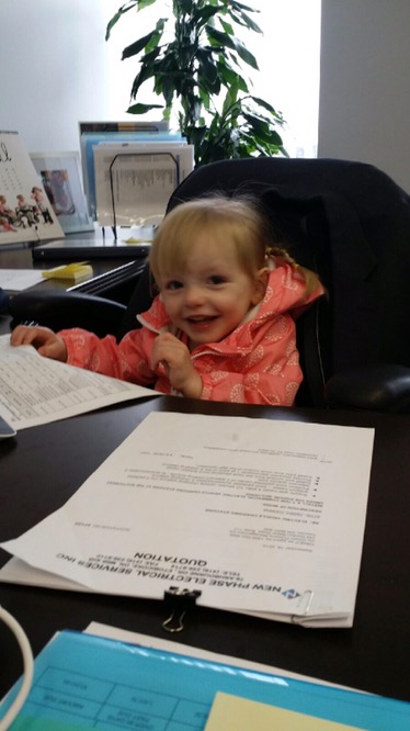 On her way home, Madison went to Daddy’s new office for the first time. She had been asking about his new job and wanting to see it for weeks.