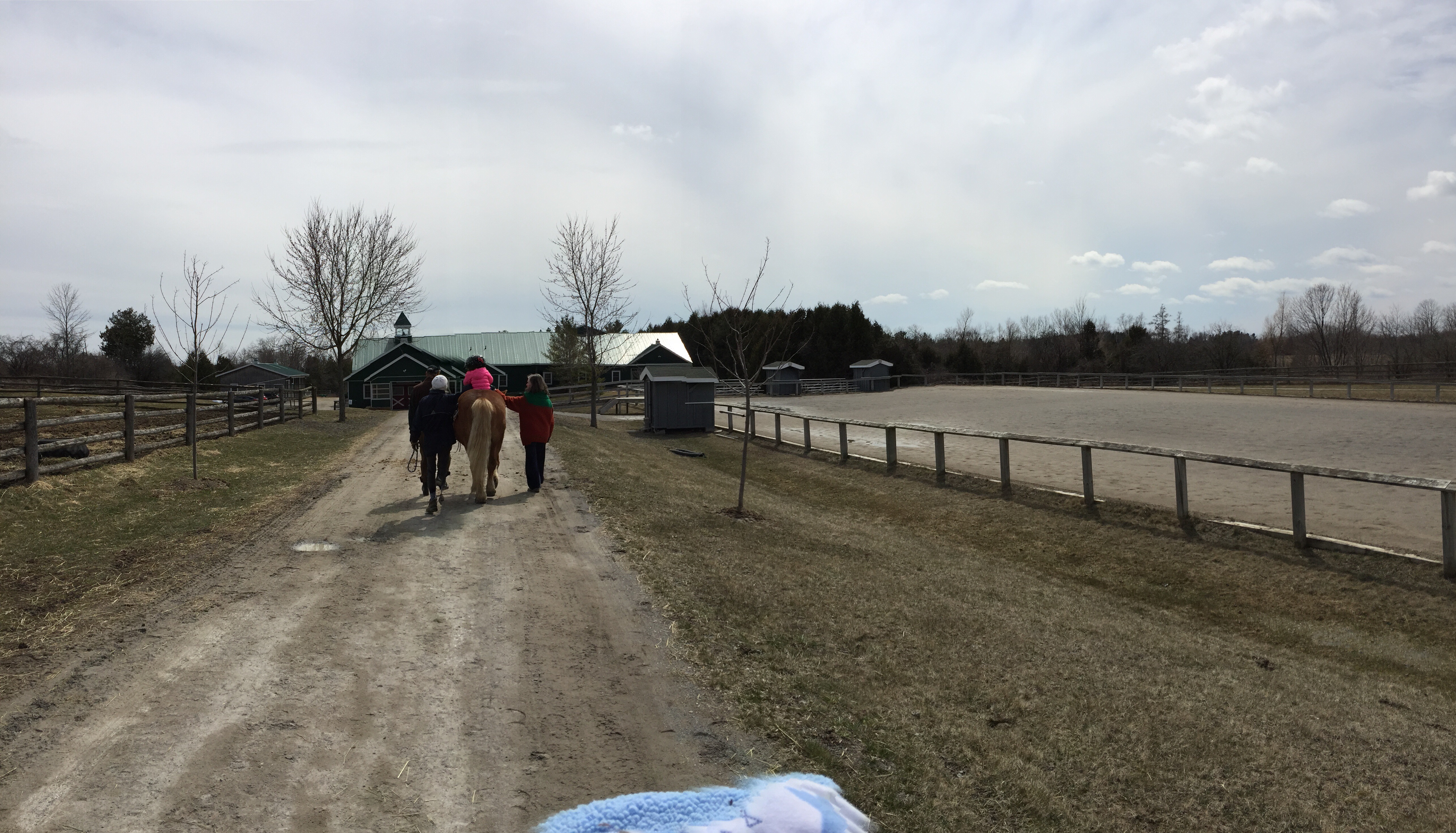 The sun was shining so they headed outside for a ride. Riding on the back trails is much harder then riding in the indoor ring because the ground in uneven and there are more hills outside. Madison got an excellent workout and thanked Joe by giving him an apple and a carrot after their time together.