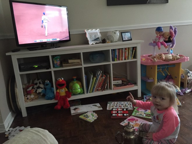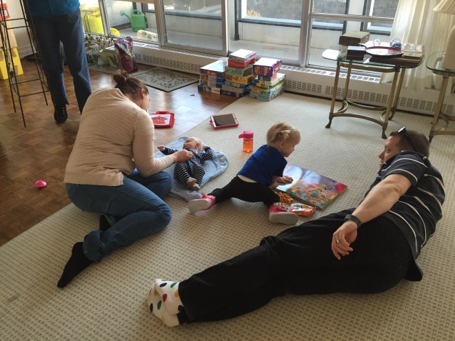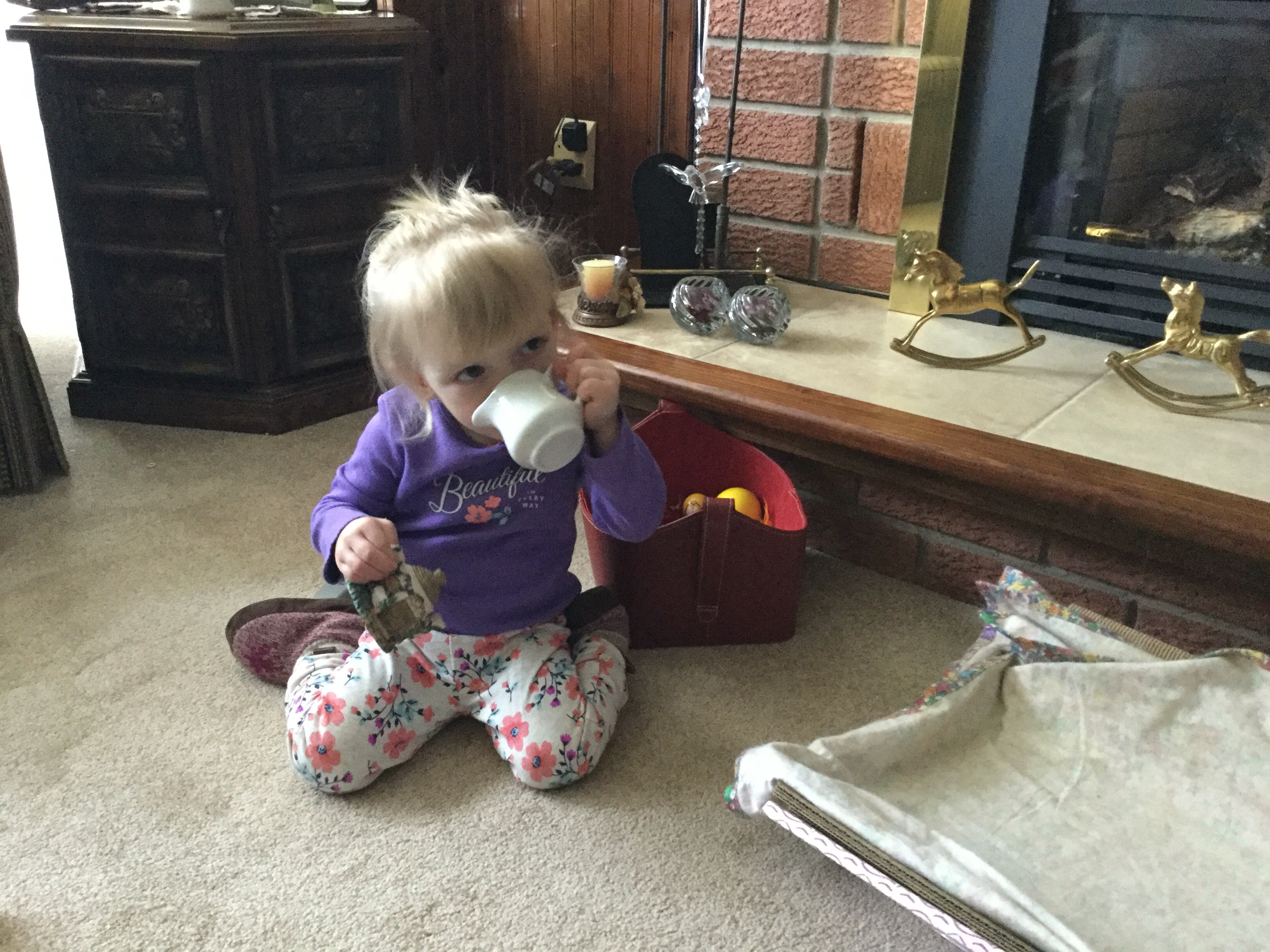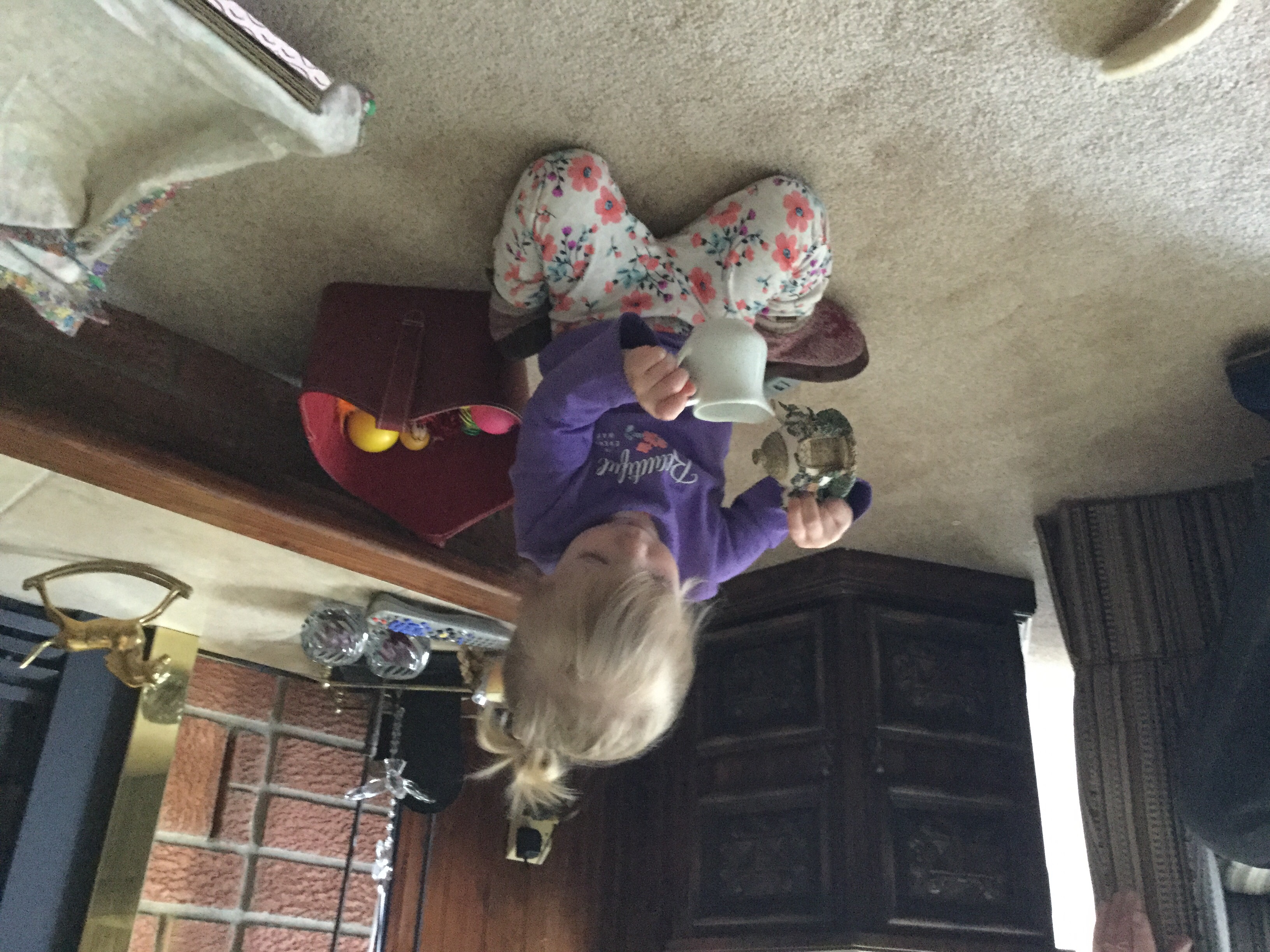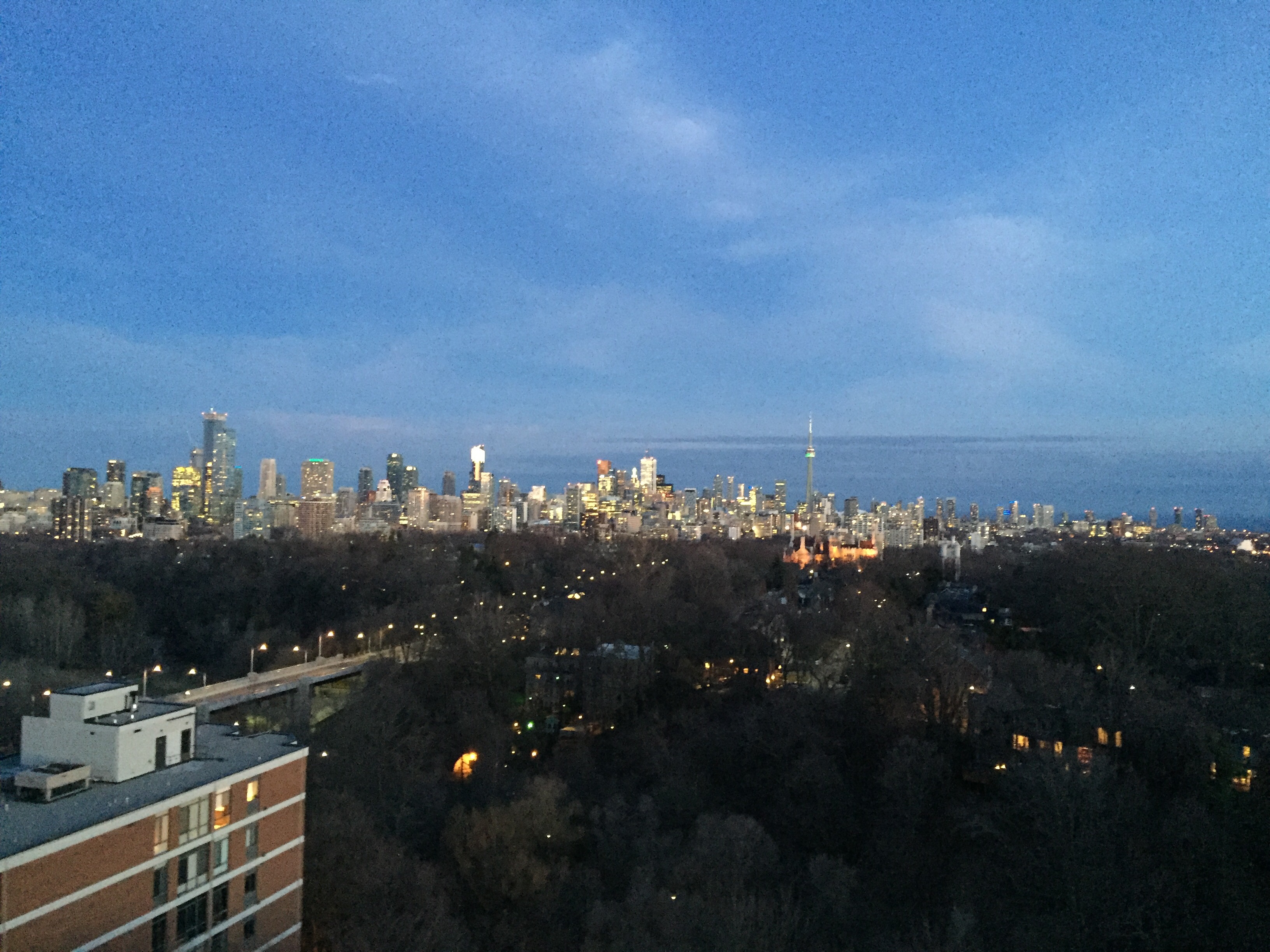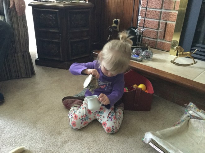After her session with Stephanie she headed to Great Grandmas apartment to help Nana pack up a few items. Madison’s Great Grandma is now living in a smaller apartment and the family is helping her downsize and keep various items important to her Great Grandma and the family. Mommy and Madi were happy to receive a silver tea and coffee set that was Madi’s Great Great Grandmothers. It is very special to have and she was happy to serve herself tea and play while everyone packed some things up and got organized. When it was almost time to go – Mommy, Nana, Uncle Mark, Aunt Nadia and Jack all admired the view from the belcony looking at the skyline and the CN Tower that was lit up green for organ donation awareness!