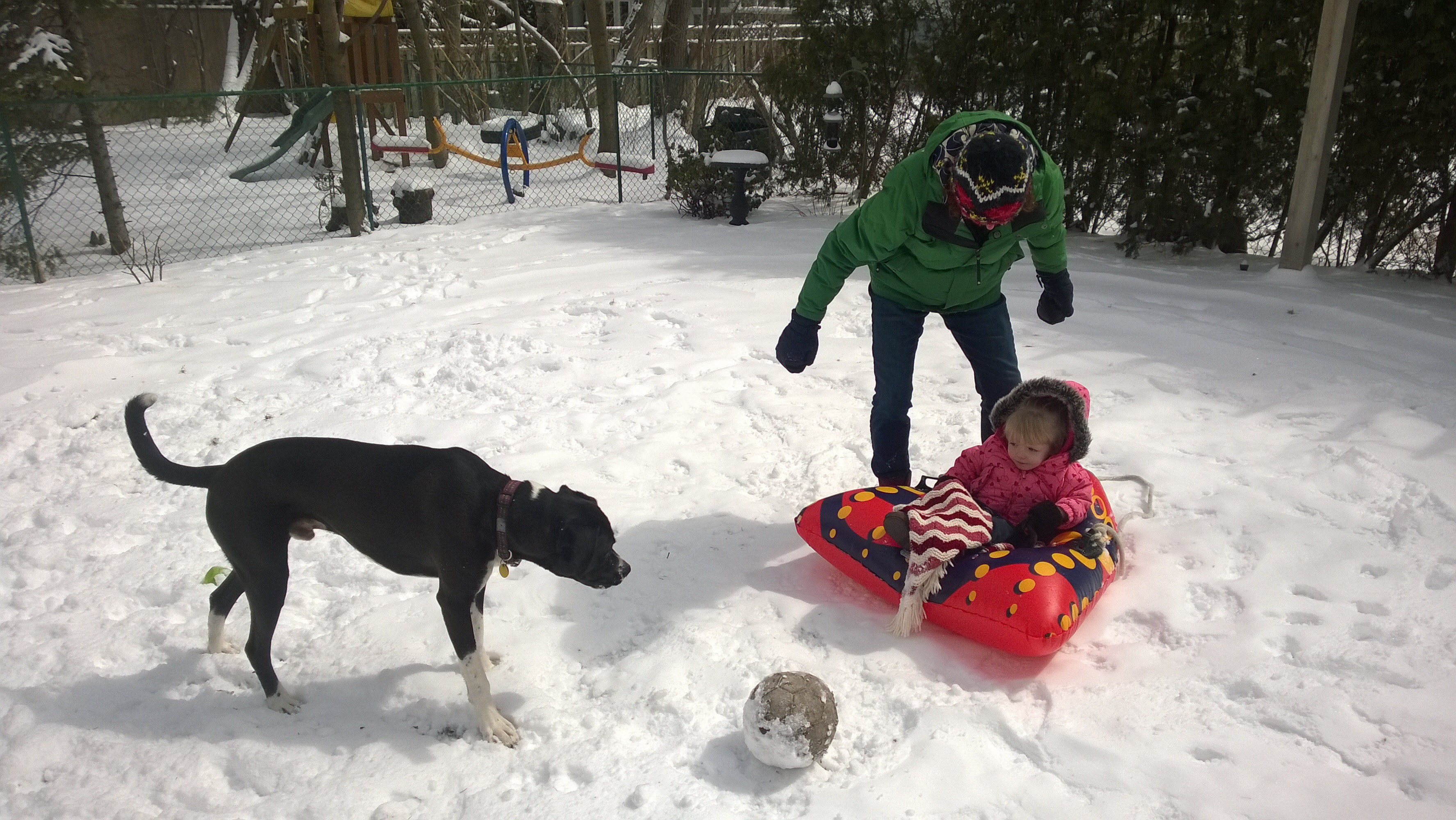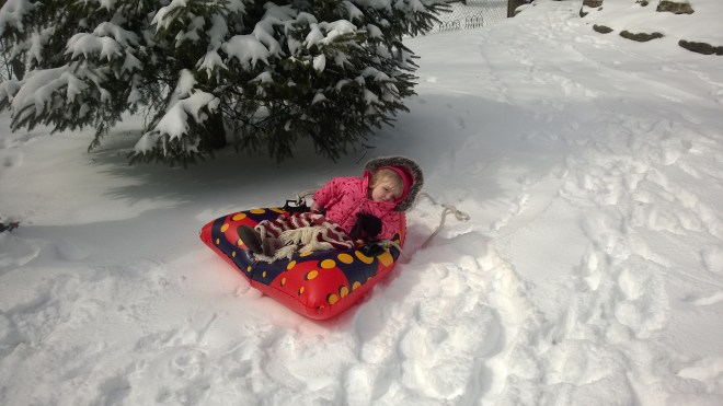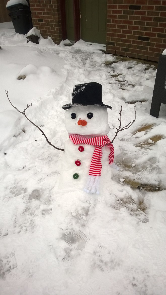 “Madison had a great day. She taught Stanley his numbers, she sat by the wood fireplace, read books and then she went outside to play on the snow. She went for a sled ride and then made a snowman! Yes in April!! For lunch she had chicken pie, Cucumber and peppers and then ice cream. Madison had a long nap and Woke up happy and played the piano. It was a wonderful day together.”