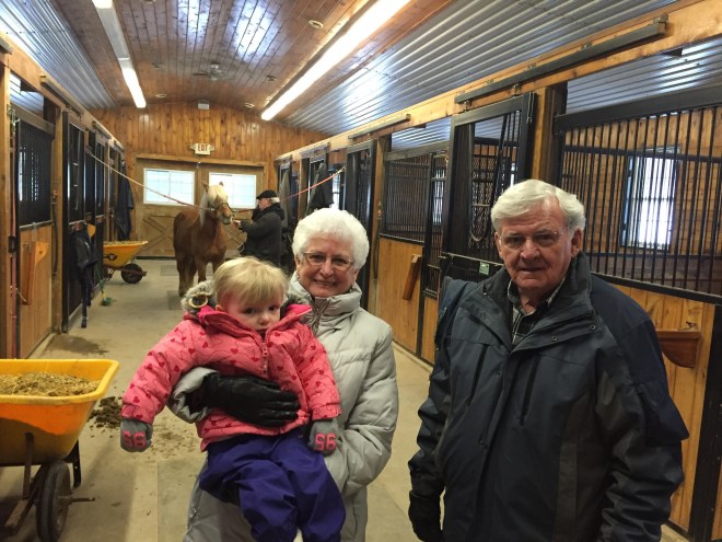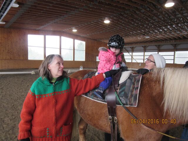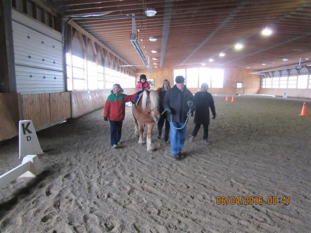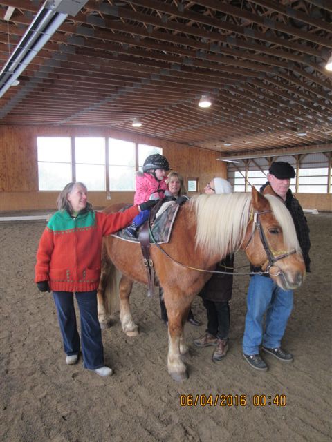 After a great morning at school, Madison headed north to have a visit with her horse Joe. She was still feeling under the weather so she only lasted about 20 minutes before it was time to get off Joe and head to his stables to give him an apple. Her therapist and volunteers have been teaching Madison about Joe. What he likes to eat, how he moves and the different parts of him like his tail and mane to help her build a relationship with him. They also have been using mirrors so Madison can see how she sits on him and the posture she is to have to help build her core strength. Madison was happy to have Pam and Medford meet Joe and watch her ride. Thanks Pam and Medford, Madison loved having you watch! It was a cold session with Joe today so hopefully this will be the last of the snow and they can have more rides outdoors together in the sun.