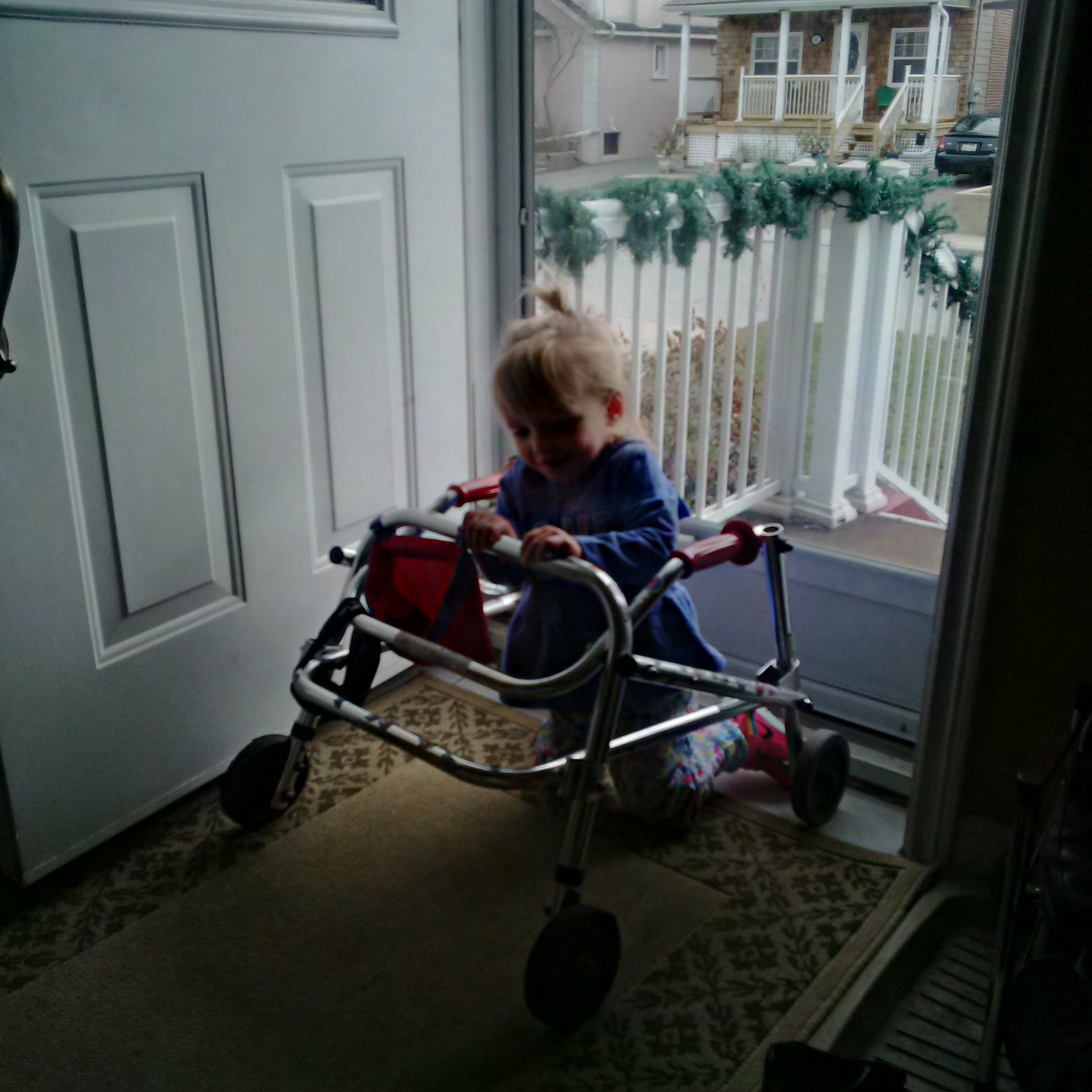 Madison had a great morning with Nana & Papa! She practiced using her walker around their house while she helped Nana with her medication, baked cookies and played with all their toys.