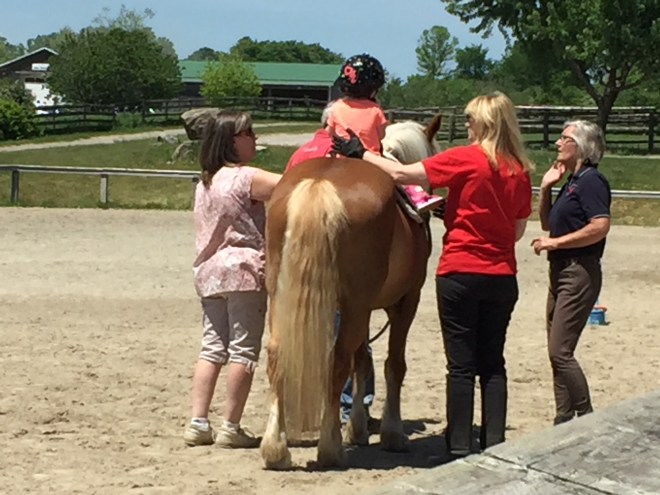 Madison also did an amazing job with her horse Joe today. Her receptive language skills are developing so nicely. Madi is able to understand and follow instructions so well from her instructor. Mommy’s mind was blown seeing Madison do different exercises using either her right or left hand on request. They worked on stretching her arms and body while riding, reaching for rings to engage her trunk muscles and to practice shifting her weight on the saddle. Madi even worked on taking her hands on and off the harness while multi-tasking with a ring. Madison’s voice with Joe was also much louder and confident today. She is progressing so well and has become so comfortable and confident.