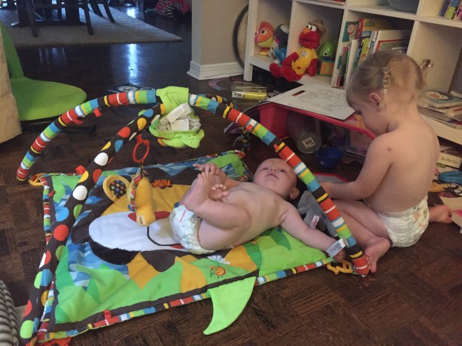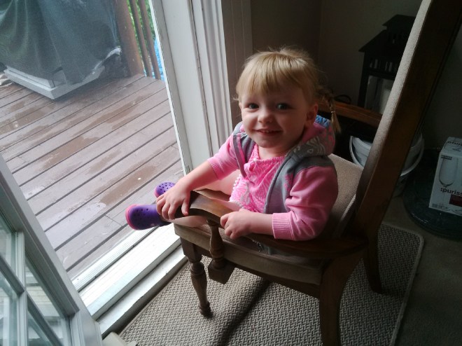 Madison spent the first part of her morning with Nana & Papa visiting with the Blue Jays in the backyard. One of her favourite things to do at their house is play with their play food. Her favourite piece is the chocolate chip cookie that she was determined to feed to Jack.