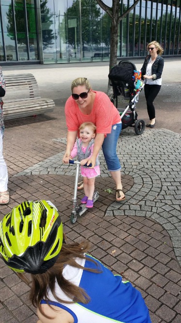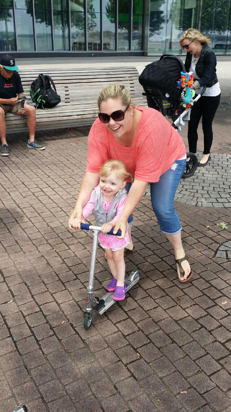 After brunch she visited with Dylan and the two went for a walk by Sugar Beach and watched the water fountain. They traded their “wheels” for a few minutes and Madi tried Dylan’s scooter – she loved it!!
