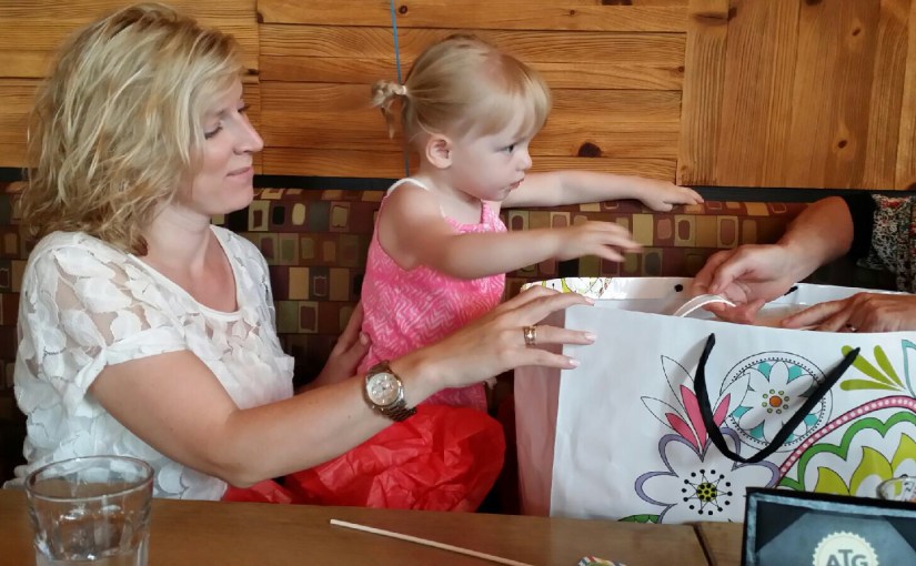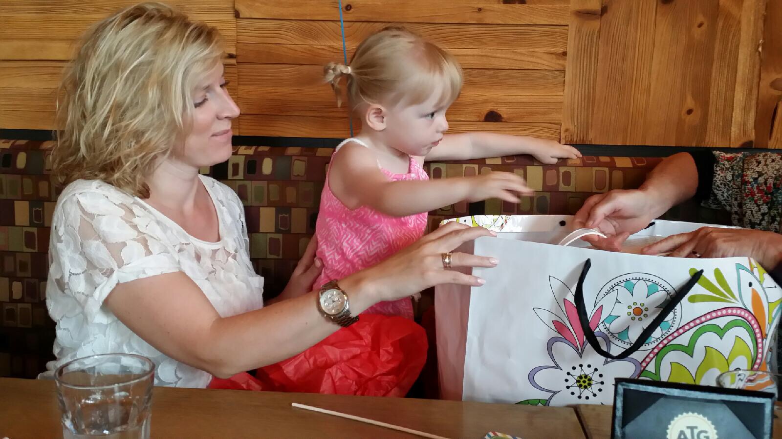 Madison then went for brunch with Grandma and Grandpa to celebrate Auntie Em’s birthday that is this Tuesday. She had her favourite chicken and loved helping Auntie Em open her gifts.