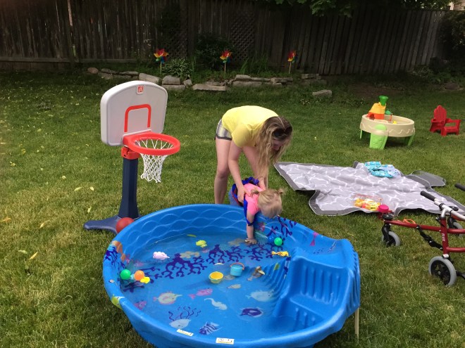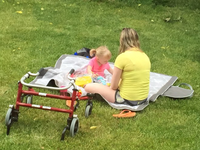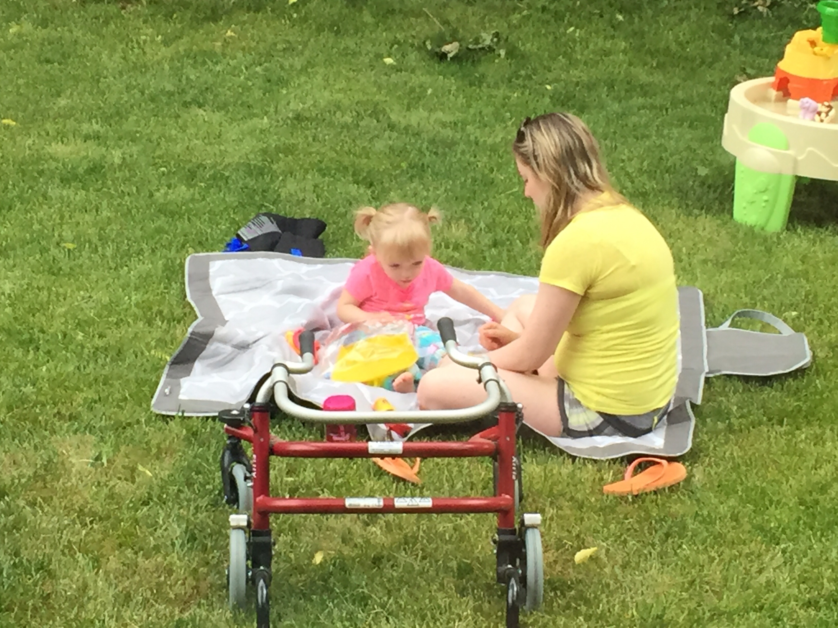 Madison and her buddy Emily had lots of fun together tonight. They did lots of long sitting stretches in her gaitors and practiced lots of walking. Madison loves being outside and it is so nice to see her do some of her therapy out there.