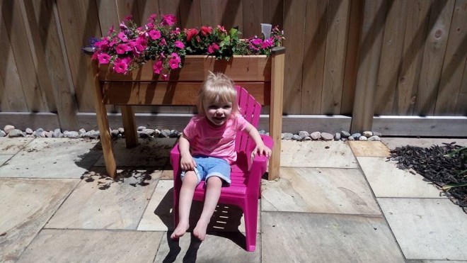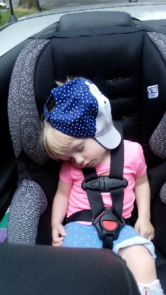 After school Madison hung out with Grandma, Grandpa and Stanley. She checked on her garden, played ball with Stanley and ate some Estonian sausages for lunch. She loved the fresh air in the convertible on the way home – so much that she fell asleep.