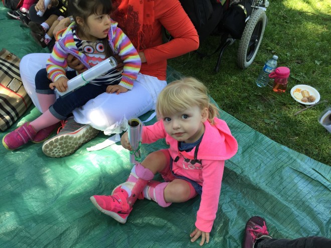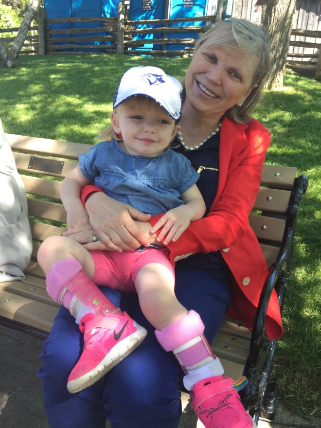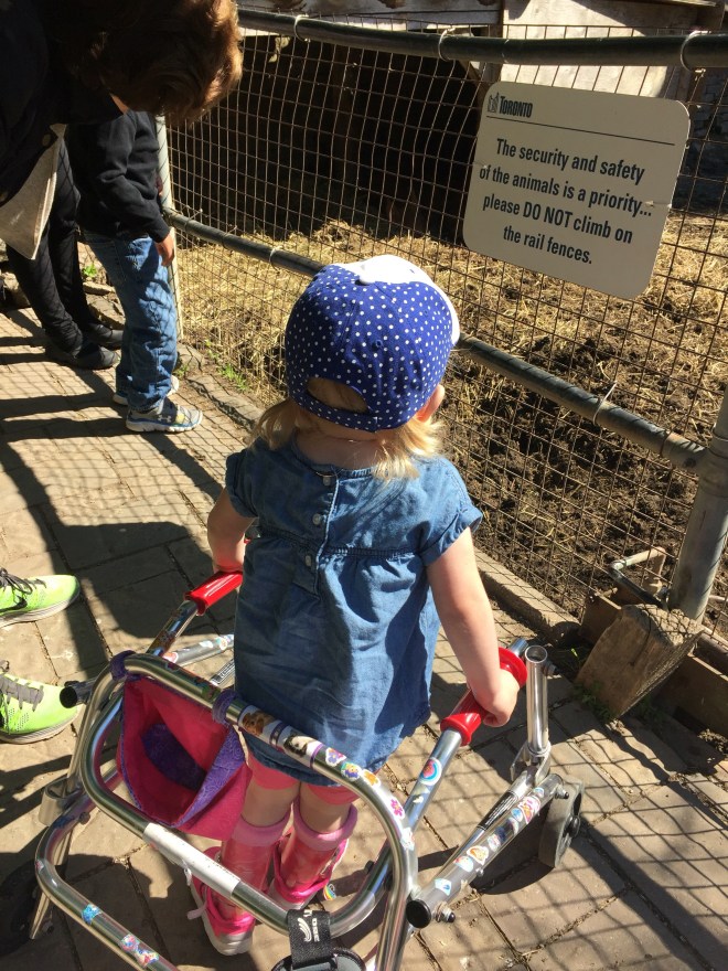 Madison had an exciting morning with her teachers and classmates. To celebrate the end of a great school year, they all visited Riverdale Farm. Madison loved seeing all the piggies, chickens and the baby goats. Madison did an amazing job walking all over the farm in her walker. She even went down the steep path all by herself! It was an amazing thing to celebrate and reflect on thinking back to the beginning of the school year when Madison was not using her walker.