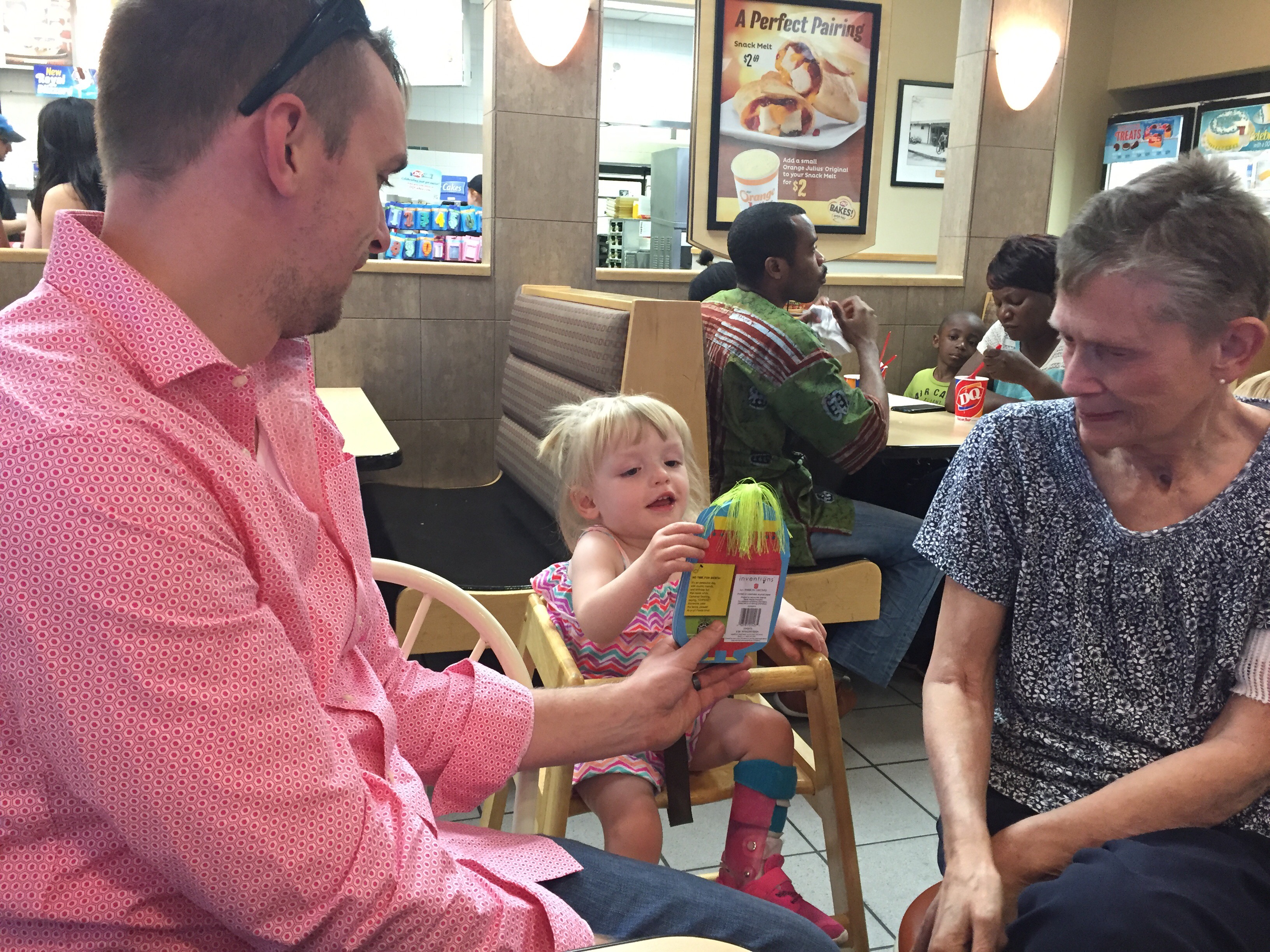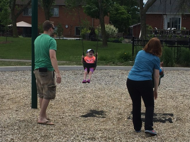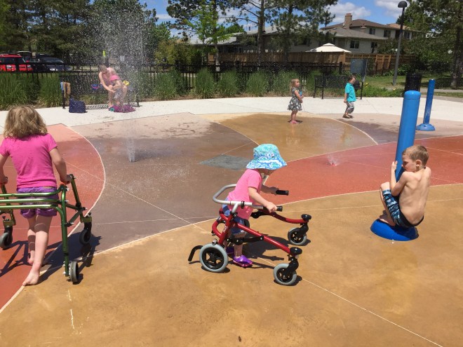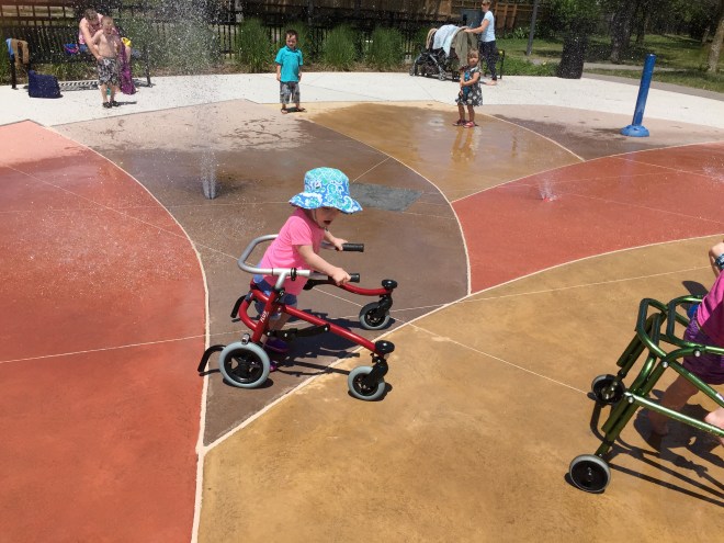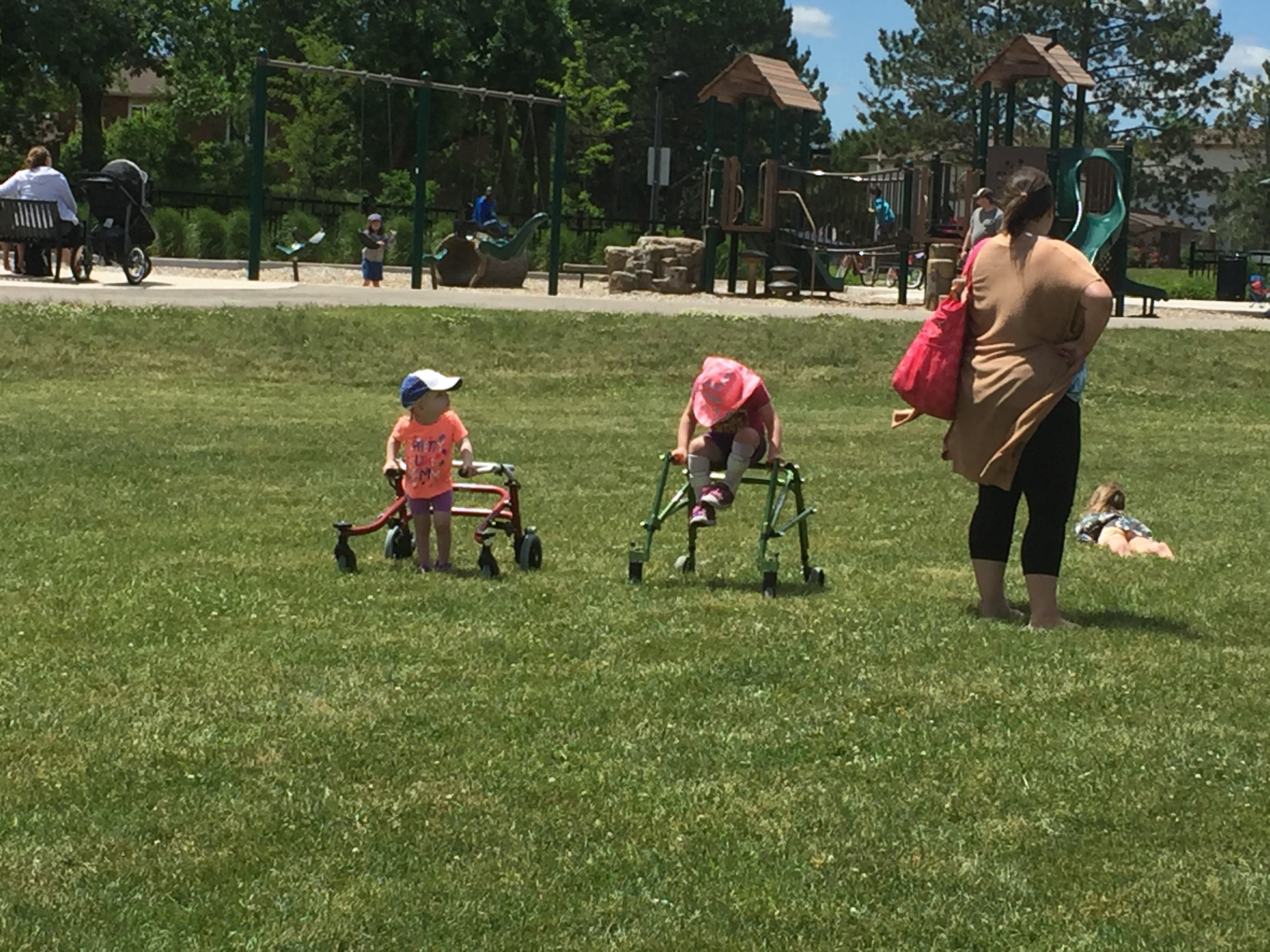 Madison loved hanging out with her friends and she also made new friends. She loved seeing so many walkers all over and had lots of fun at the Splash pad and in the park. After lunch there was a group picture with all the families at the picnic. Madison had lots of fun and Mommy and Daddy got some good questions answered. SDR surgery is a real possibility for Madison. More needs to be looked into so stay tuned.