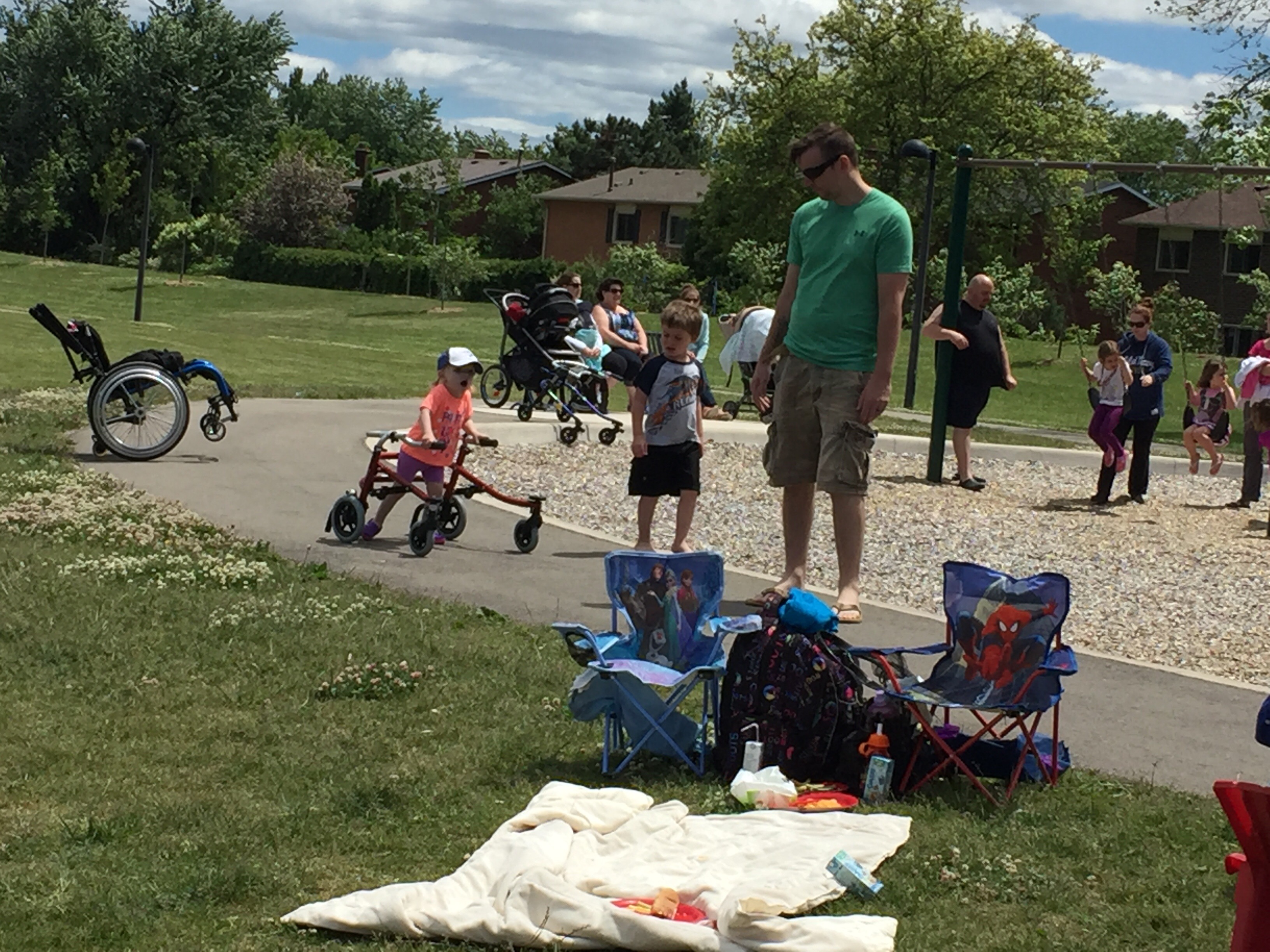 Selective Dorsal Rhizotomy (SDR) is the only surgical procedure that can provide permanent reduction of spasticity in CP. The surgery is not available in Ontario. The families at the picnic today were at different points of the SDR journey. Some already had the surgery, some are waiting for their surgery date and some (like us) are in the research stage. St. Louis is where all of the families have had their surgery.