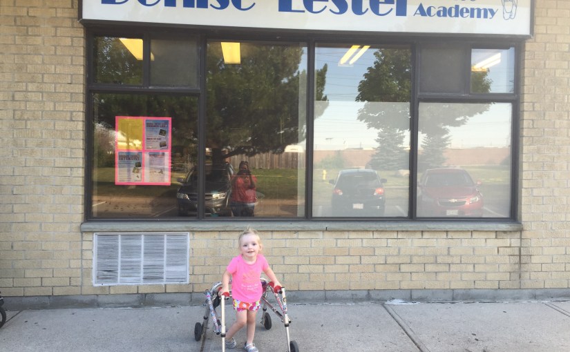 Later in the day Nana visited to help Mommy with some things around the house and to check out a new dance studio. Mommy contacted a few dance company’s in Pickering about ballet classes for Madi and then decided on The Denise Lester Dance Academy. The goal of the class is to give Madison another opportunity to be social and active with “typical kids” her age to help her prepare for JK next year. Mommy wants Madison to feel confident and free in her own skin to move the way she wants to move. Madi loves music and loves watching people dance, so hopefully ballet will be something she will like. She went on a tour of the studio, met her teacher Suzie and also met a dancer who will be her helper during her classes. She also popped into a big girls hip hop class to watch them dance – she loved it and didn’t want to leave! Mommy was happy to hear about the structure of the class and how they naturally adapt the class when needed and have a flexible approach for what will work for Madison. Pre-Ballet class starts the second week of September. Stay tuned for super cute photos of tutus, ballet slippers and PINK!