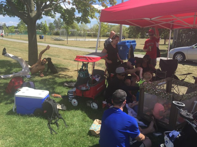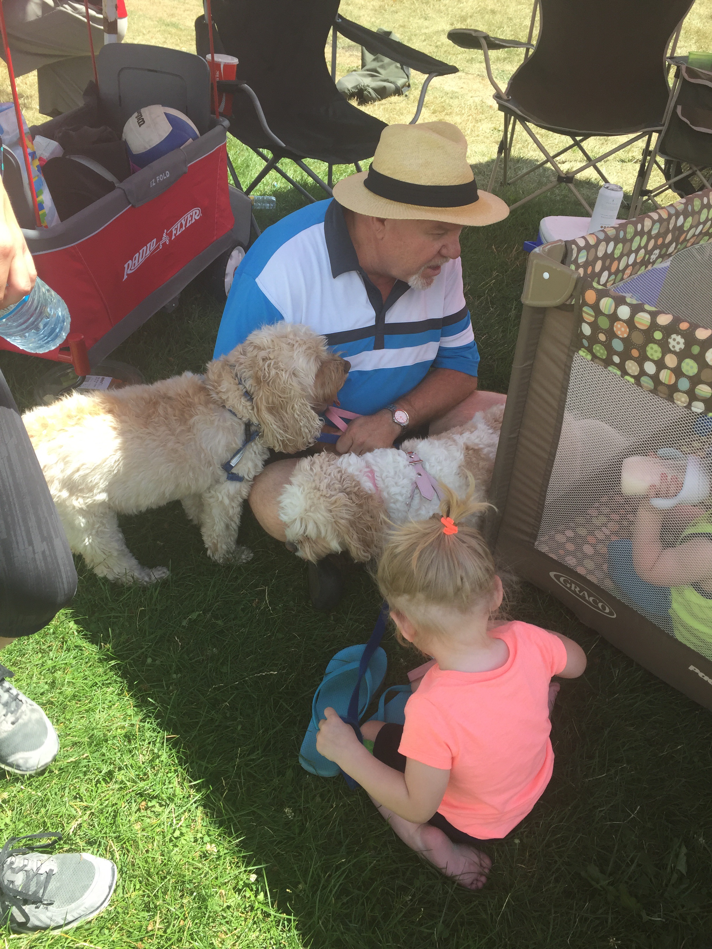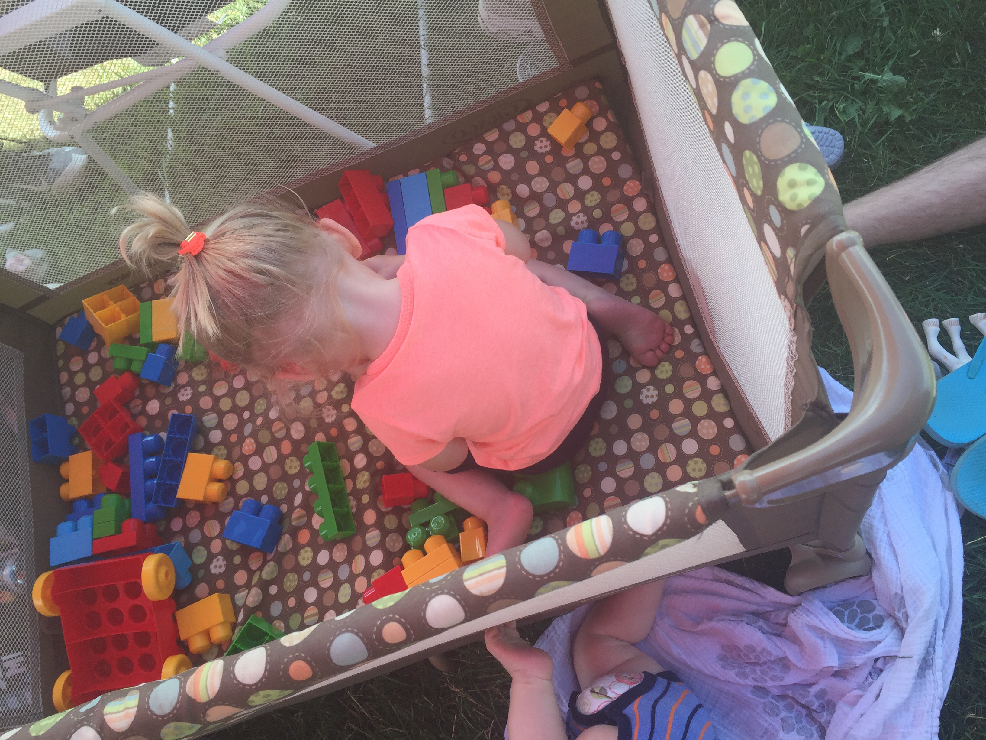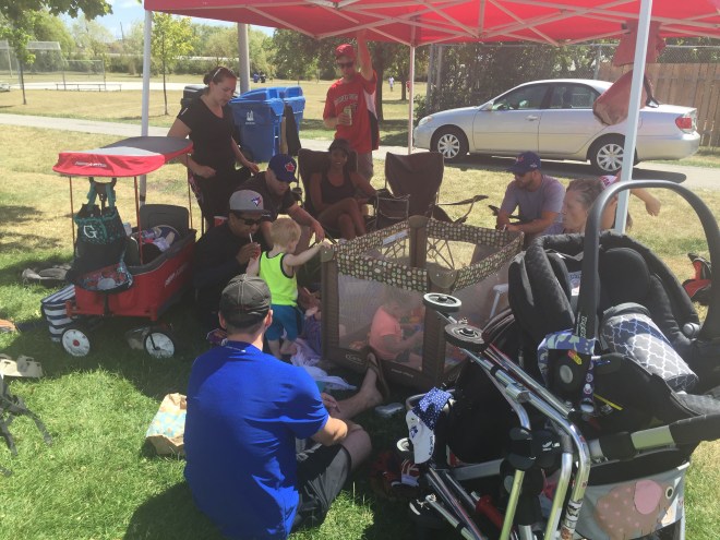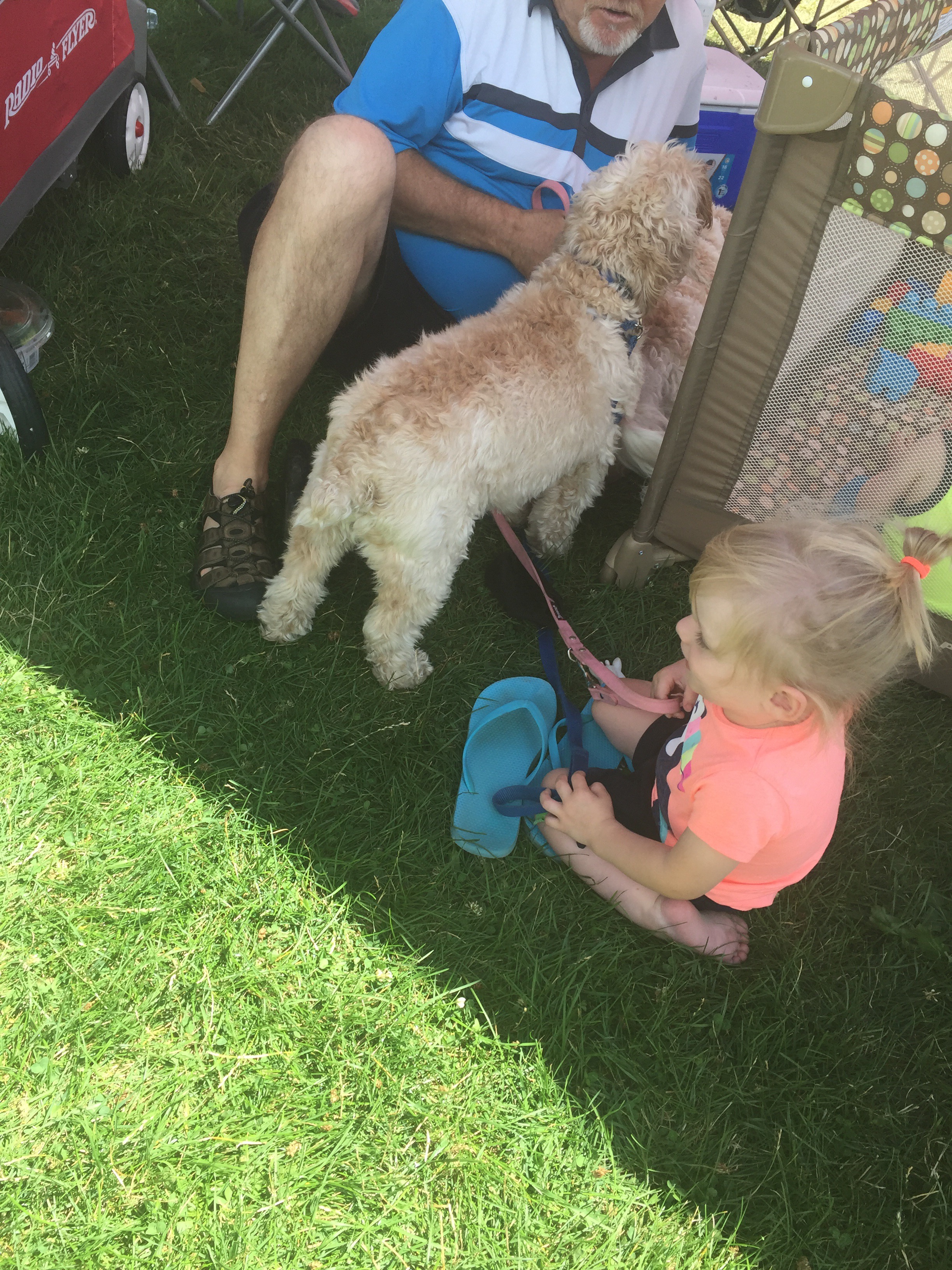Madison and Jack spent their day watching Mommy & friends/family play in a softball tournament. Madi did a great job cheering for everyone and playing with her buddy Nate. She also loved playing with Two little puppies, Tia and Cooper. After a day of watching softball, Madison headed to Aunt Nadia and Uncle Marks for a big BBQ. It was a nice, easy going summer day.