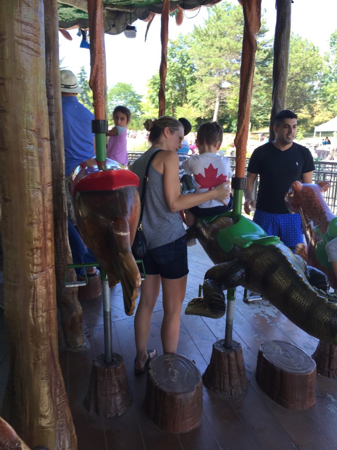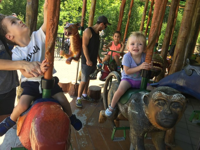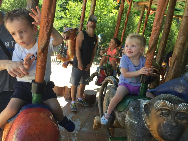 Madison is usually nervous to ride the carousel. Some of the animals frighten her so she likes to sit on the benches on the ride. But today Ben gave her the courage to try one of the animals that move up and down. She held on tight and was a bit scared but after the ride started to move she loved it! She cried when it stopped because she didn’t want it to end. Bens Mommy had extra tickets so they went a second time together. Madison rode the monkey both times. Mommy was so proud of her for trying.