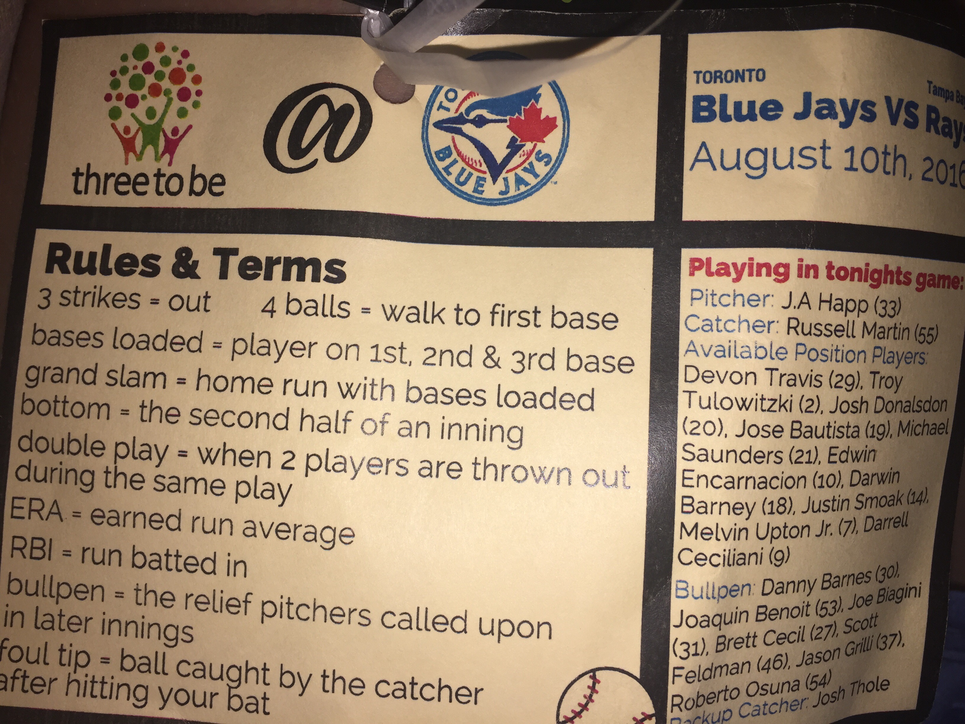 THREE TO BE aims to create infinite possibilities for children with neurological disorders and their families through education, support and empowerment. Madison was thrilled to have the opportunity to attend the game hosted in the accessible suite of Northbridge Insurance. Thank you to Amanda from Three to Be and Dan from Northbridge Insurance for giving Madison and her Papa the opportunity to see her favourite Jays and have such a wonderful evening together. The suite was an amazing experience for Madison to use her walker and not have to deal with crowded hot seats.