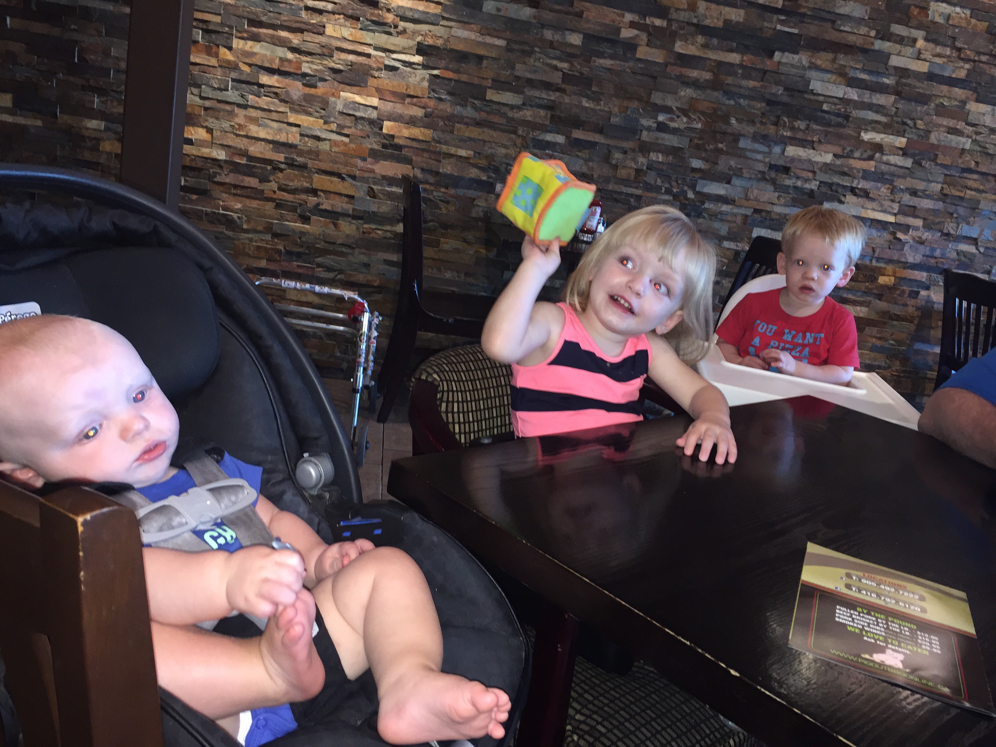 Madison loved having a play with Nate this afternoon and the three musketeers had a great time at Madi’s favourite piggy restaurant with Nana and Papa.