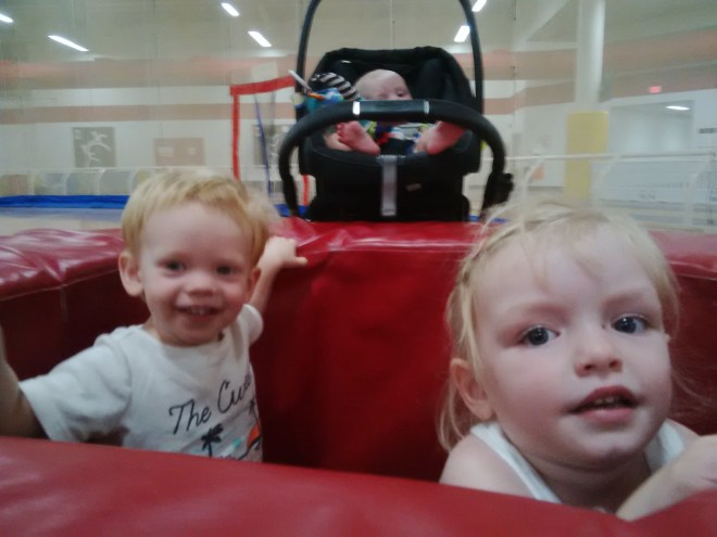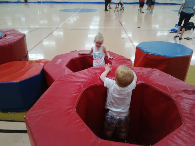 Madi, Nate and Jack spent their day with Nana and Papa! They went to Variety Village to play in the gym. They participated in the cousin olympics! They did an obstacle course, raced each other around, played catch with different balls, jumped from ring to ring and practiced their floor routine.