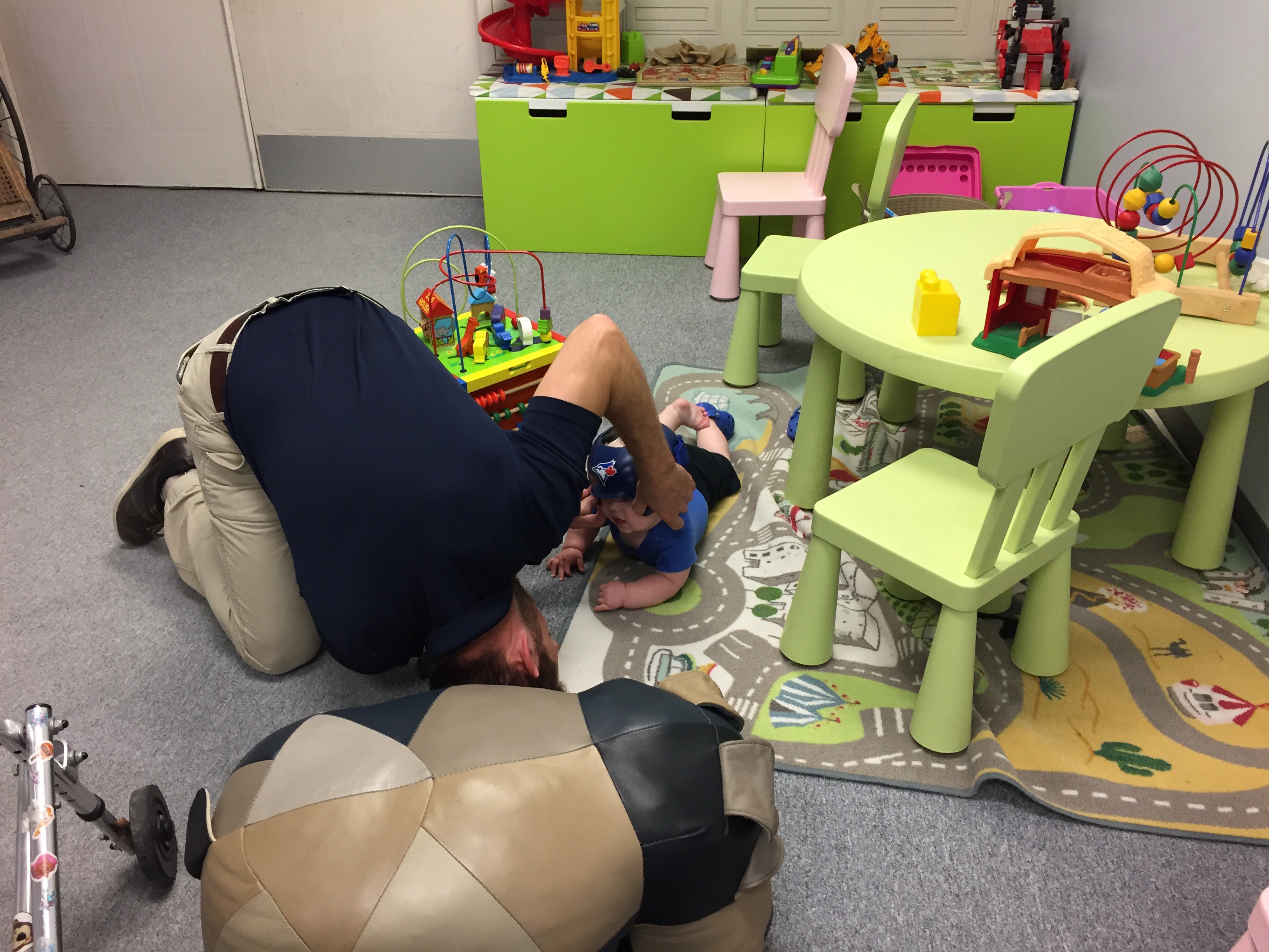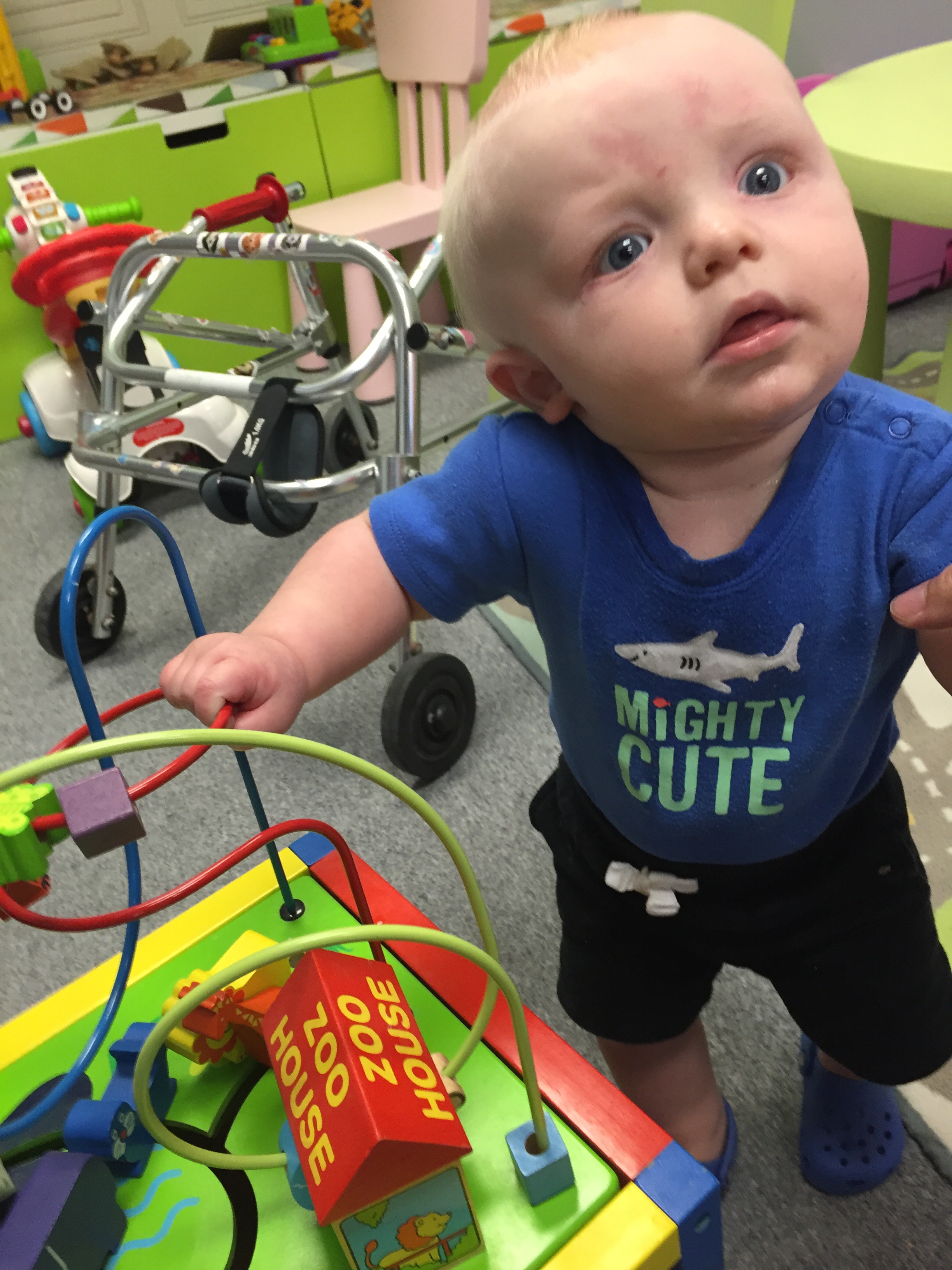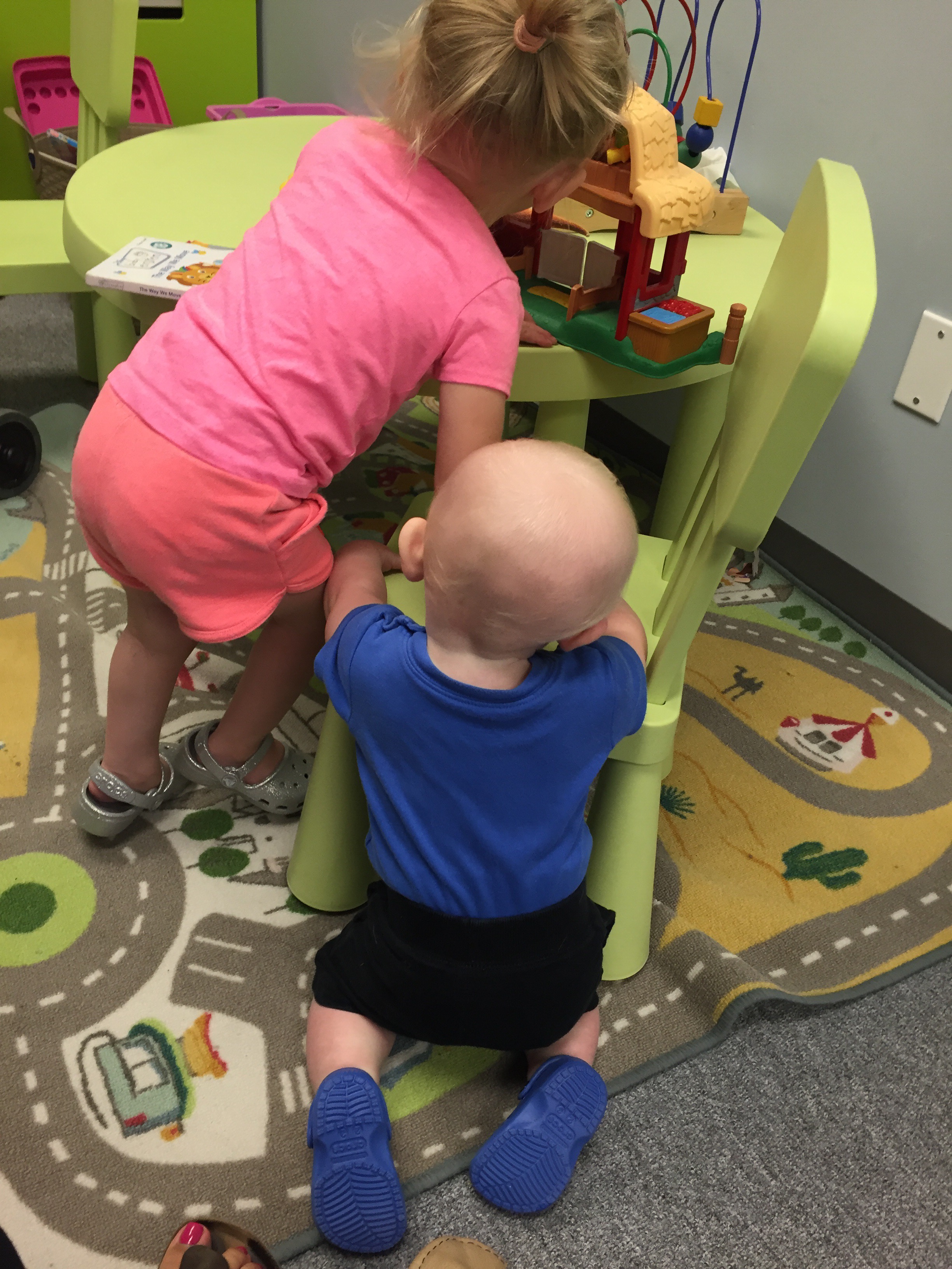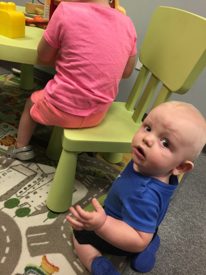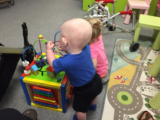 Madi and Jack had a visit with their orthotist today. What was meant to be a 45 minute appointment for two ended up being 1 hour and 40 minutes of trying to play and distract and entertain. It also meant Madi missing her ride with Joe today. The good news is that Jack got his helmet adjusted to fit over his eyes better and Madison’s straps on her AFO’s got replaced and they put new padding in them to be ready for back to school in a few weeks.