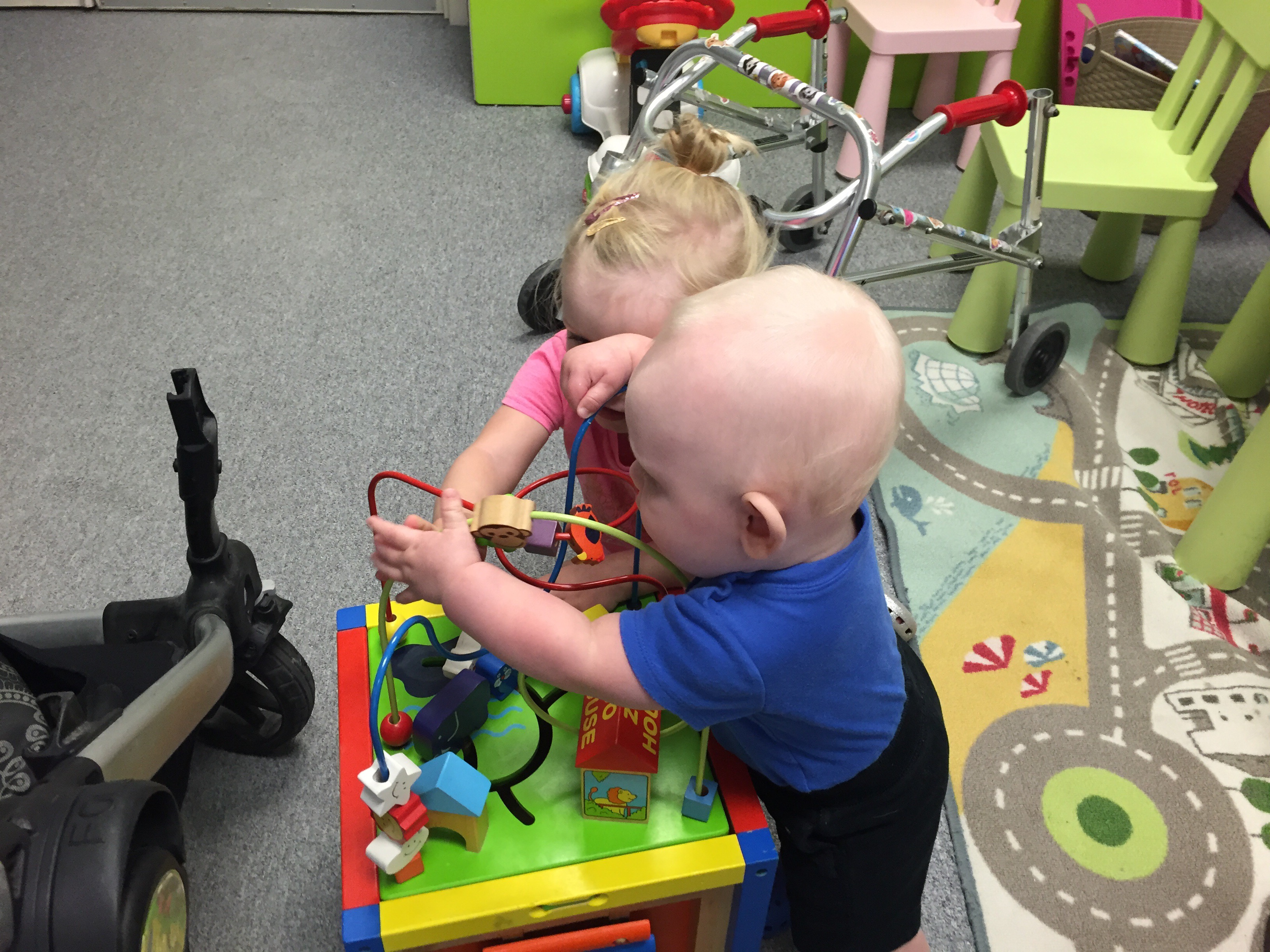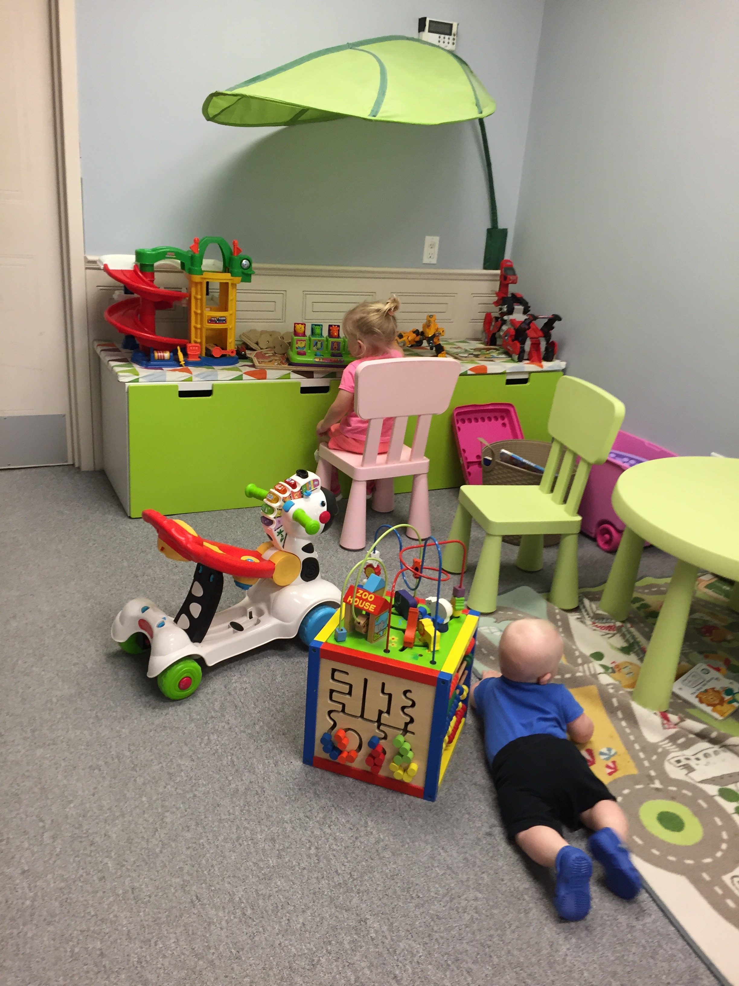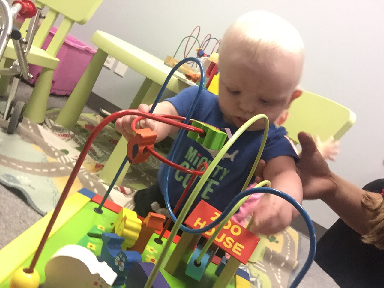 Madi and Jack had a visit with their orthotist today. What was meant to be a 45 minute appointment for two ended up being 1 hour and 40 minutes of trying to play and distract and entertain. It also meant Madi missing her ride with Joe today. The good news is that Jack got his helmet adjusted to fit over his eyes better and Madison’s straps on her AFO’s got replaced and they put new padding in them to be ready for back to school in a few weeks.