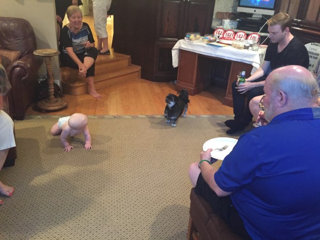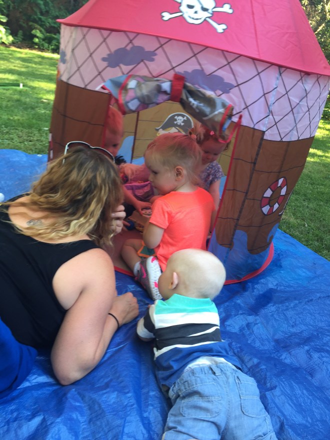 Madi & Jack enjoyed a family BBQ to visit with cousin Meredith who is visiting and to celebrate cousin Adams graduation. They played with Nate and Molly in Aunt Janine’s backyard in a tent and played with dolls and puzzles and watched the puppies run around the yard. Madison also showed off her awesome walking she has been working so hard on. She was so proud! Visiting with family and eating good food was a nice way to end a busy week.