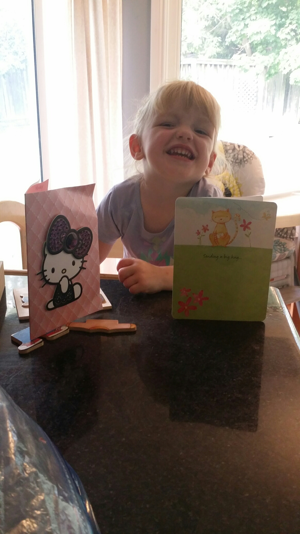 Speaking of mommy on her trip. Katherine has made time to miraculously send daily cards for madi to read, which she is very appreciative of.