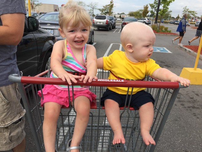 Madison started her day with a family trip to Costco! She loved sitting next to Jack for the first time in the shopping cart.