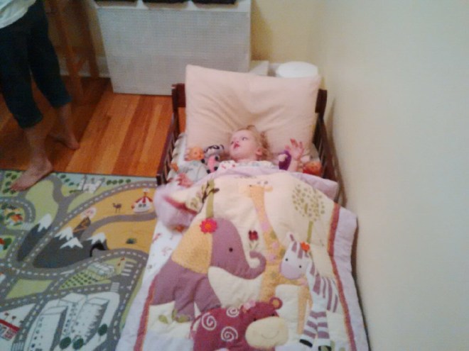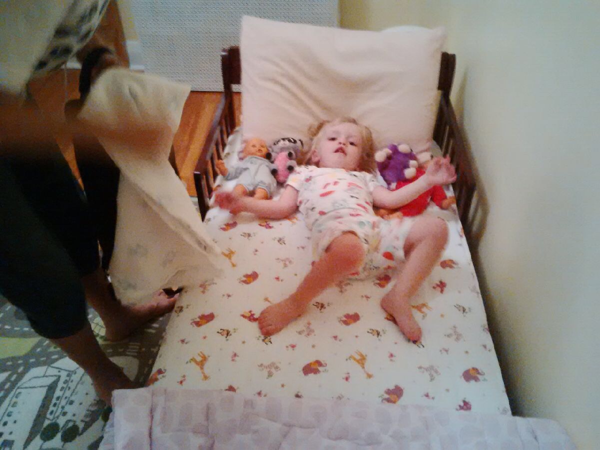 Madison was super excited for Nana and Papa to pick her up after dinner. They took Madi to get some ice cream and then back to their house for a sleepover! They played with the play kitchen and food and then had a bath. Before bed, Nana read Madison her favourite book from when she was a child – Madeline! Madi loved it! She also has a new bed at Nana and Papas that she is trying for the first time tonight. It’s low to the floor so she can get in and out herself. Tomorrow morning is the build of Madison’s surprise playground, so having a sleepover was the perfect way to get her out of the house for the surprise.