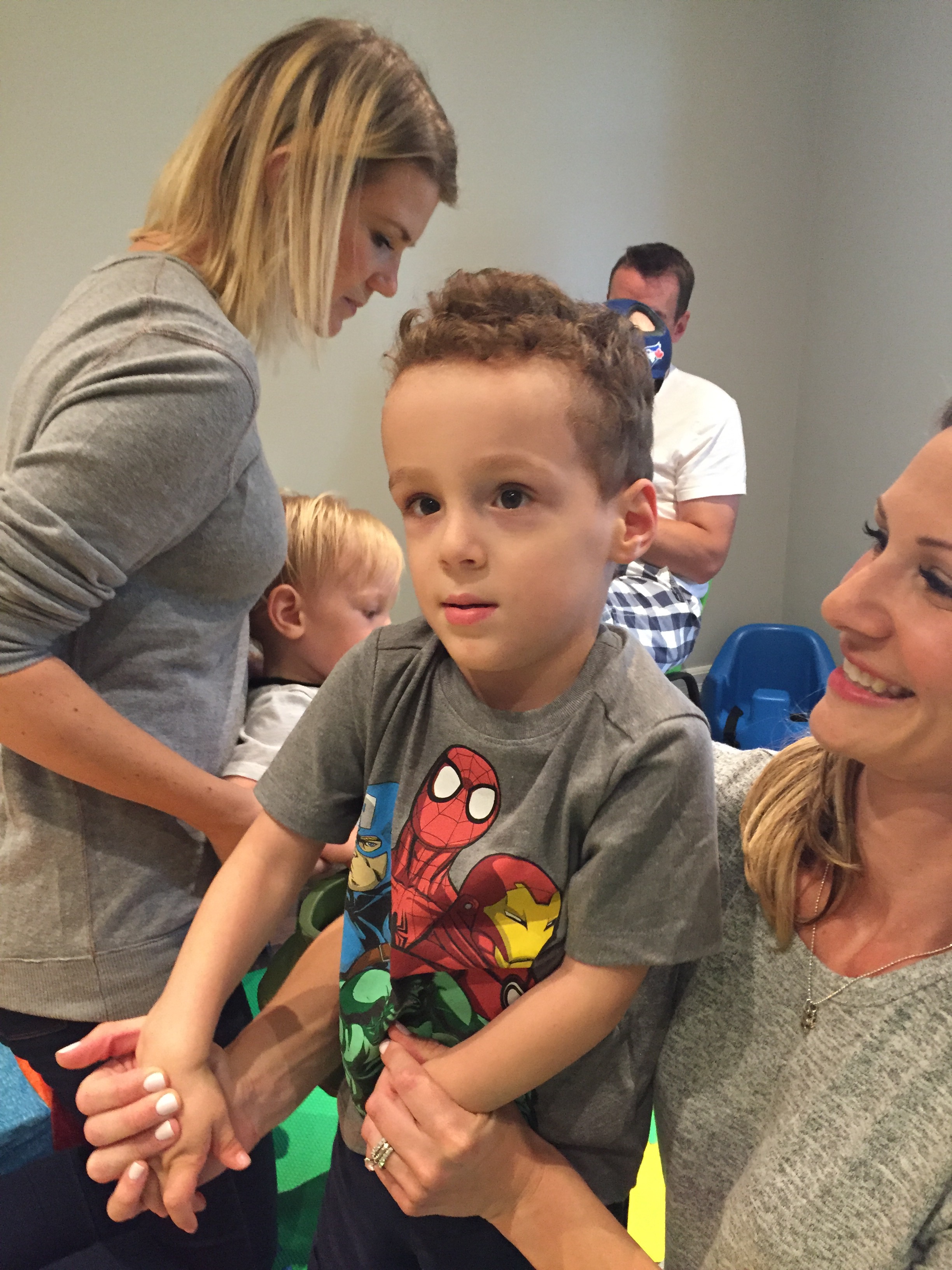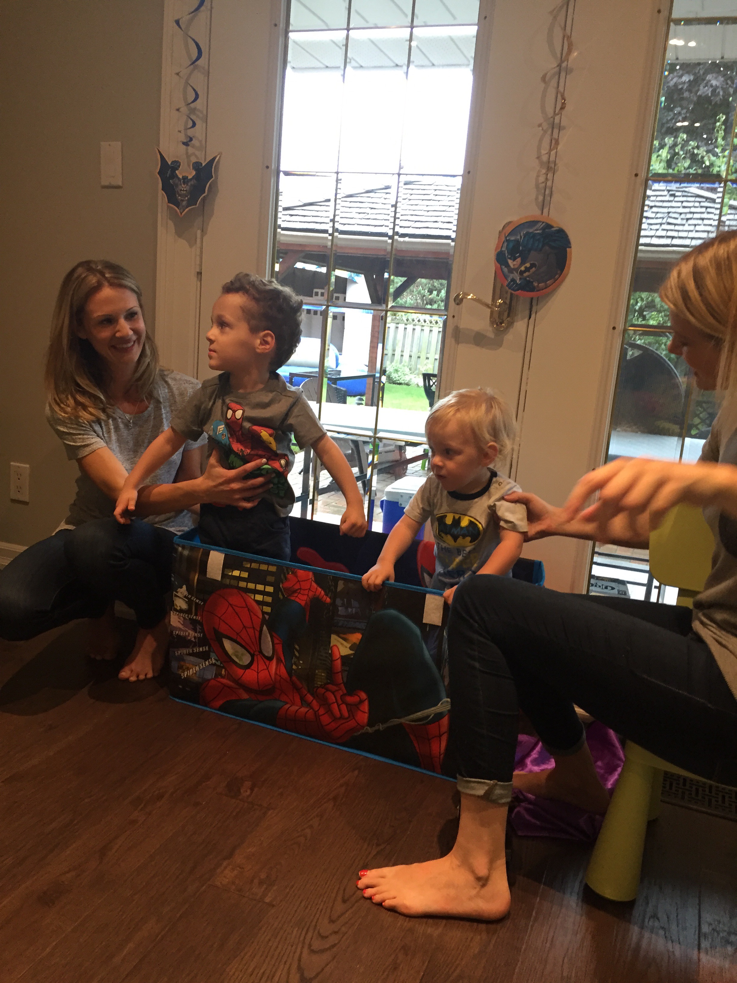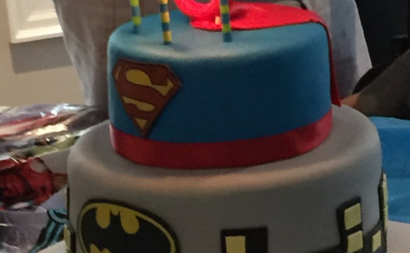 MThey ate lots of yummy food, played with all Ben’s toys, sang happy birthday with a super cool super hero cake and jumped like crazy in the super hero bouncy castle. Mommy was so proud of Madi for trying to jump on her feet. She has been working on the feeling of jumping and learning how to bend her knees and then reach high to jump at conductive Ed for over a year. She is always scared to let go when jumping and she tried it today! Check out the video below!