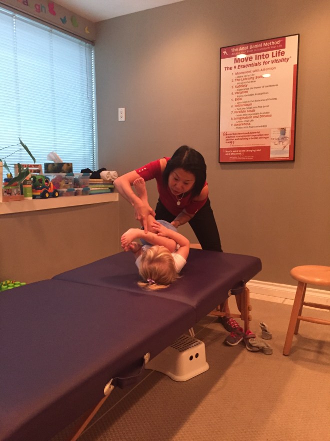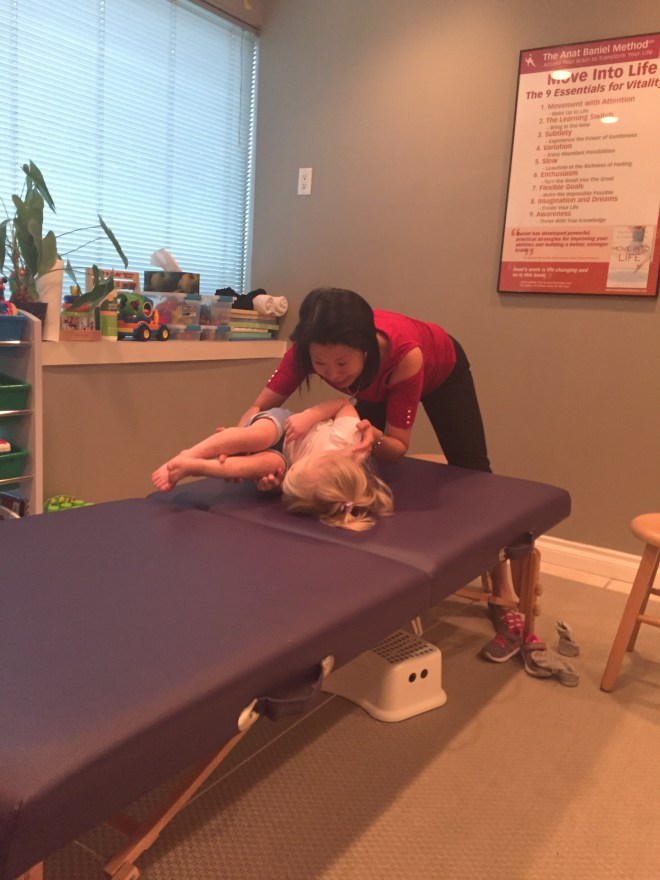 After lunch it was back to ABM with Judy for her last day. She worked hard and enjoyed herself. She demonstrated some excellent sitting positions and did well walking with no Walker, holding Judy’s hands.